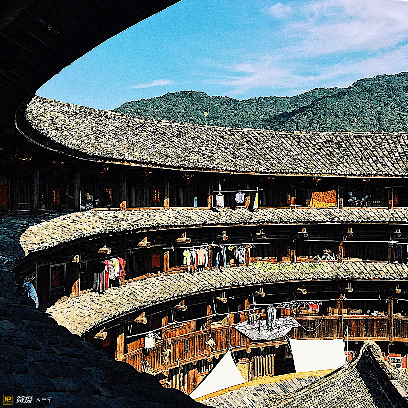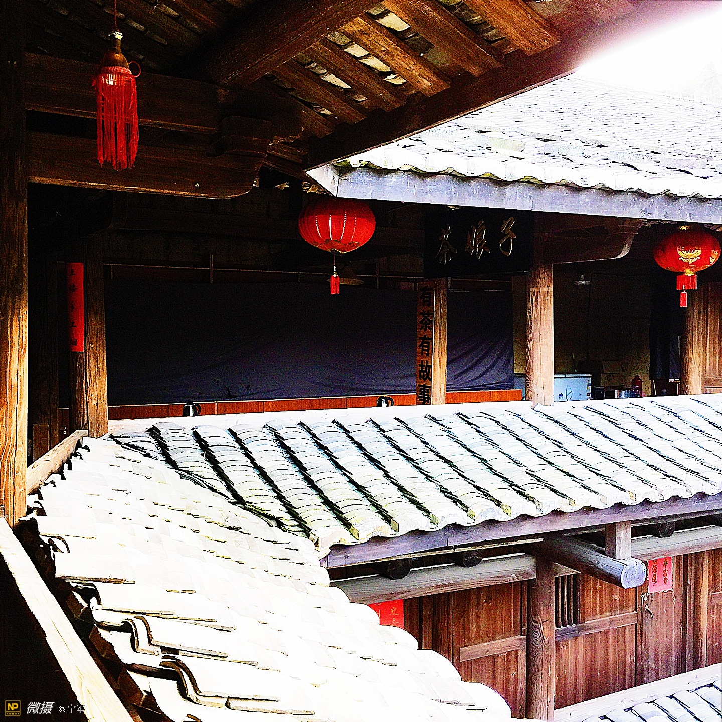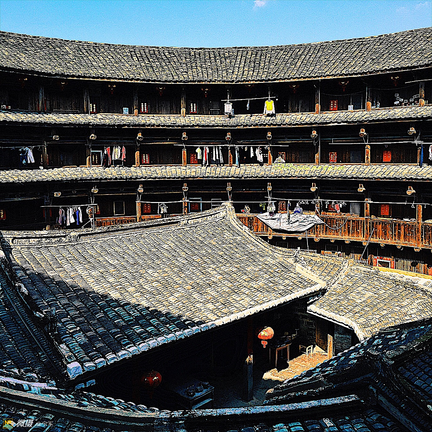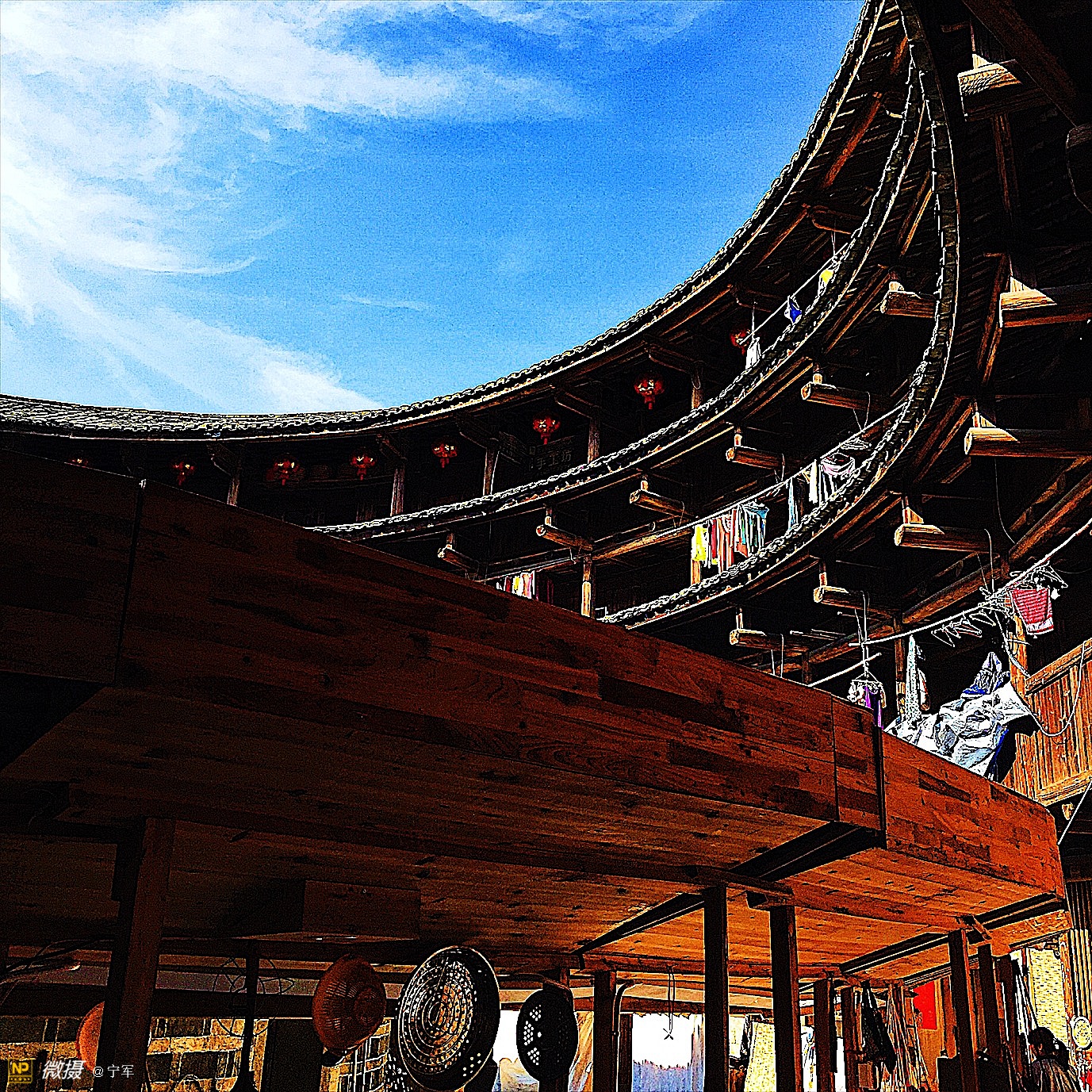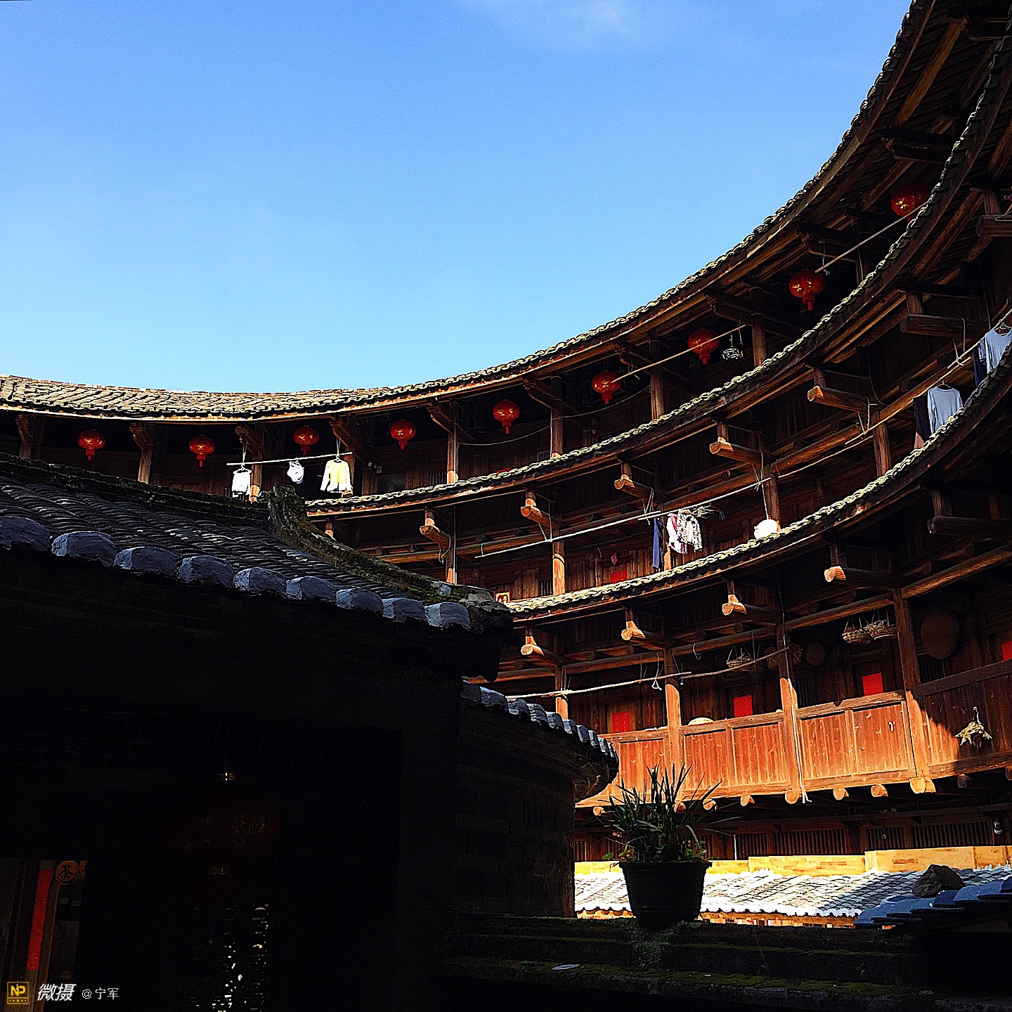 阳光折射在土楼的每个角落。