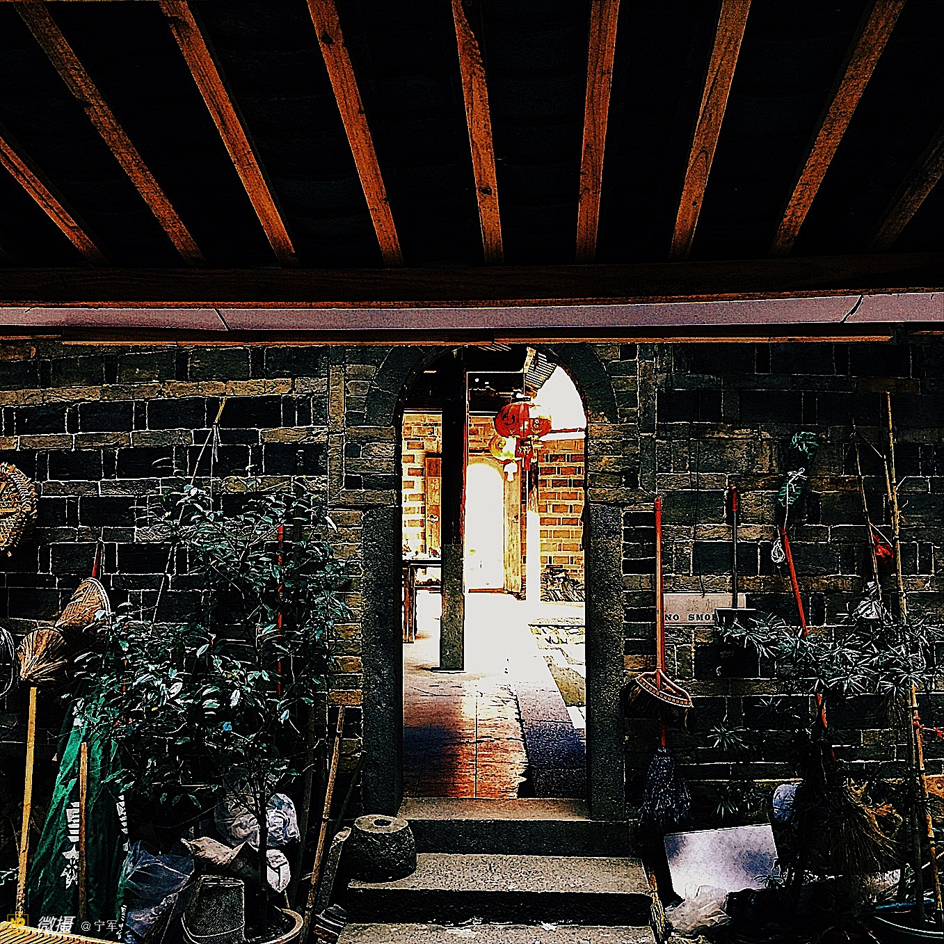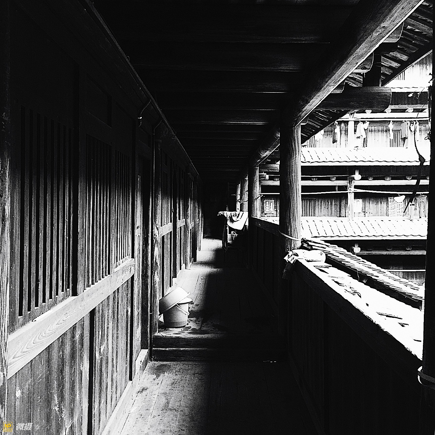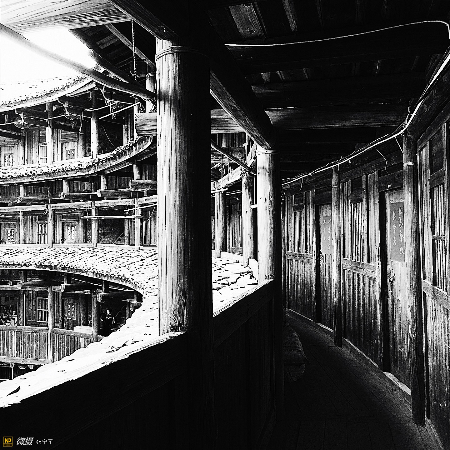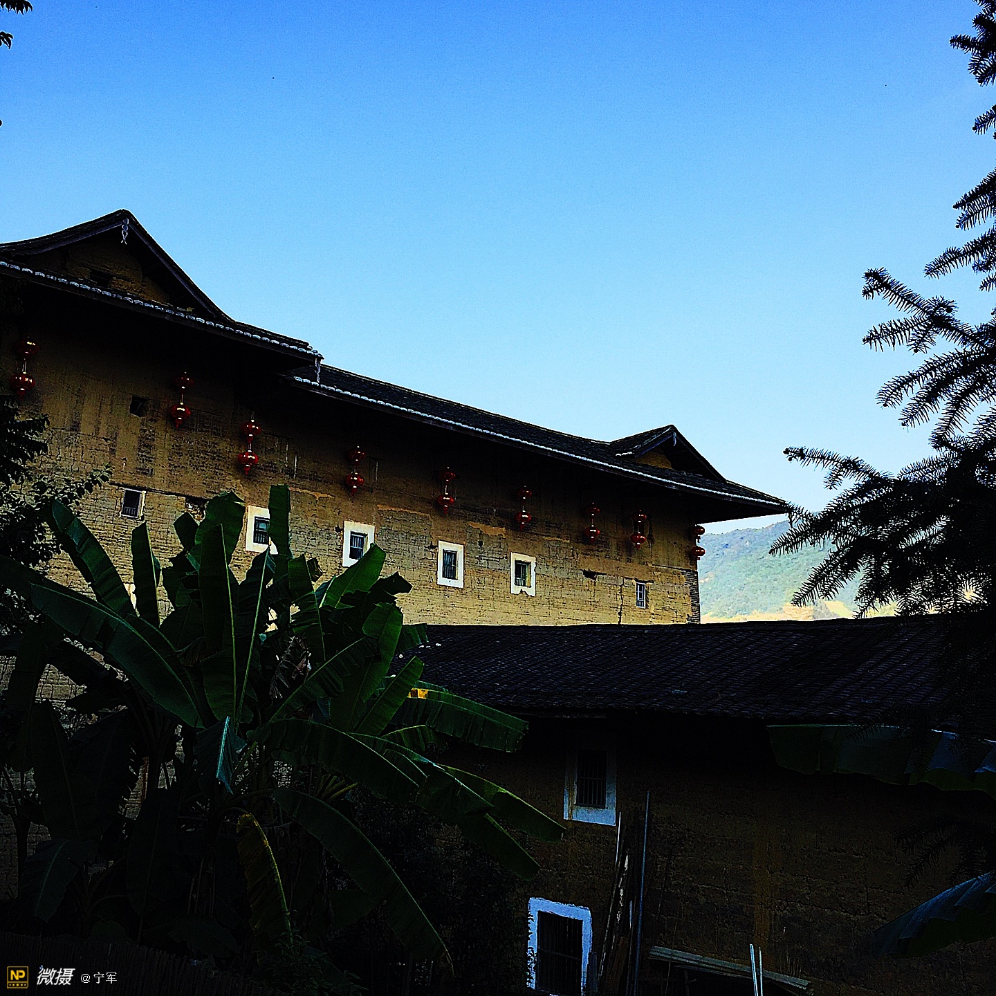 阳光折射在土楼的每个角落。