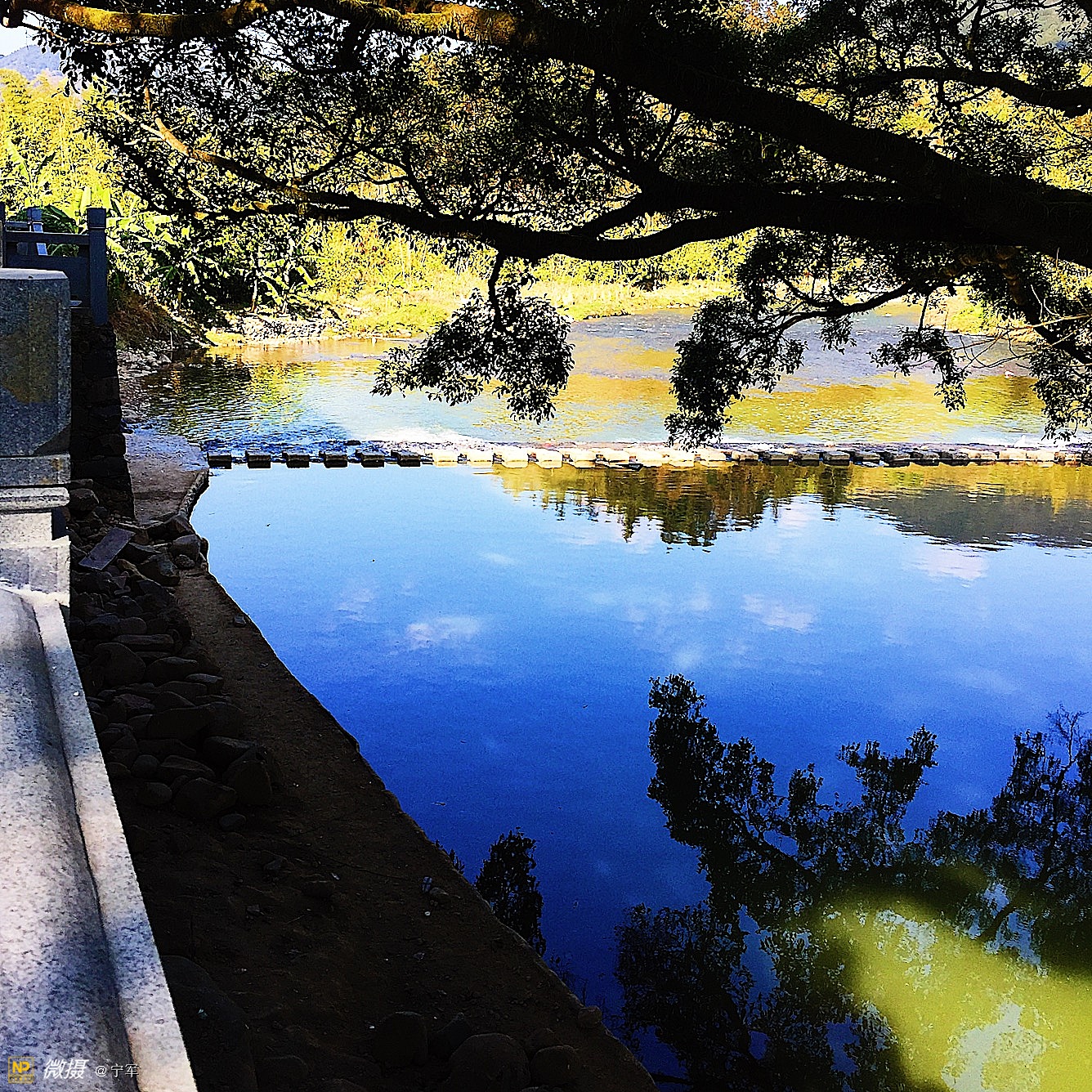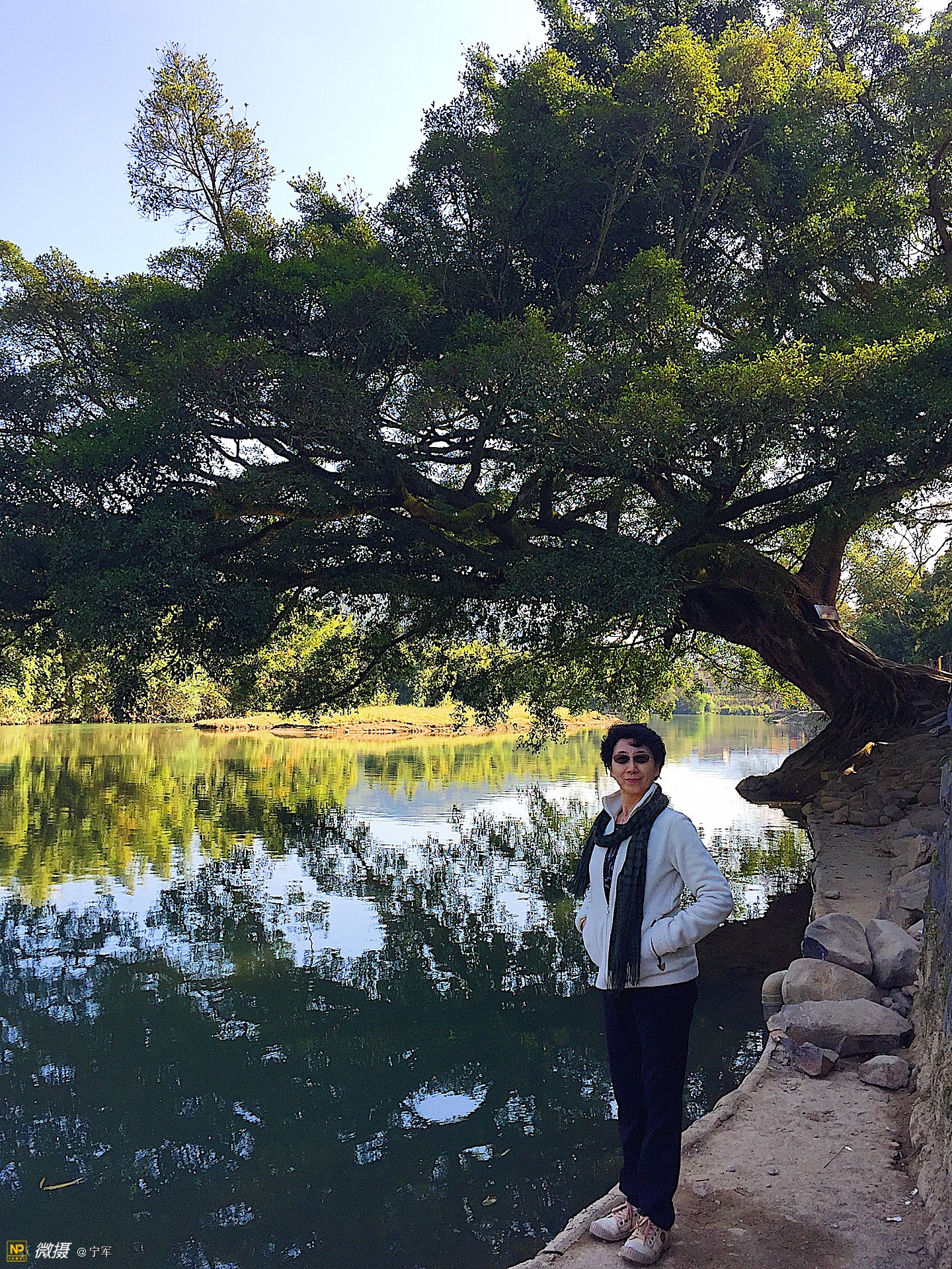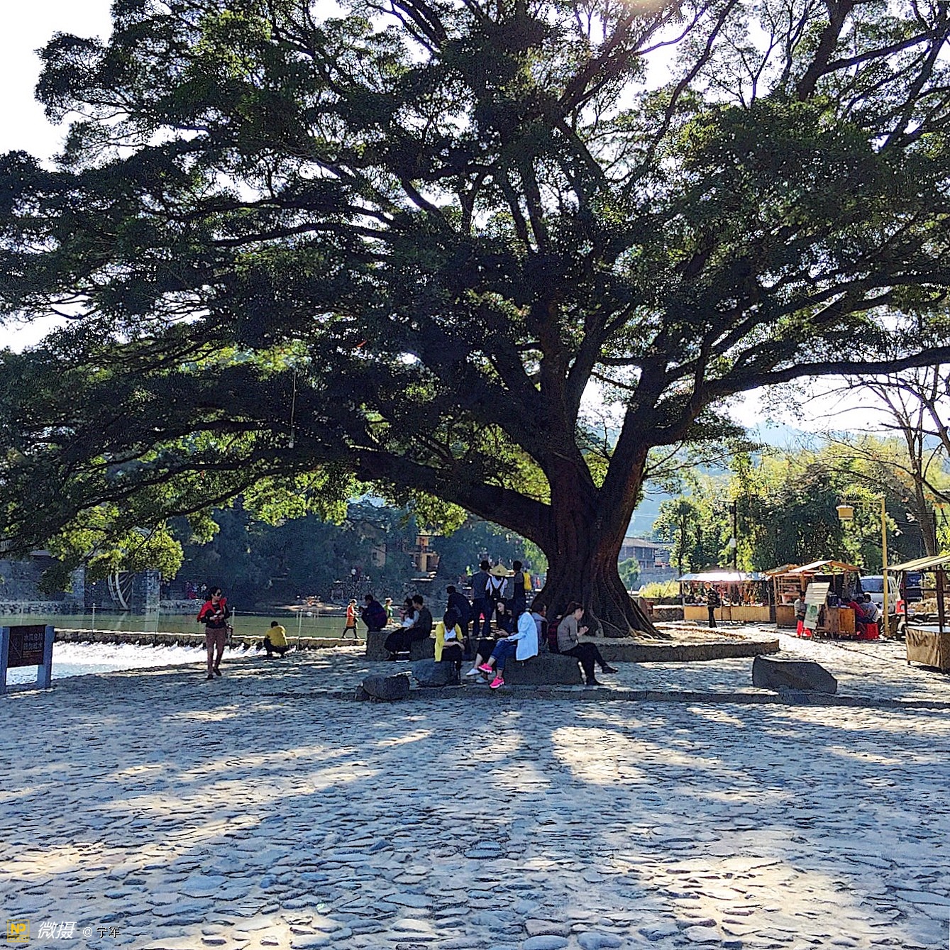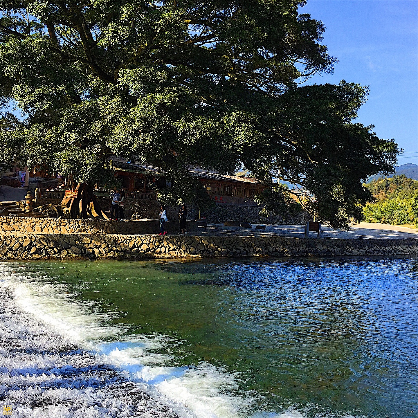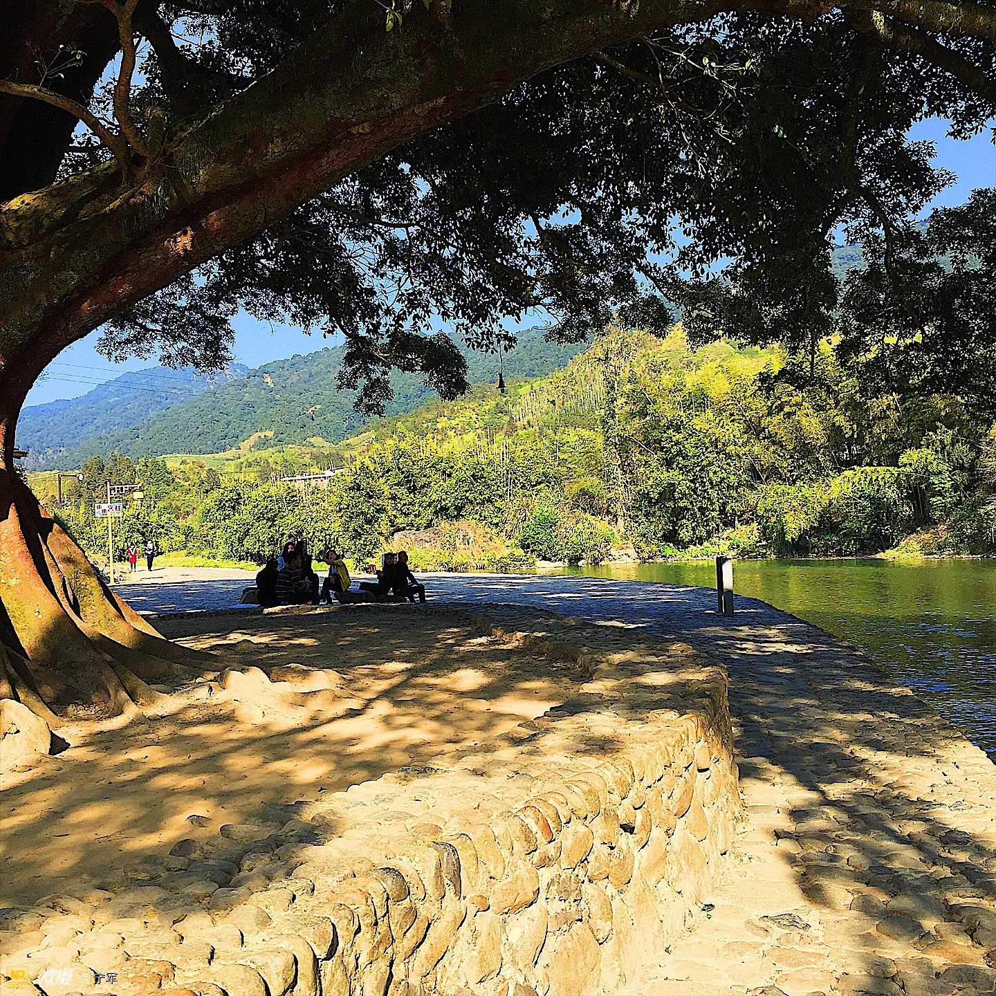 茶楼旁有一株与对岸同样枝叶繁茂的大榕树,两株树一雌一雄,隔溪相望。