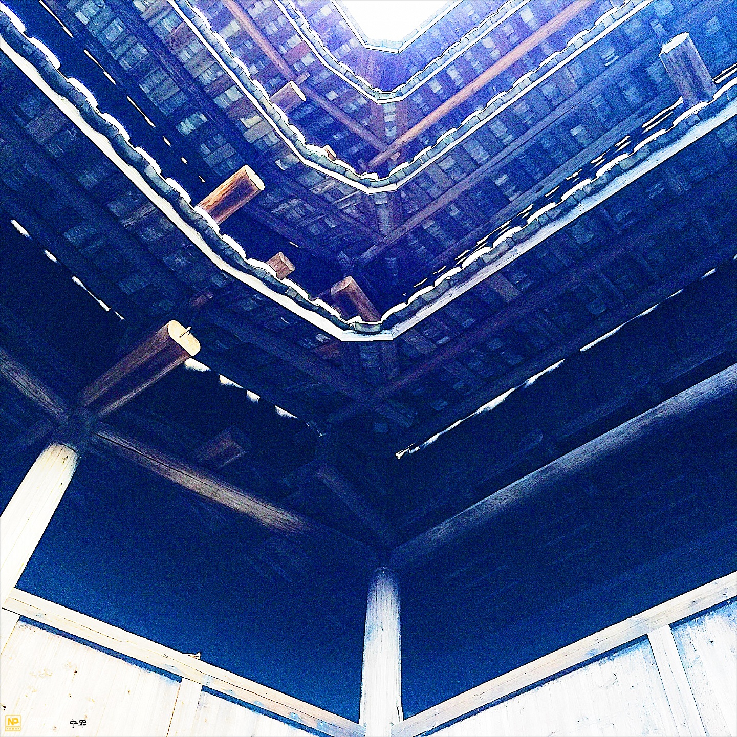 土楼里的屋梁都很漂亮。