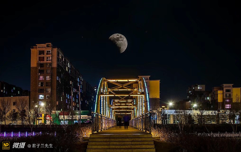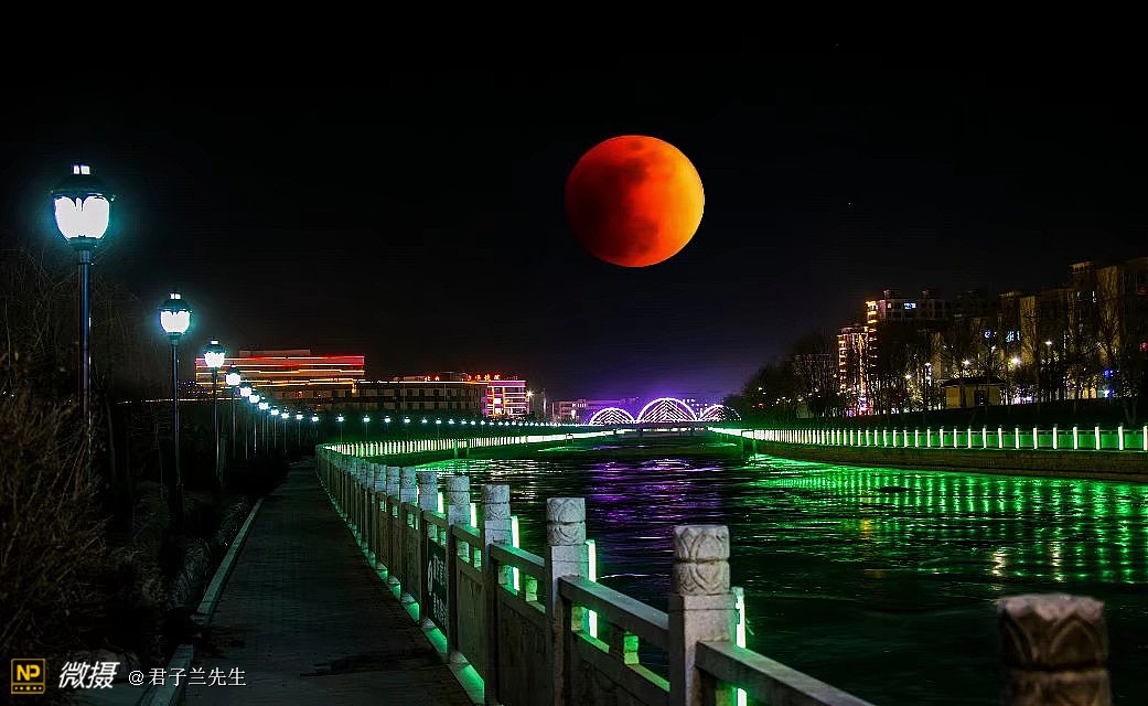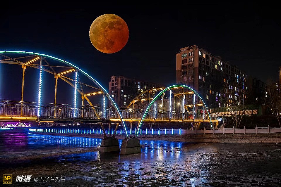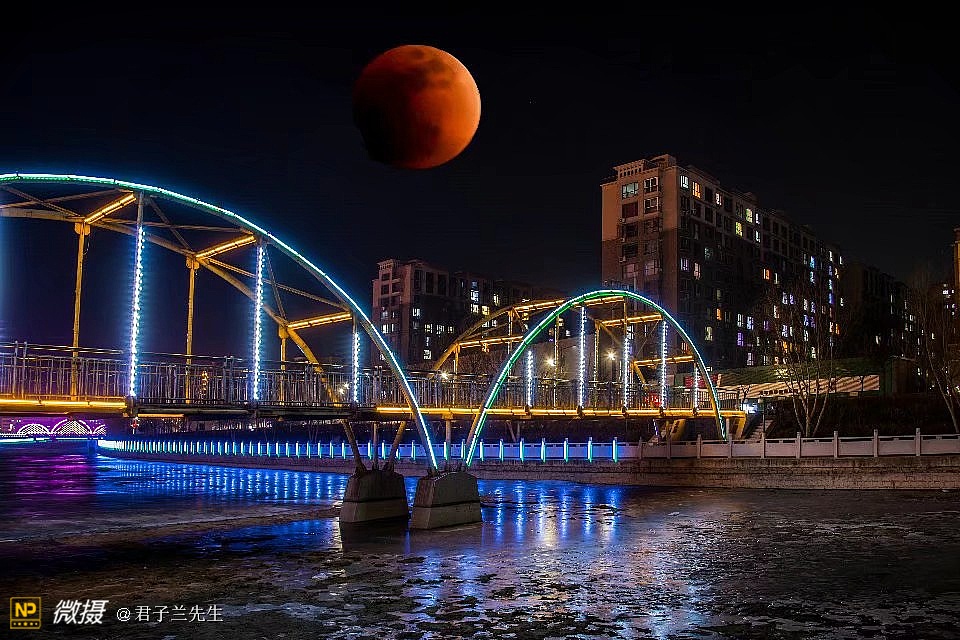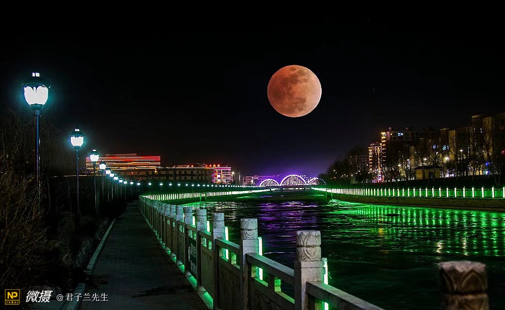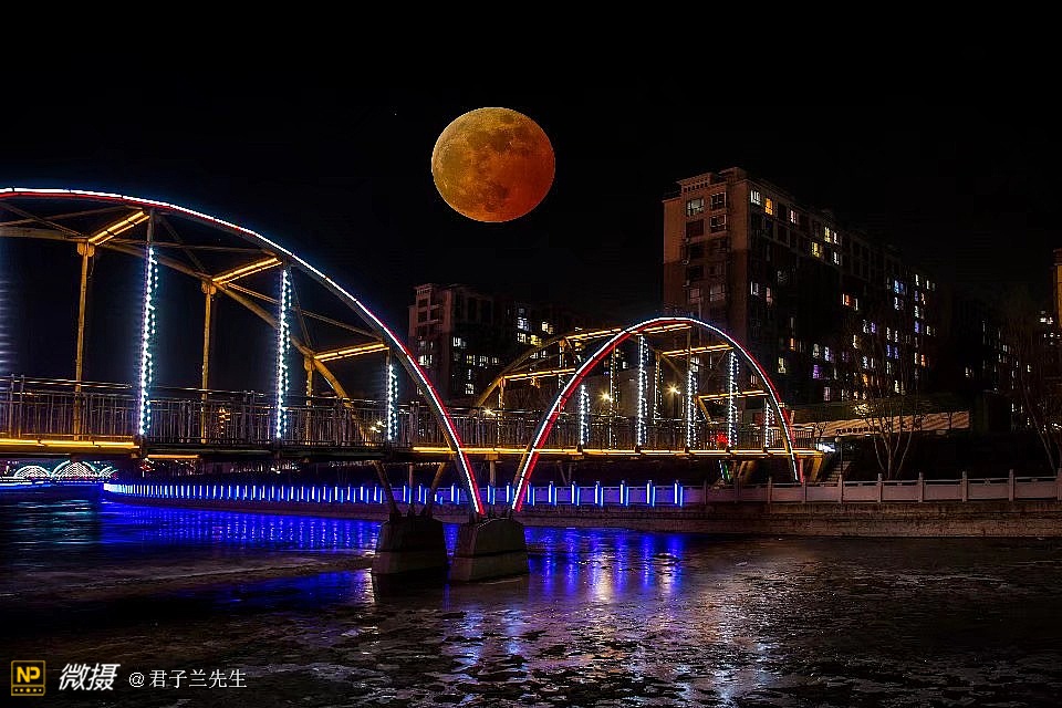 1月31日的夜晚,真可谓世界瞩目,万众仰指。长枪短炮、相机手机,瞄准一个方向,152年得一见面的红月亮。月圆月缺,时隐时现。朋友圈,微信群,各种各样的红月亮滚滚而来,吸引着人们的眼球,上演着一场前所未有的视觉大餐。就是这颗多彩的月亮,把北镇装点的绚丽多娇,今晚的月亮属于你——大美北镇!