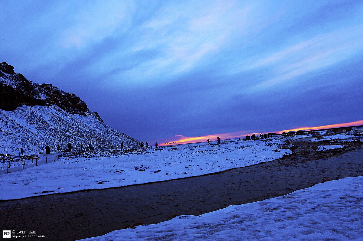 今天的行程似乎比昨天安排的紧凑,我们一路在寒风中前行,车窗外每一个景致都成为永恒的记忆,在冰雪的地球之巅,我们带着图片银行和微摄的拍摄重托,按动着一下又一下的相机快门,虽然零下20多度的气温已经麻木了手指,但我们火热的心里明白此行的目的:把中国的温暖带给冰岛,把冰岛的美景带给世界。