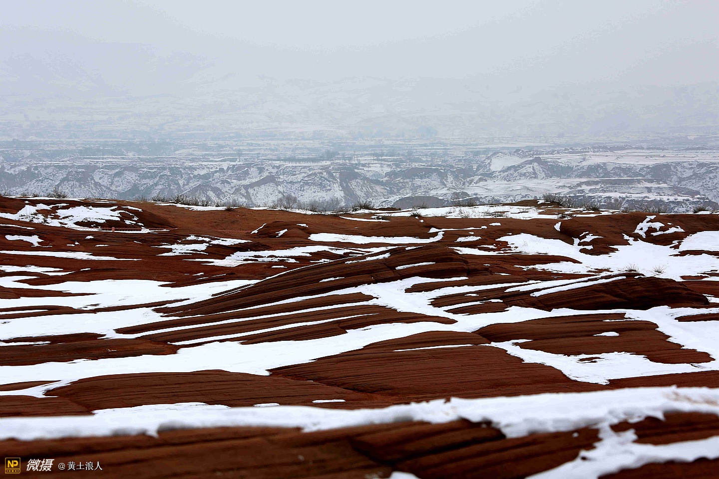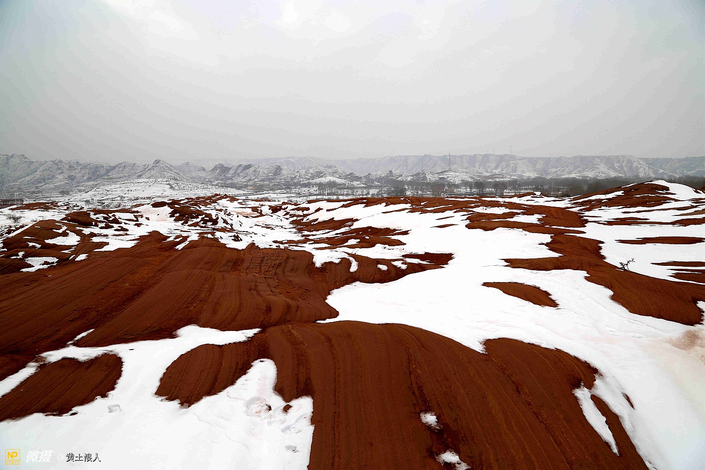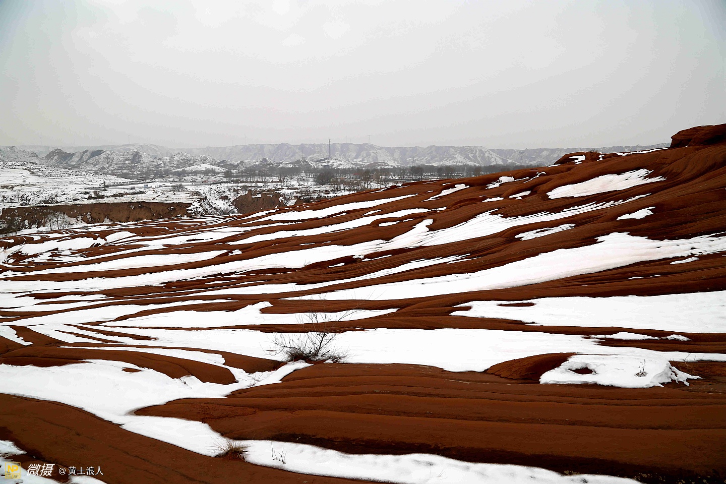 靖边龙州雪后丹霞