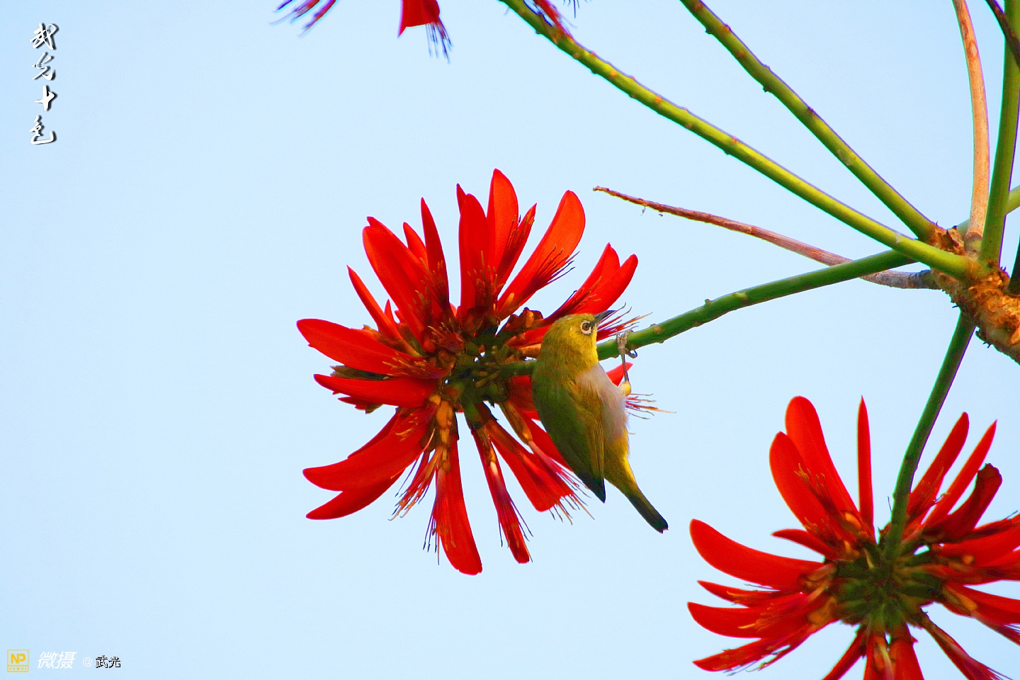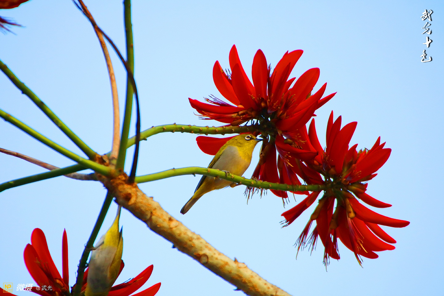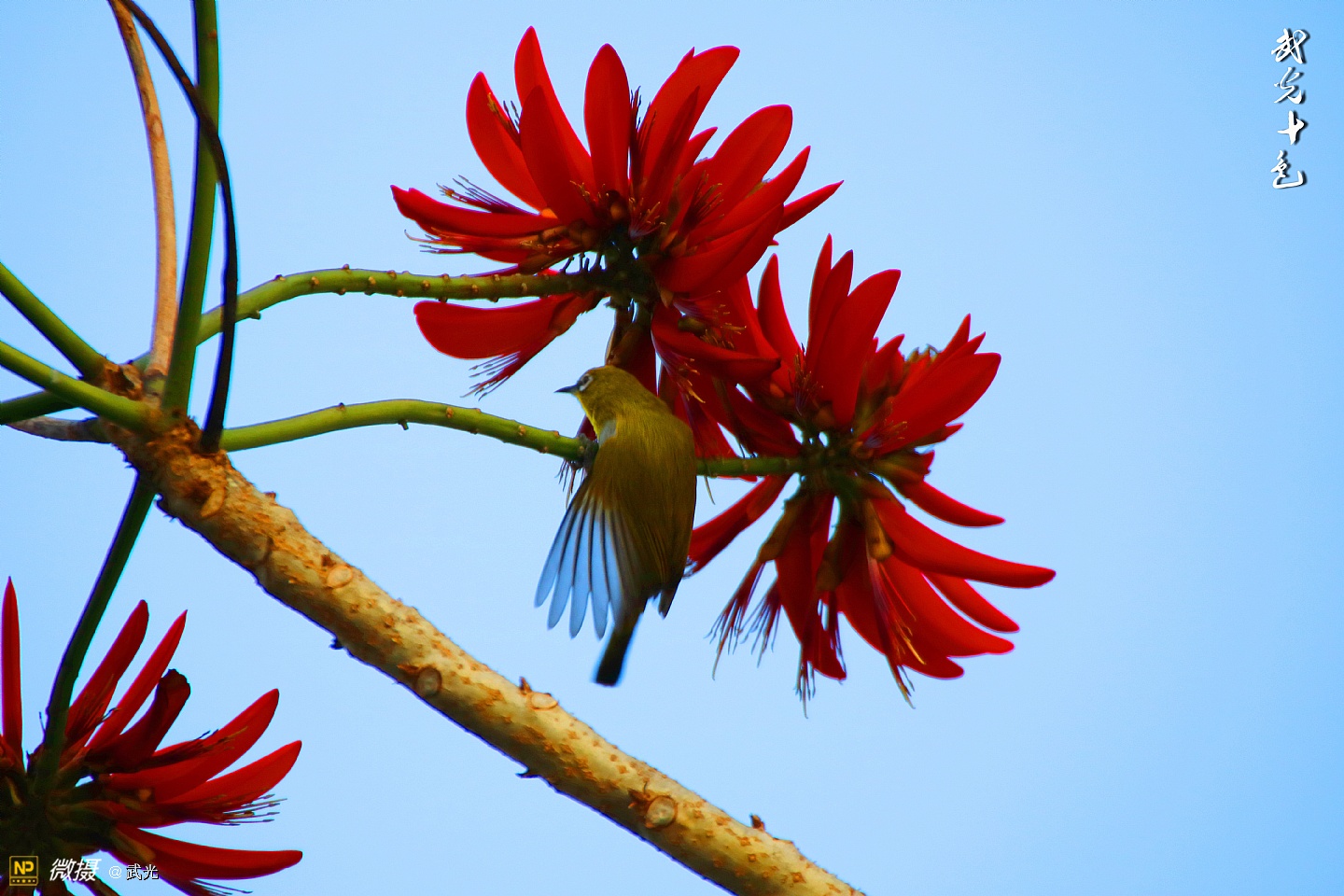 红花与翠鸟