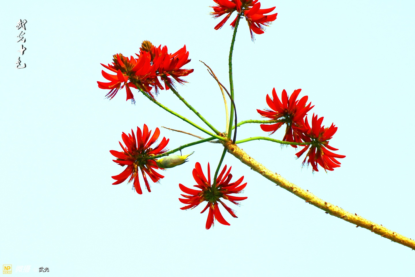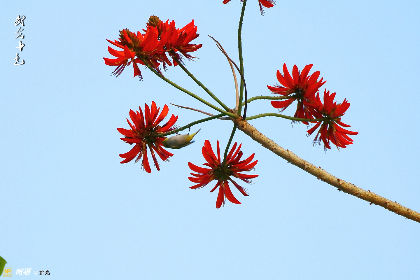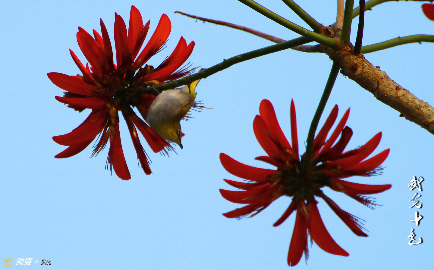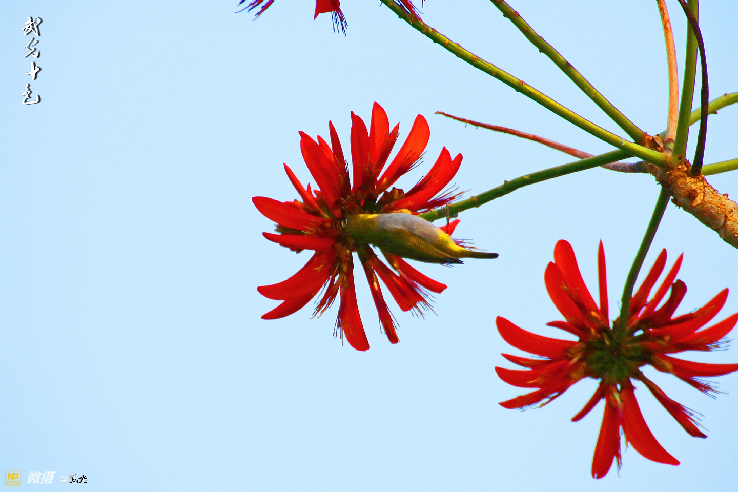 红花与翠鸟