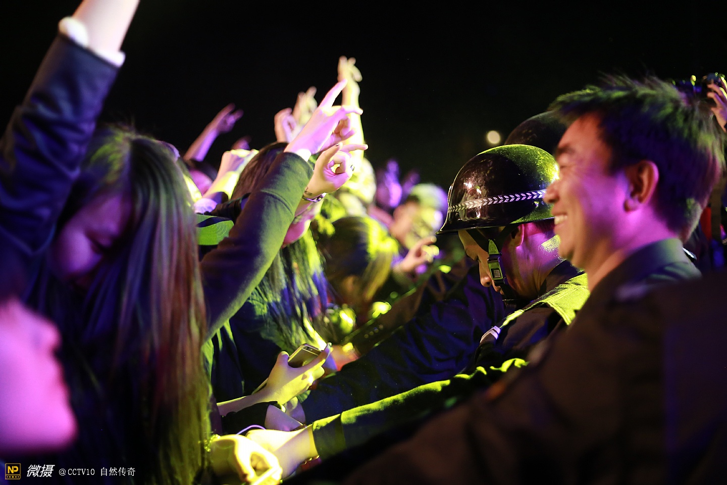 护栏被两边的人推来搡去,快解体了。面带微笑的保安似乎在说,醒醒吧,妹子。