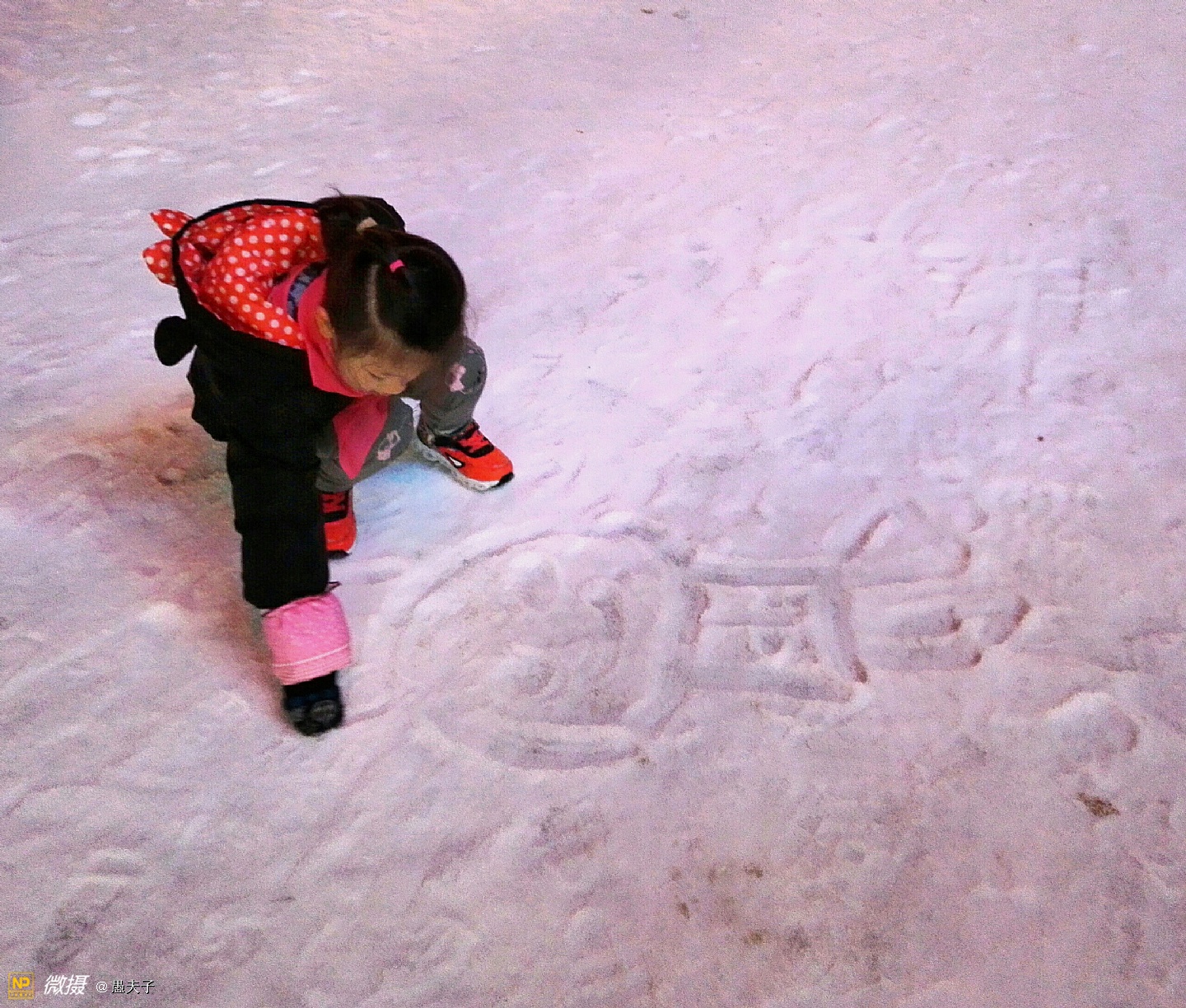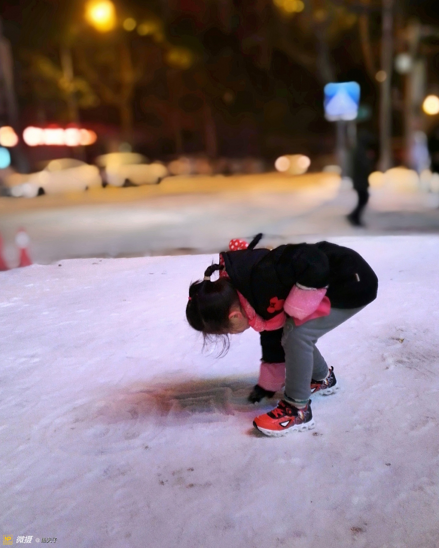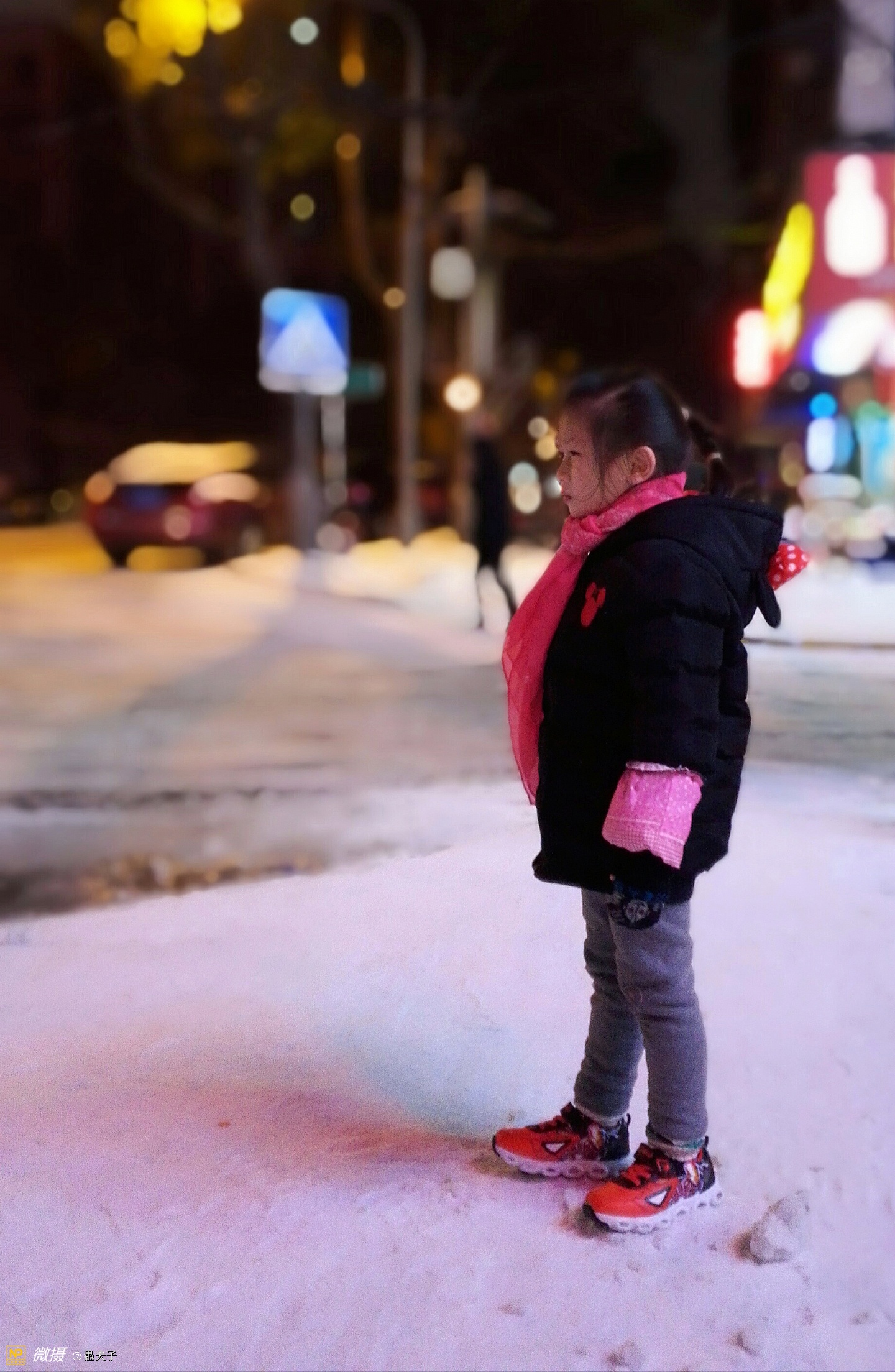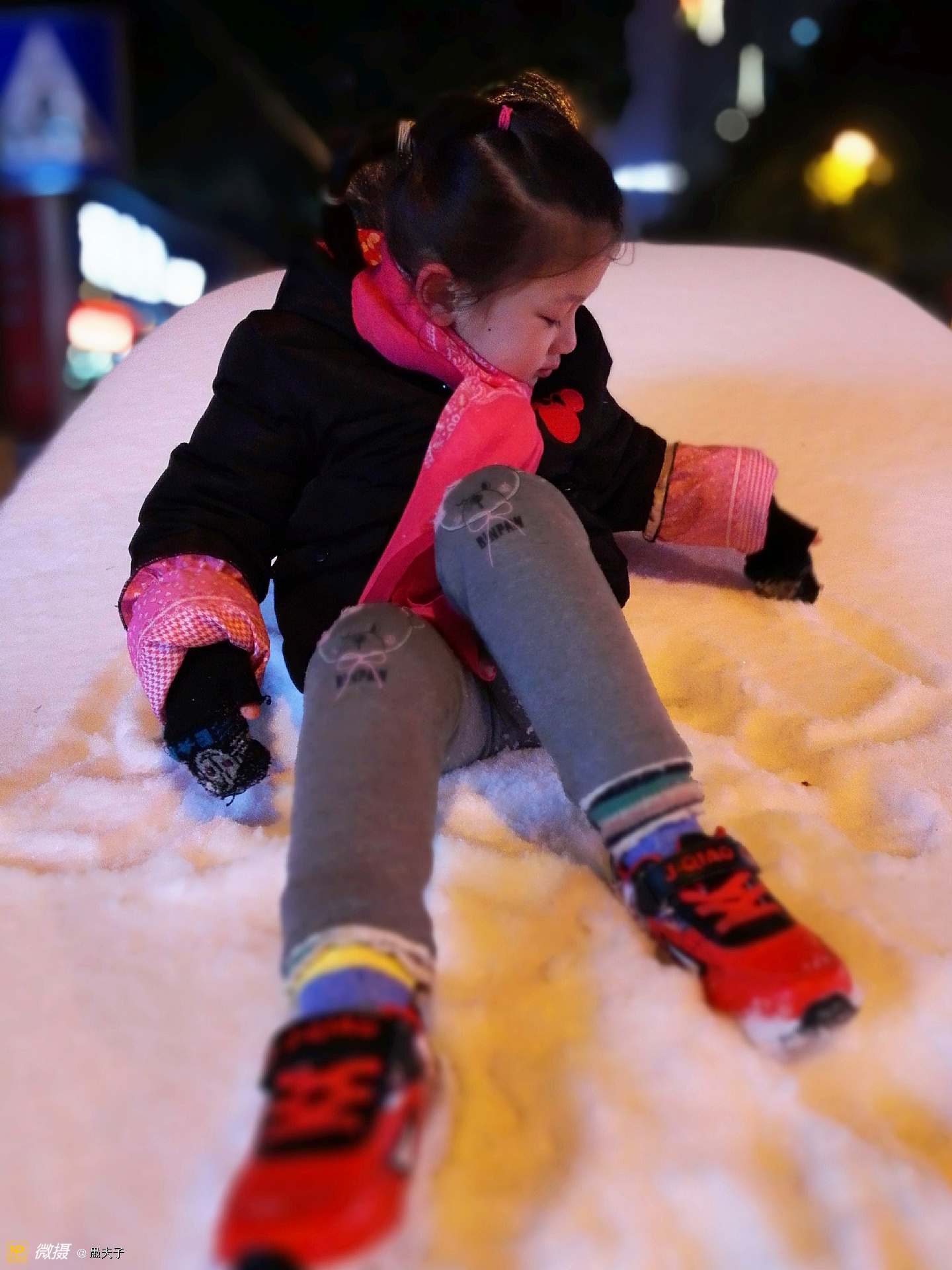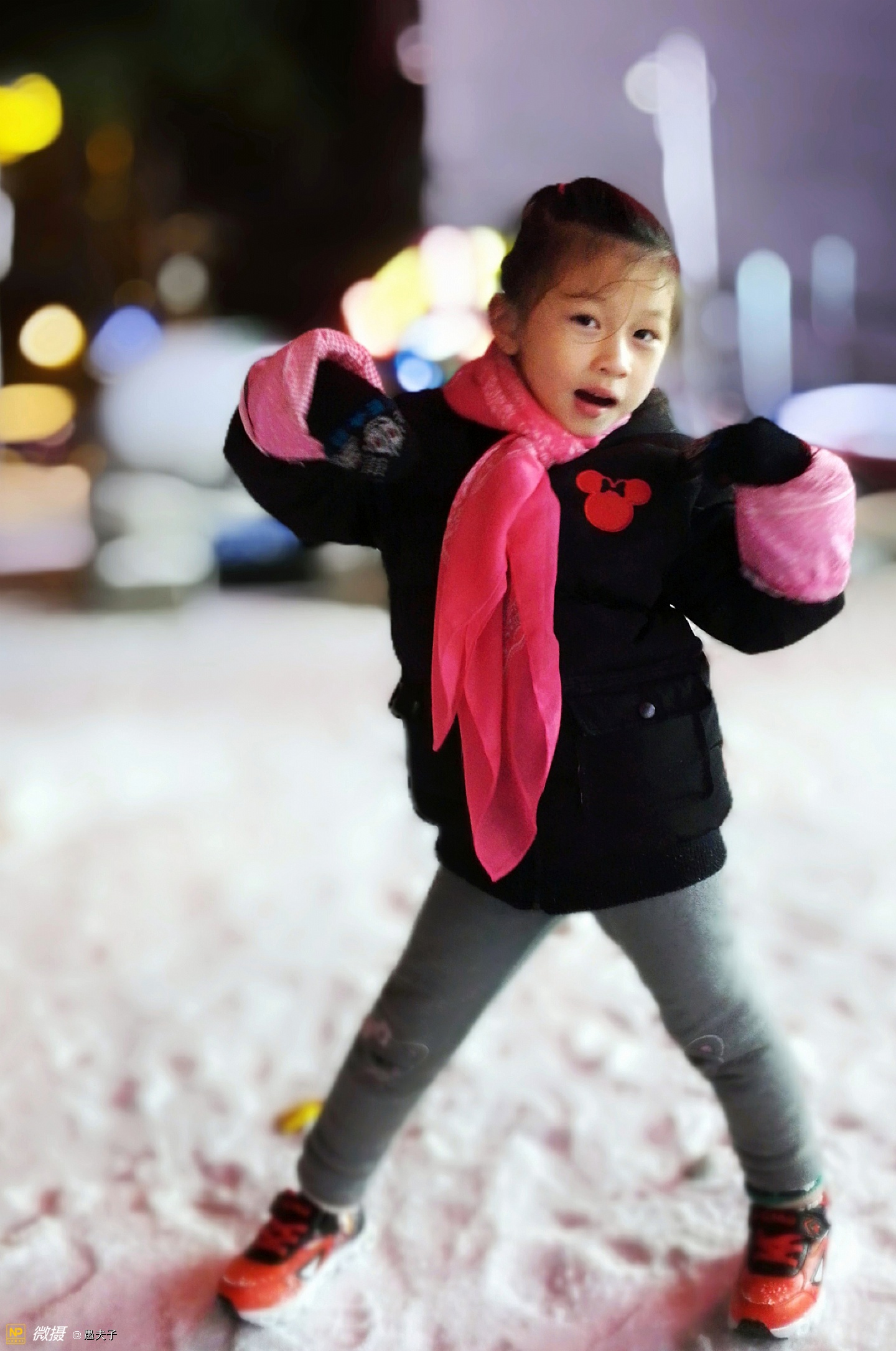 手机拍:巴陵飘雪小妞妞与冰雪首次亲密接触
