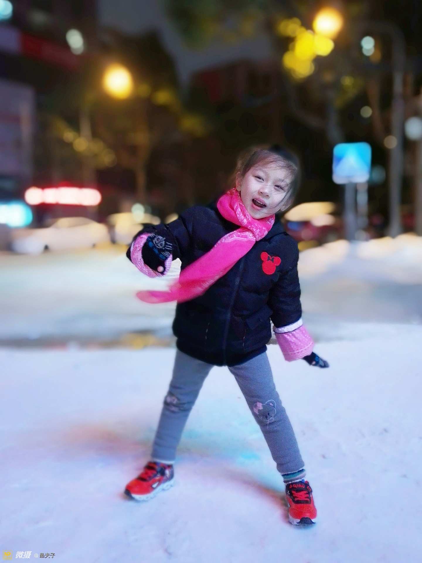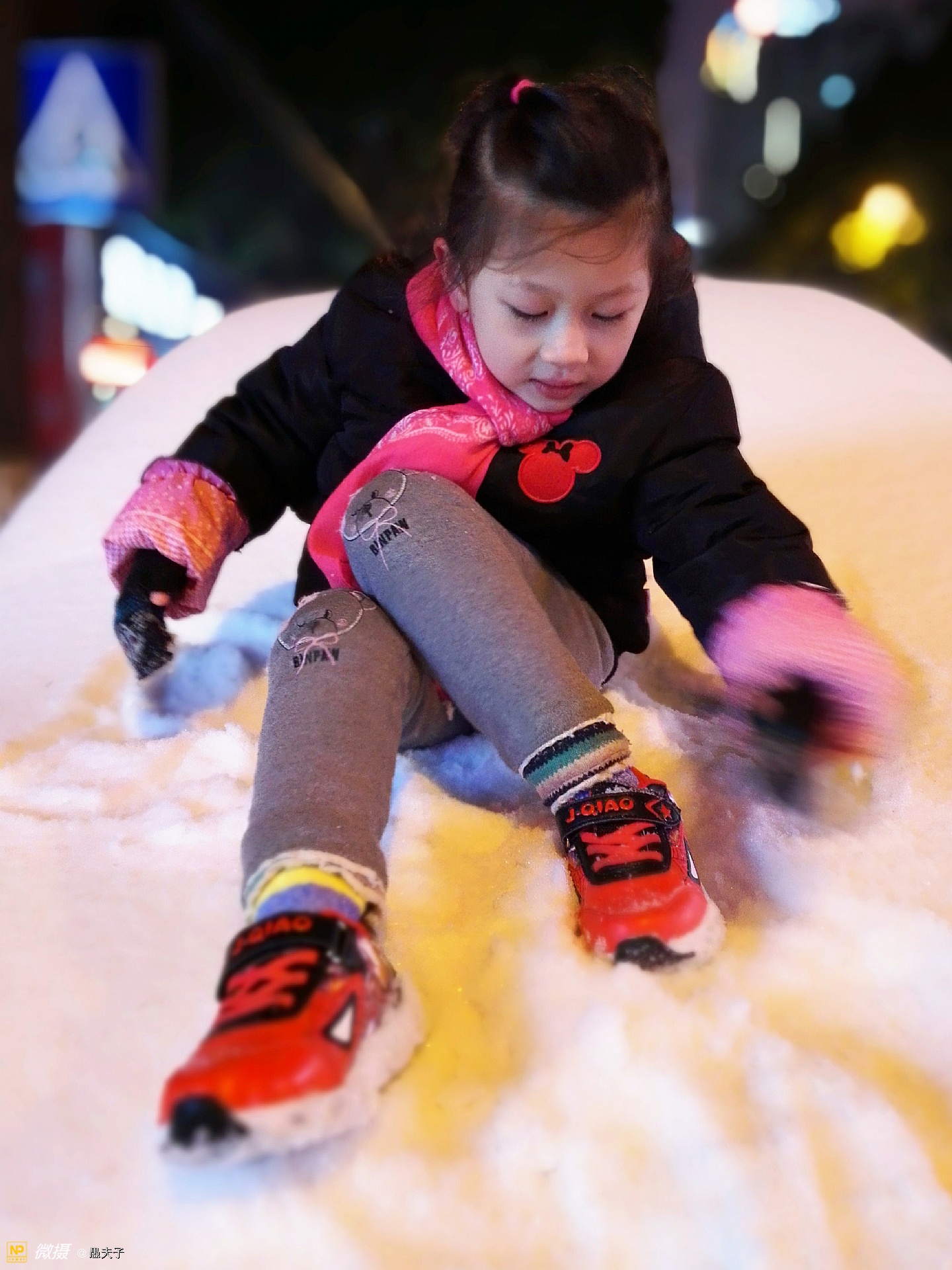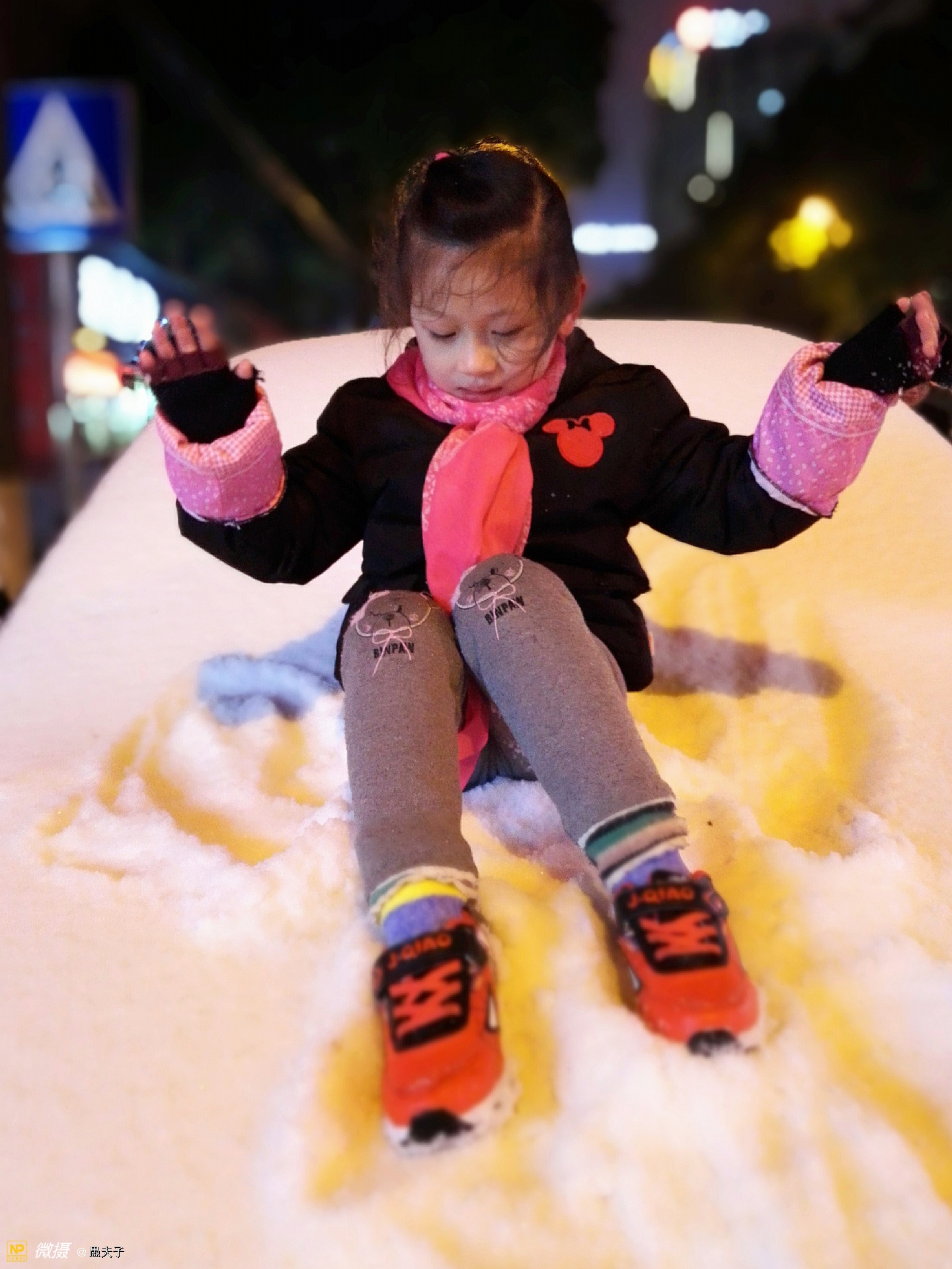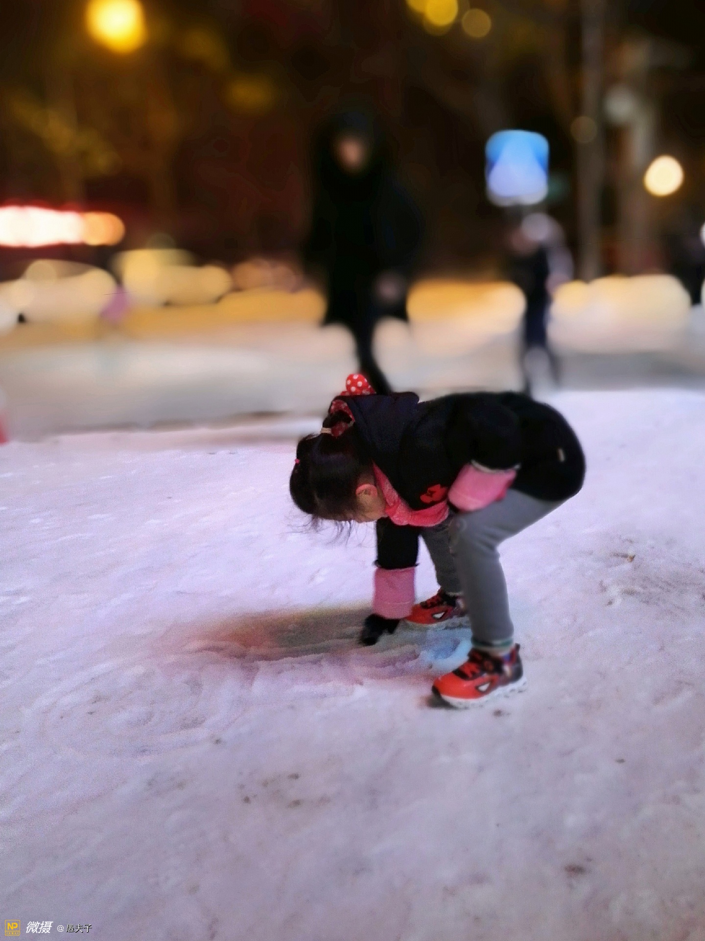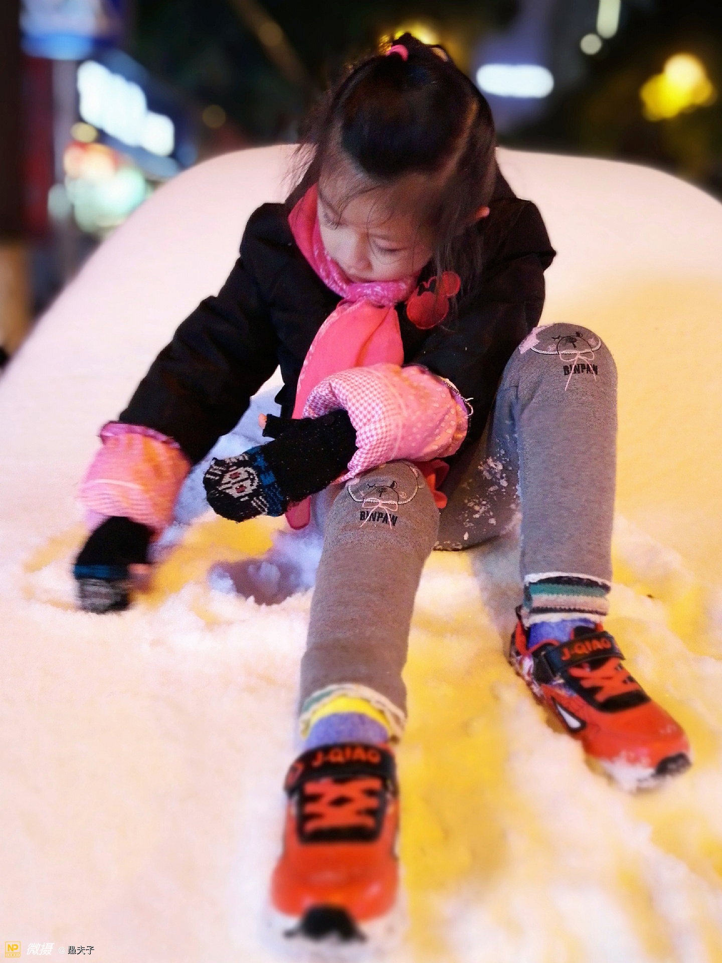 手机拍:巴陵飘雪小妞妞与冰雪首次亲密接触