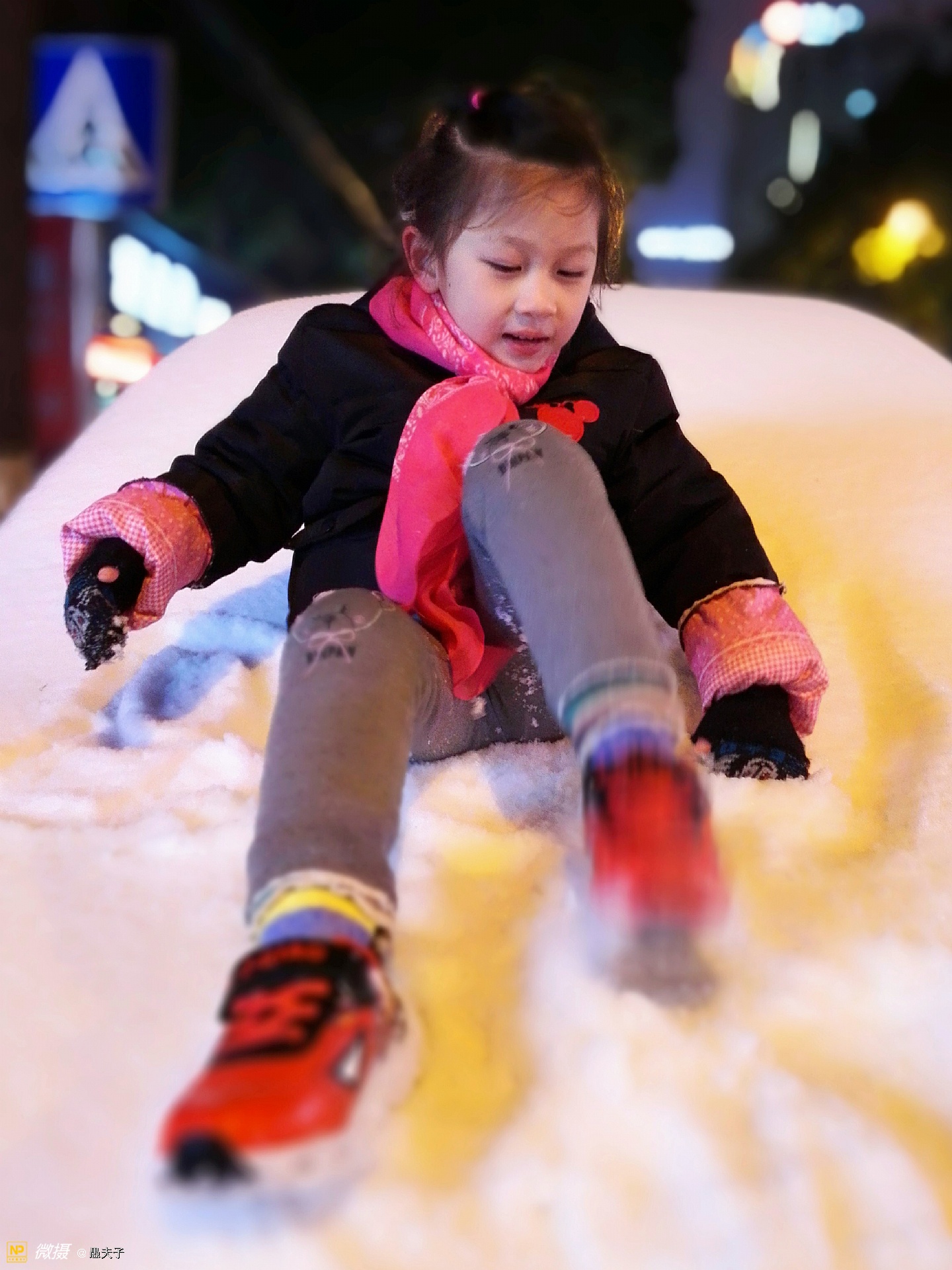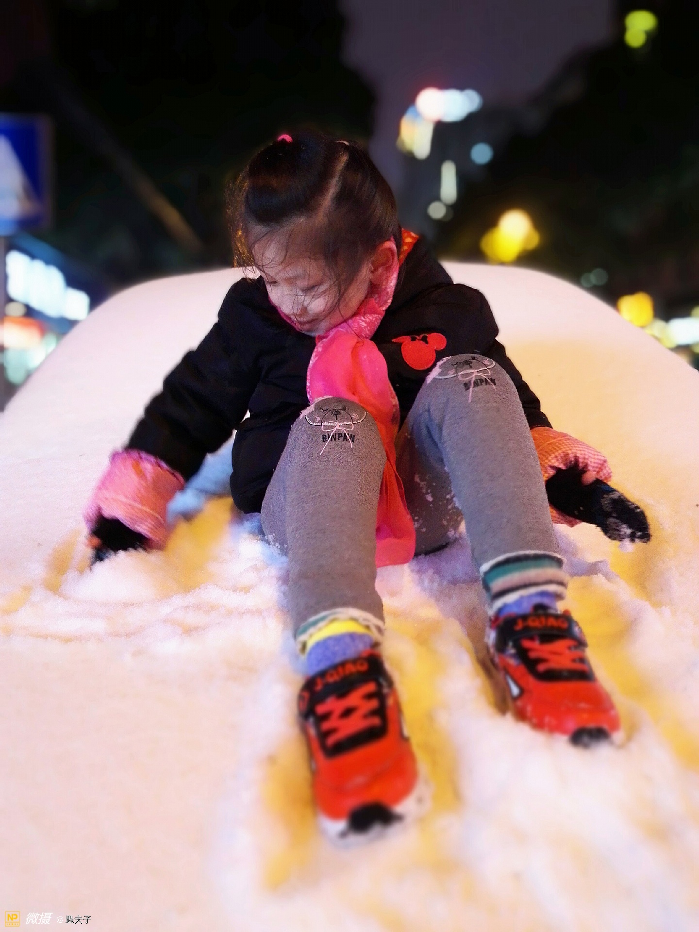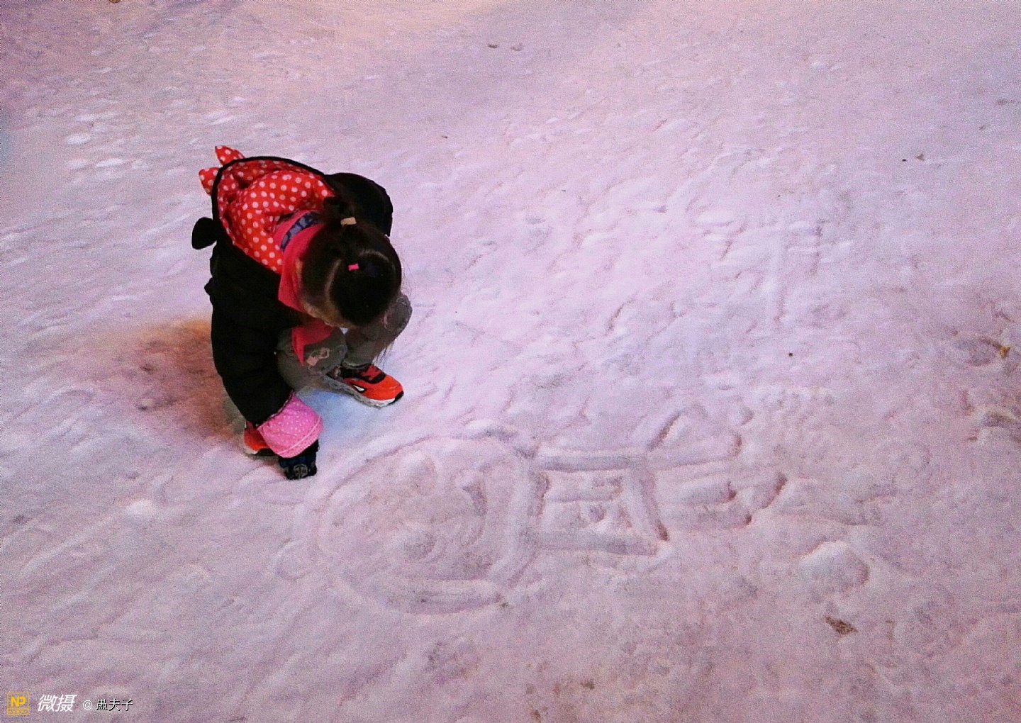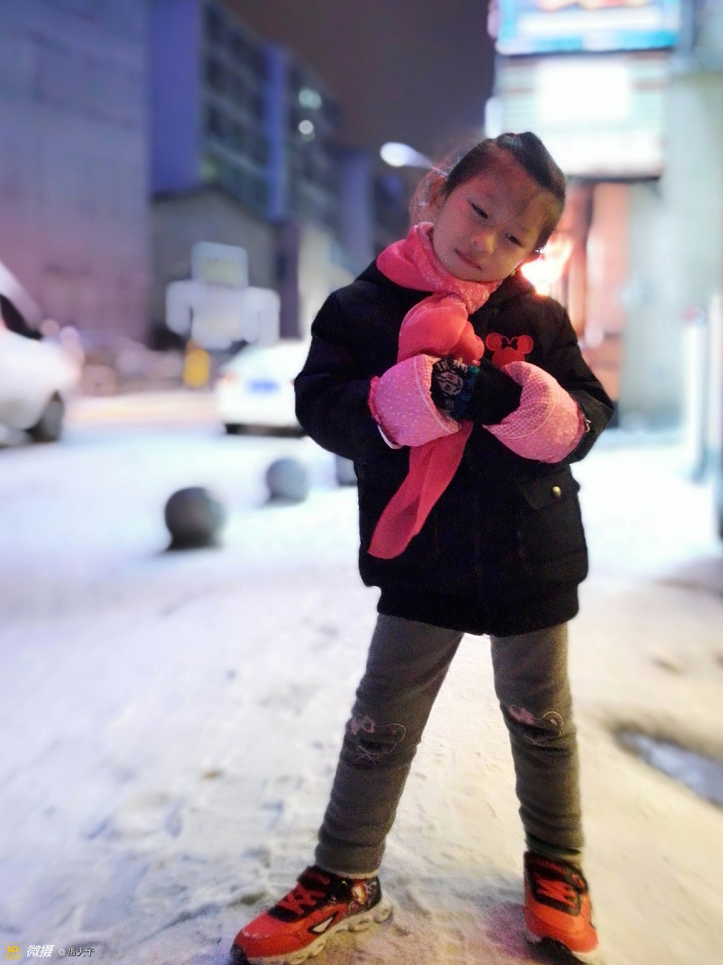 手机拍:巴陵飘雪小妞妞与冰雪首次亲密接触