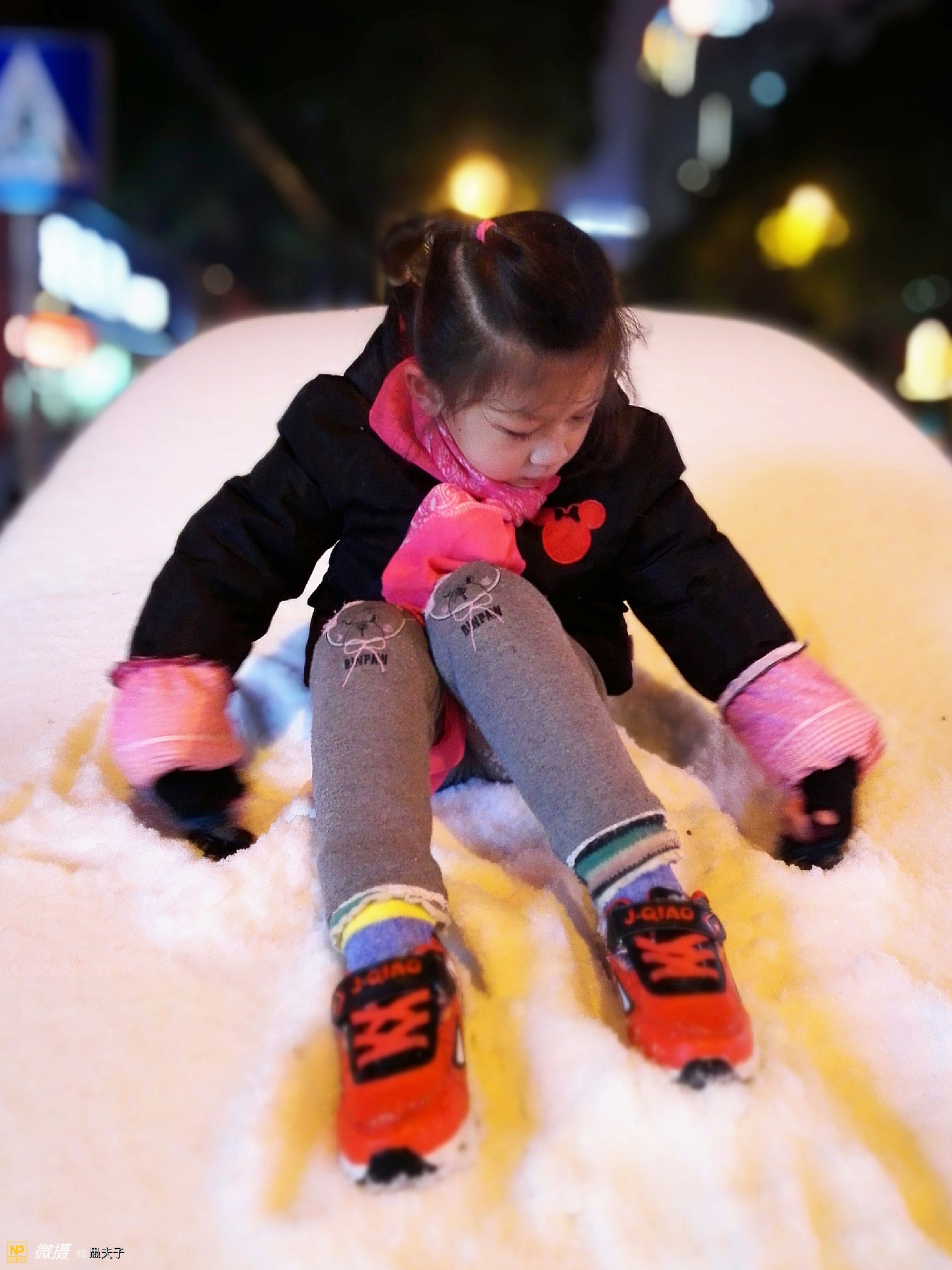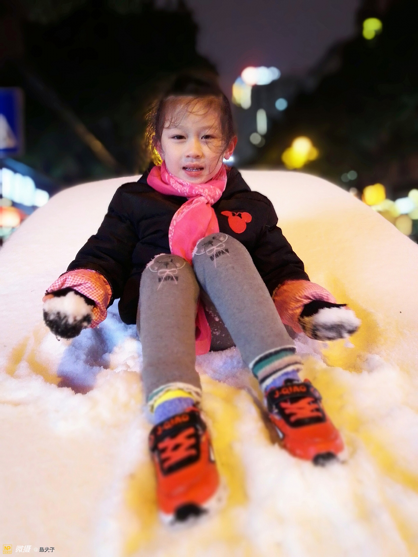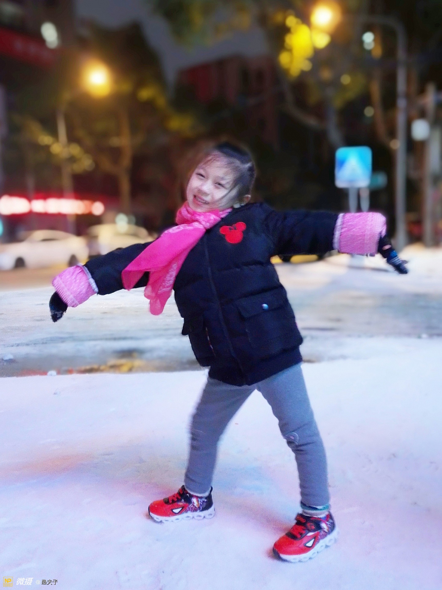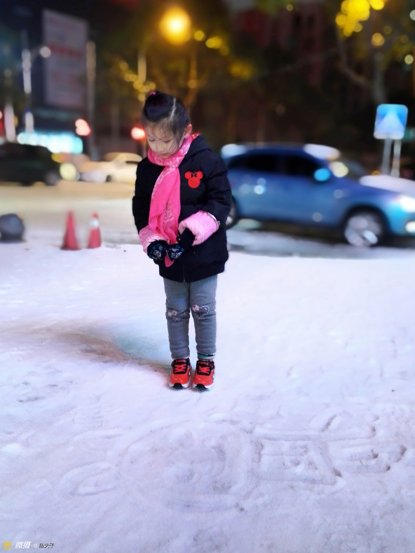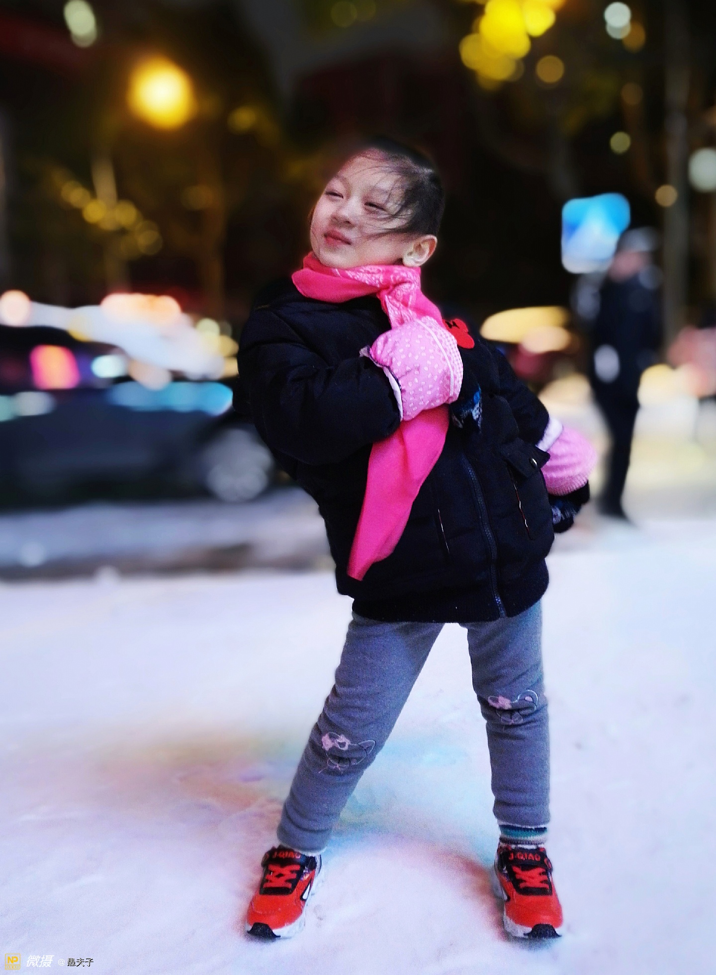 手机拍:巴陵飘雪小妞妞与冰雪首次亲密接触