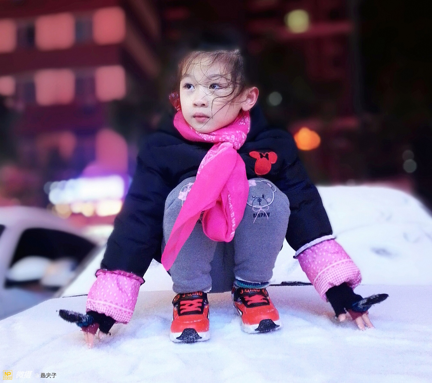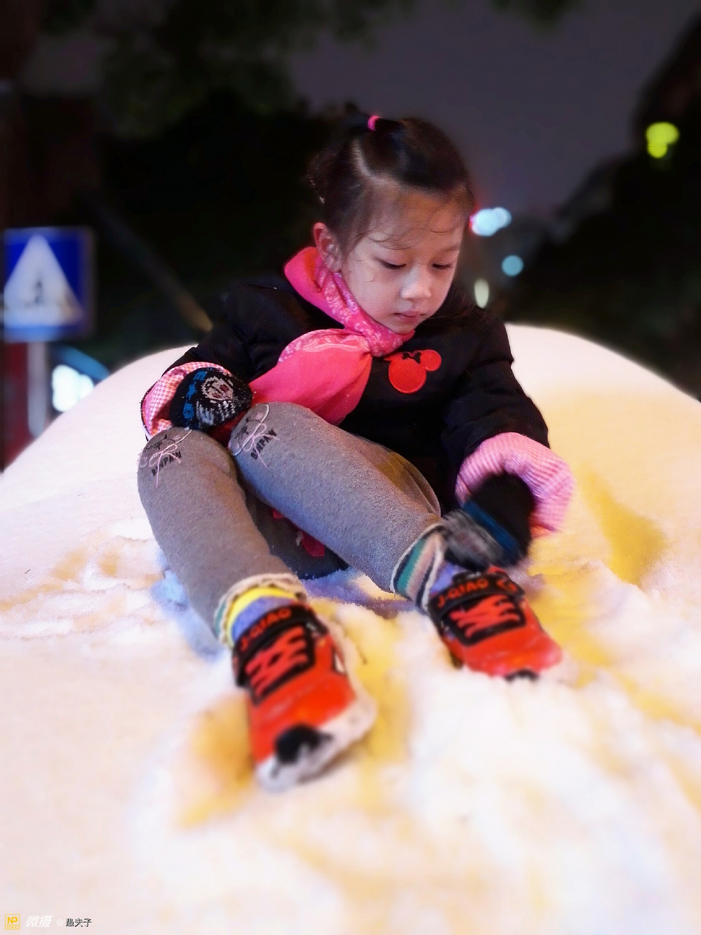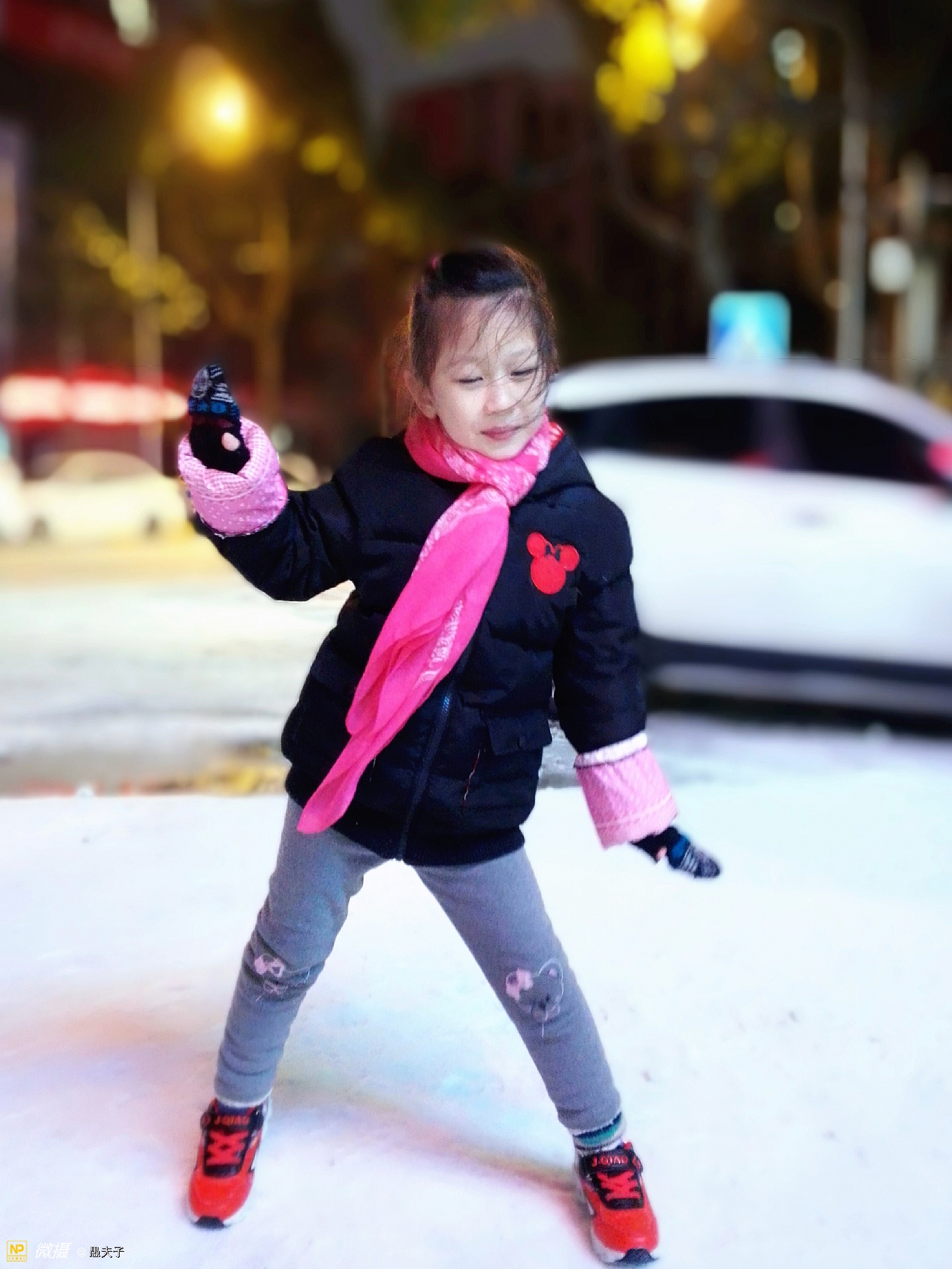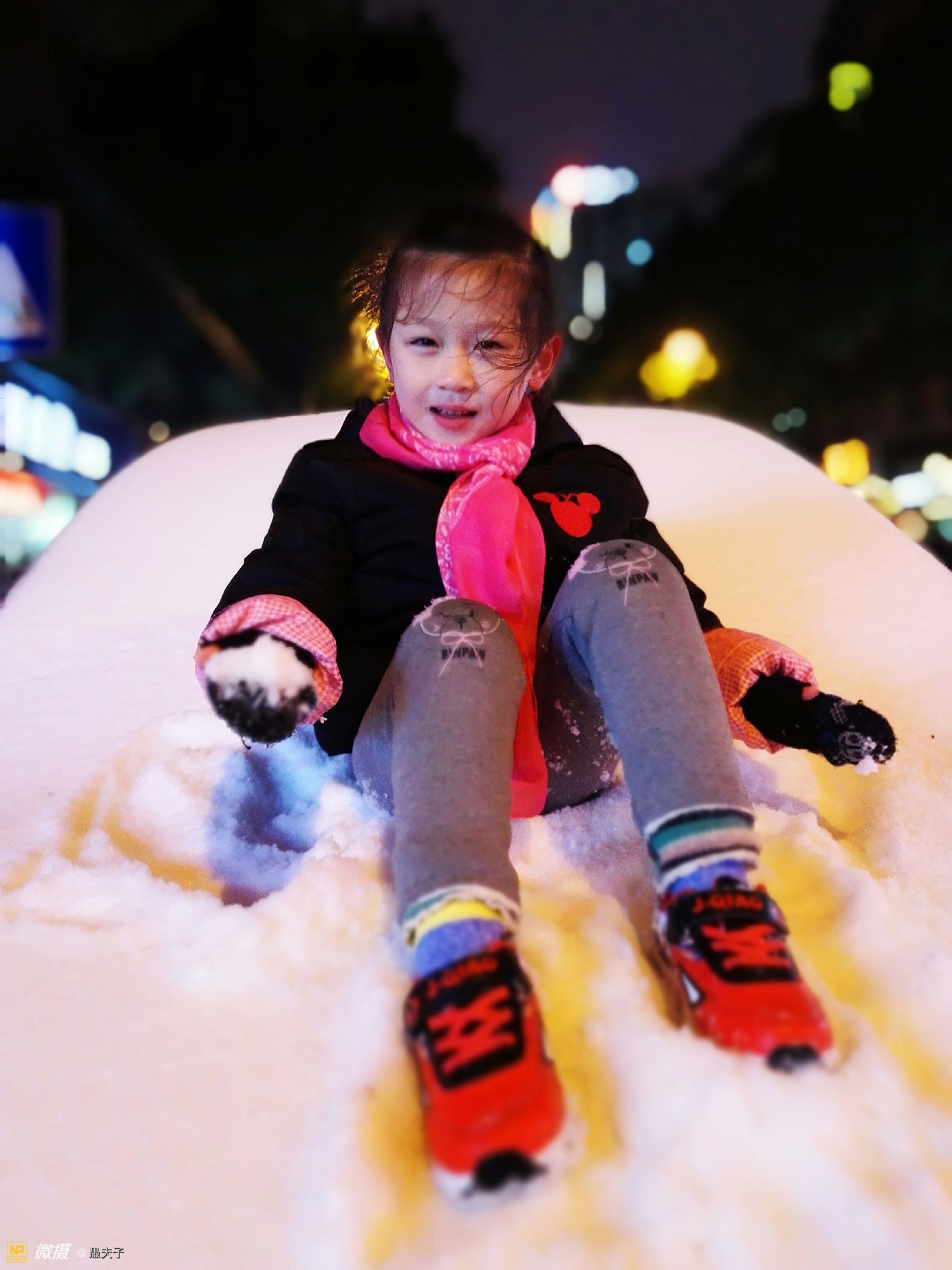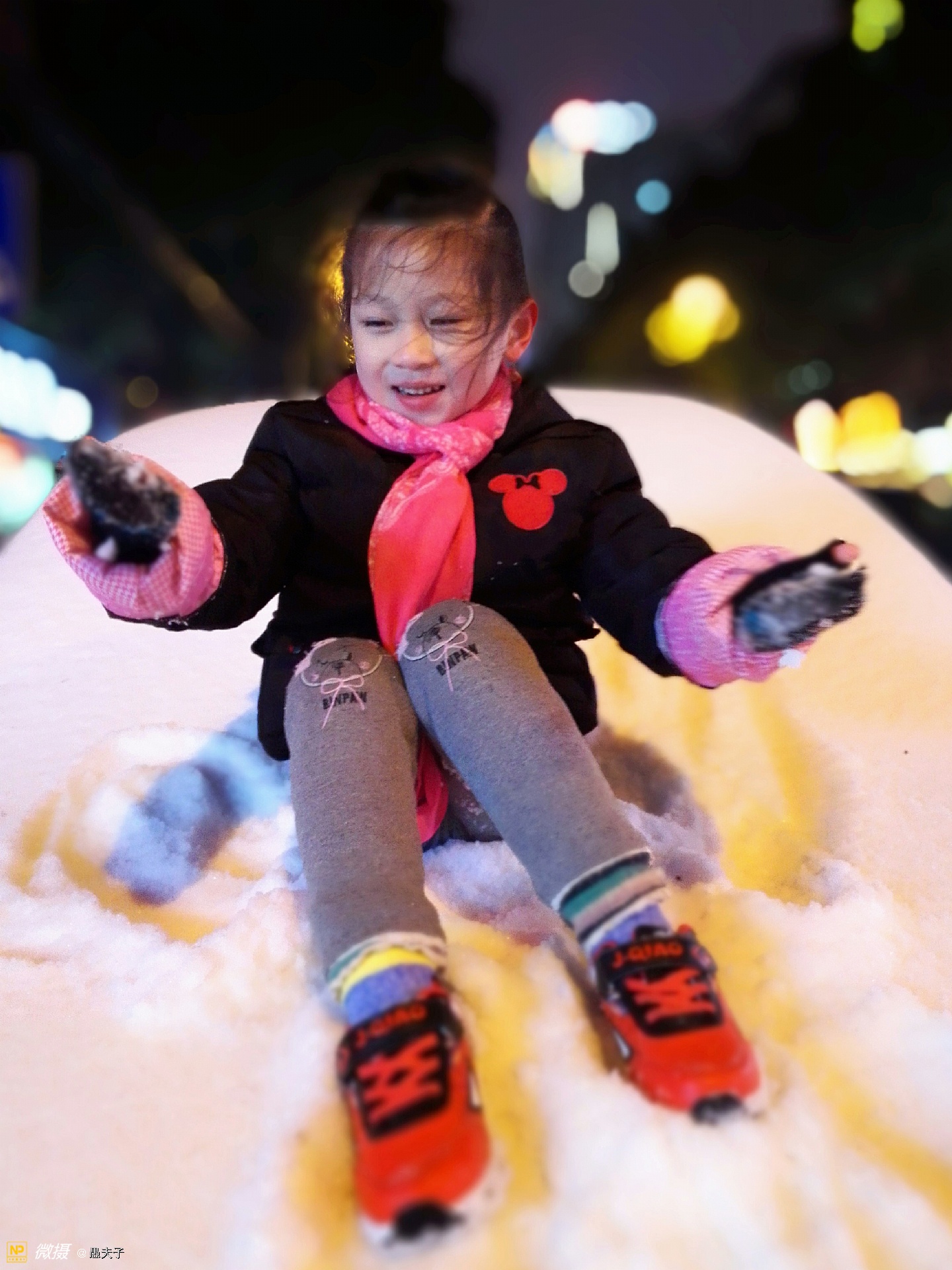 手机拍:巴陵飘雪小妞妞与冰雪首次亲密接触