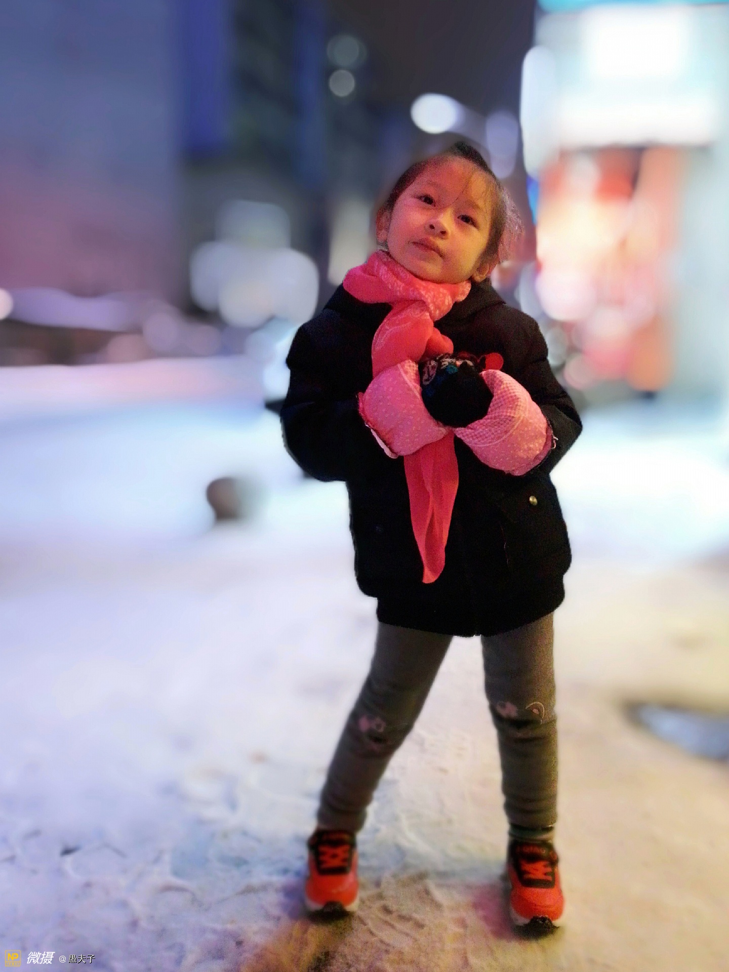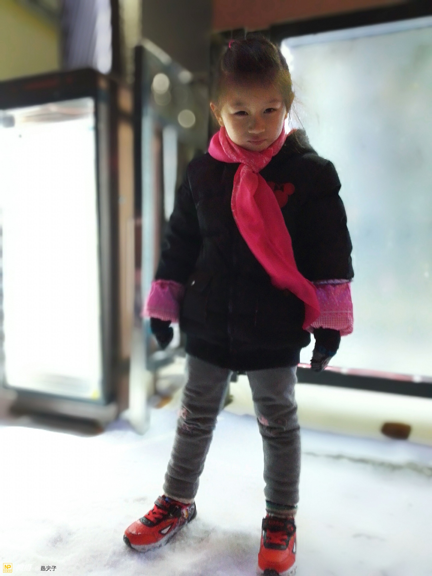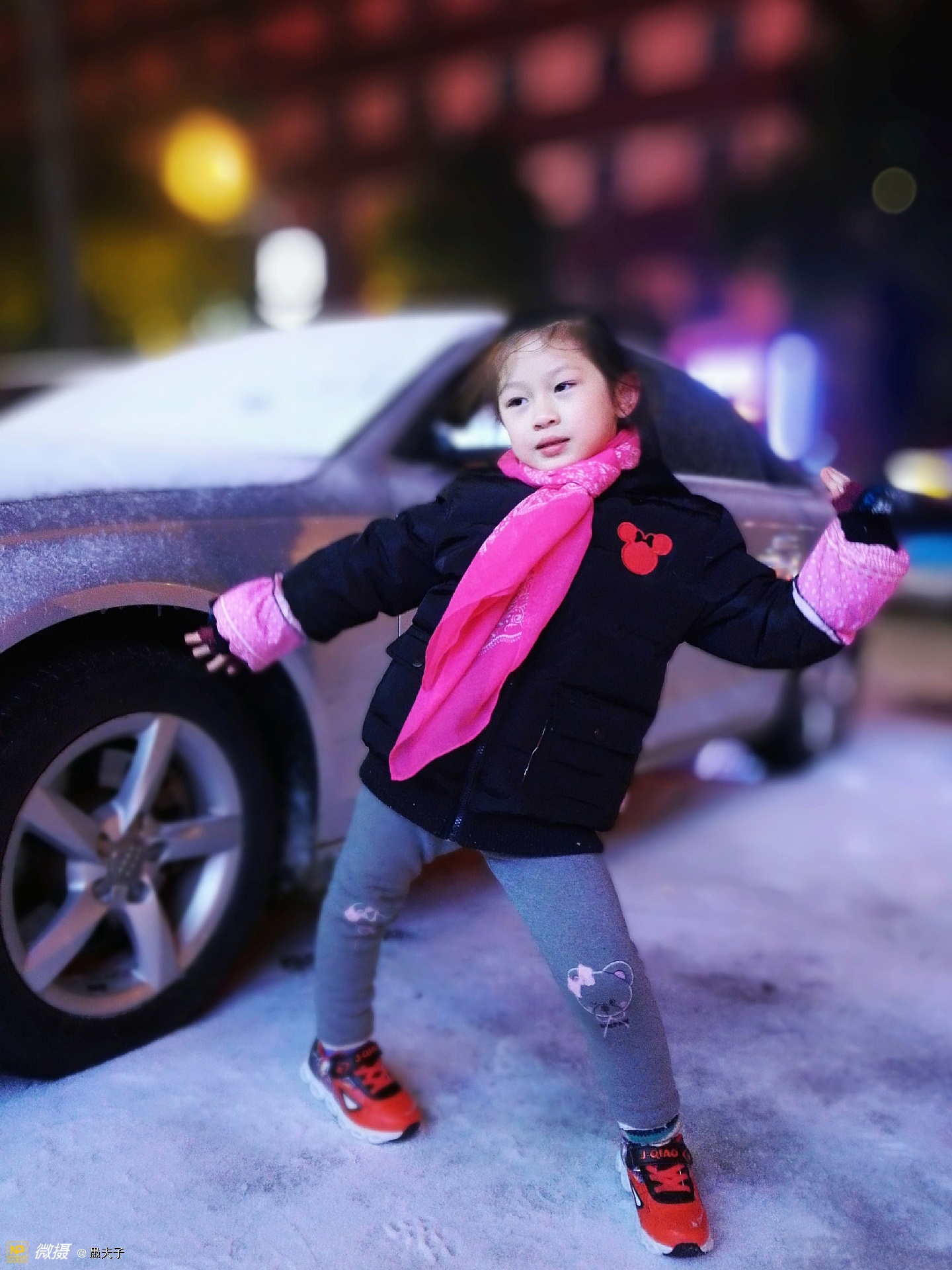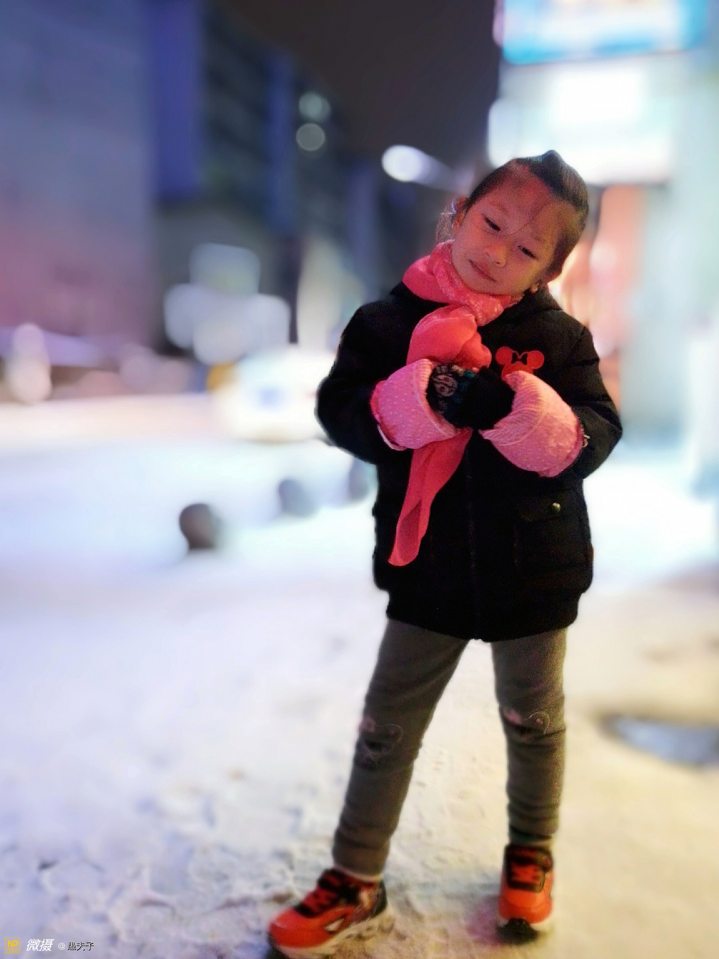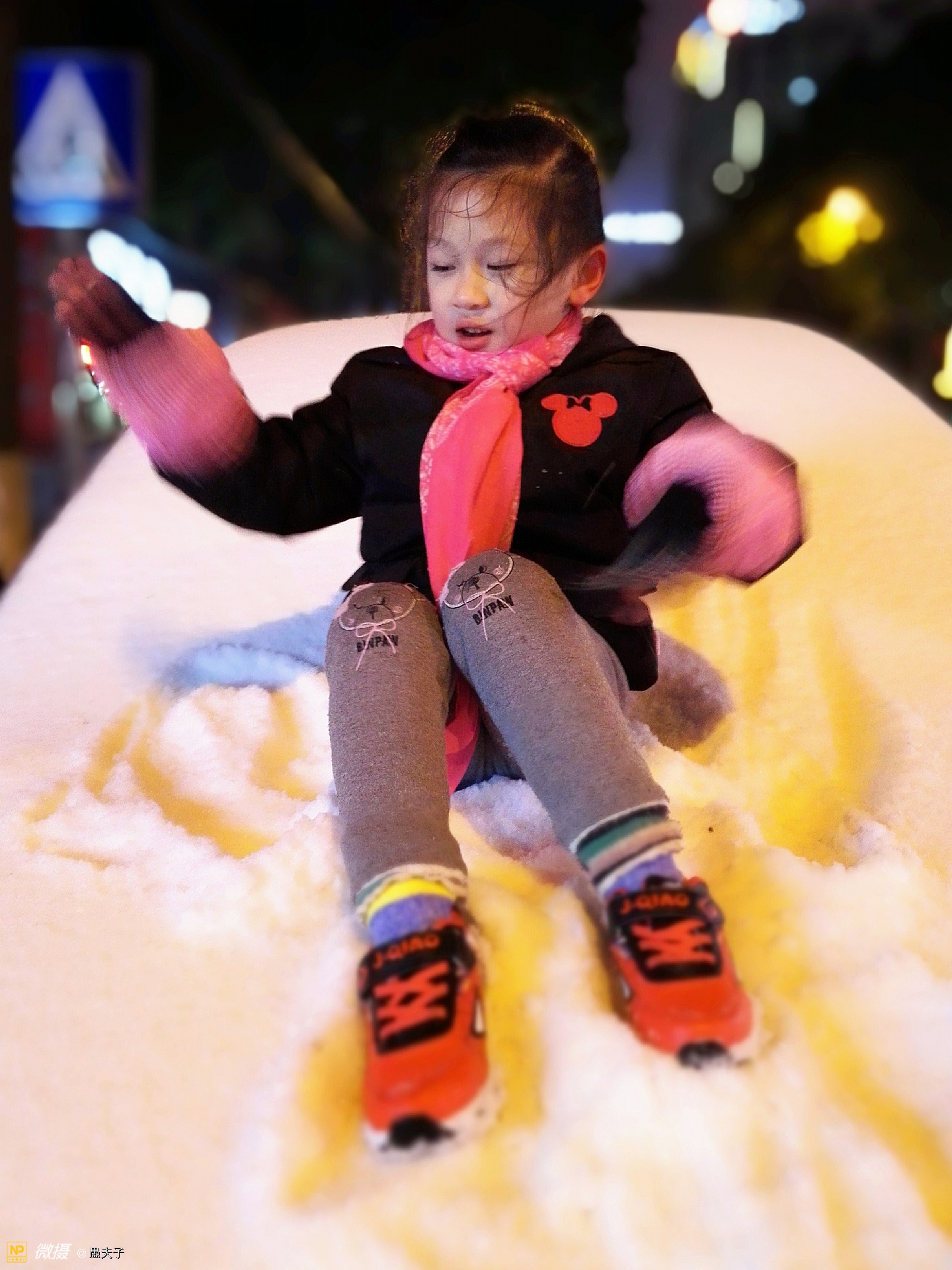 手机拍:巴陵飘雪小妞妞与冰雪首次亲密接触