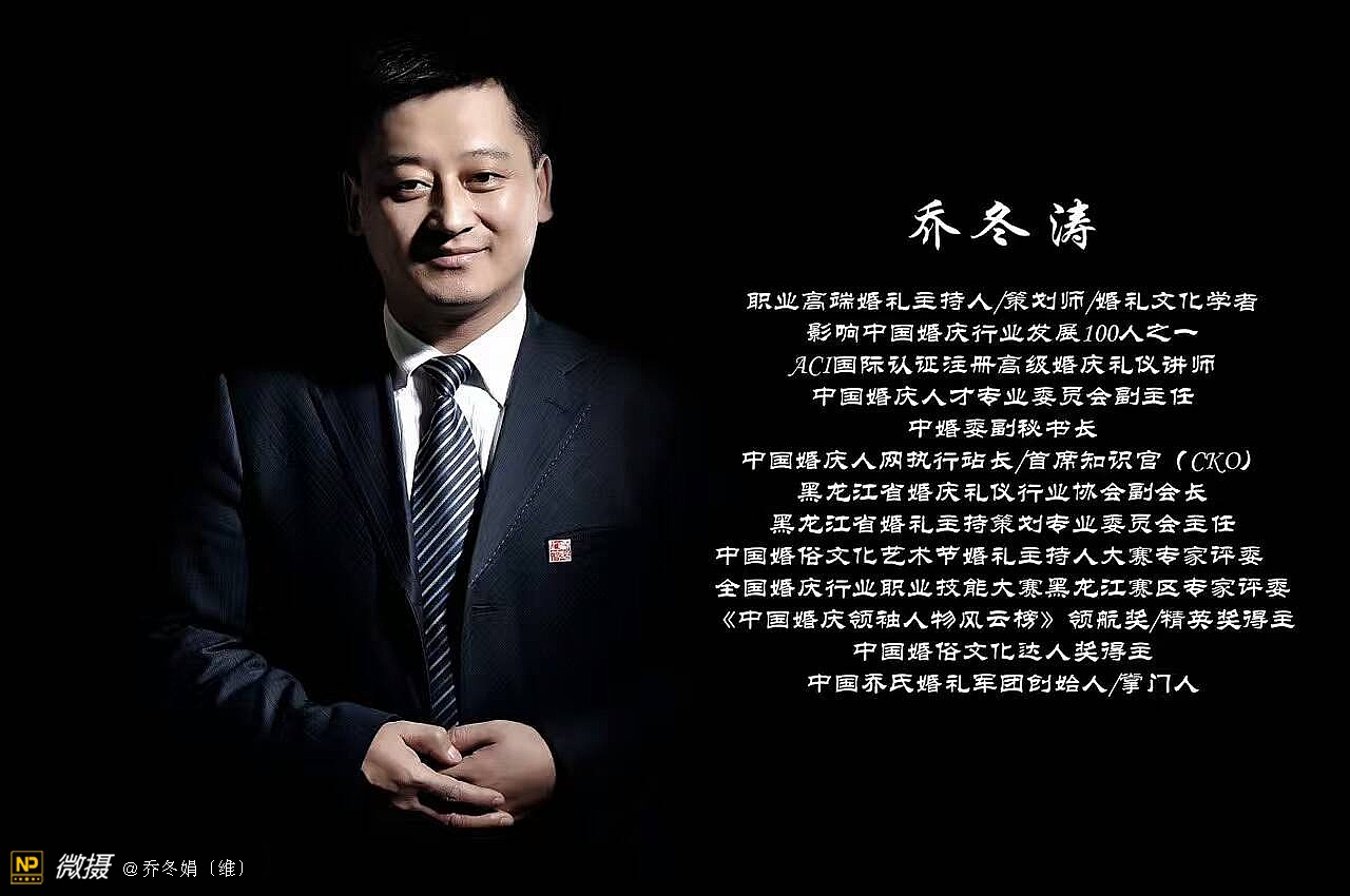 乔冬涛自幼喜好文笔,勤学于书法、绘画、诗书的海洋里,他从博大精深的中国文化中汲取精华、以传承和发展的人文理念使之融入并呈现于婚庆行业中……