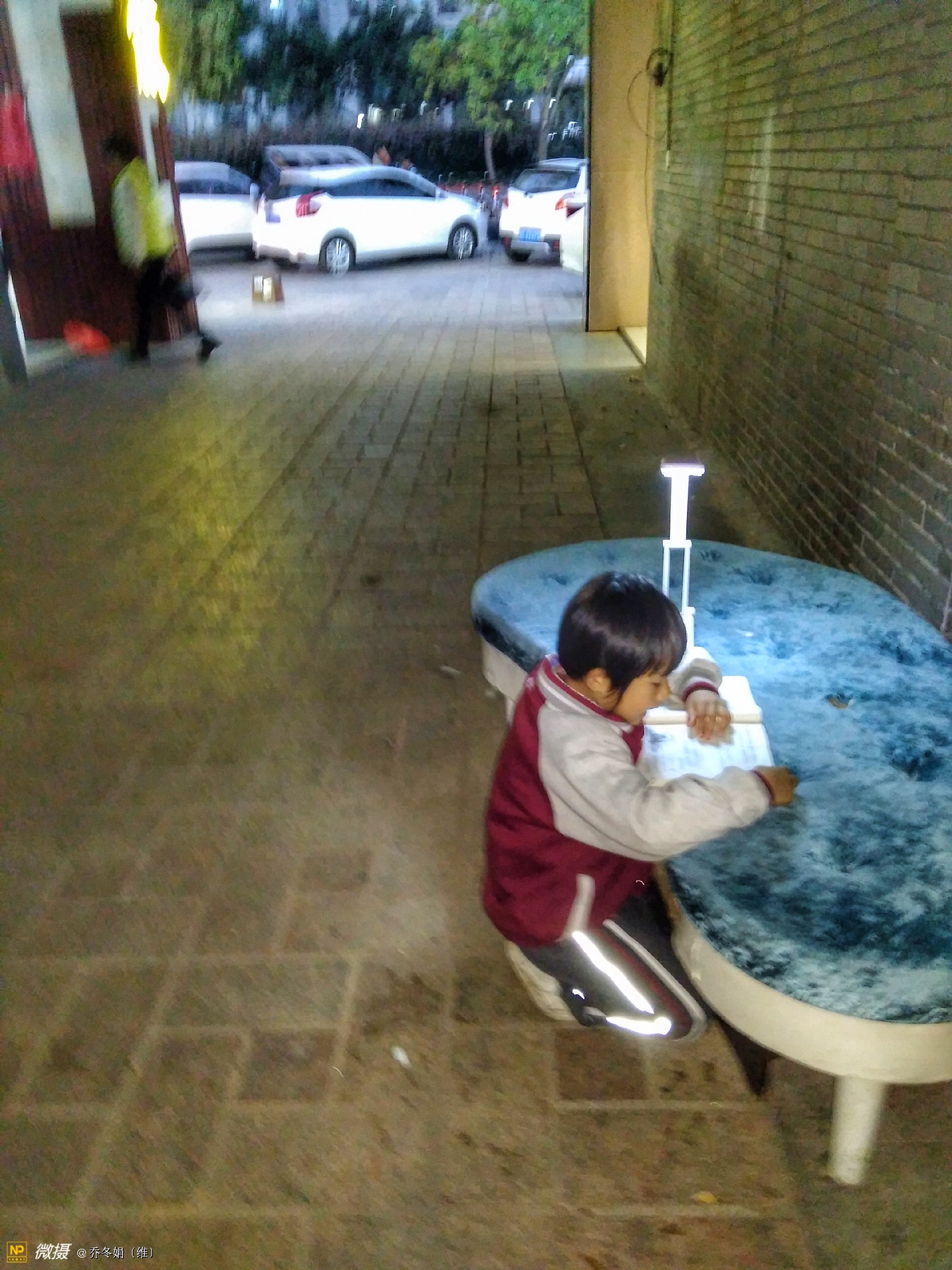 街边写作业的孩子