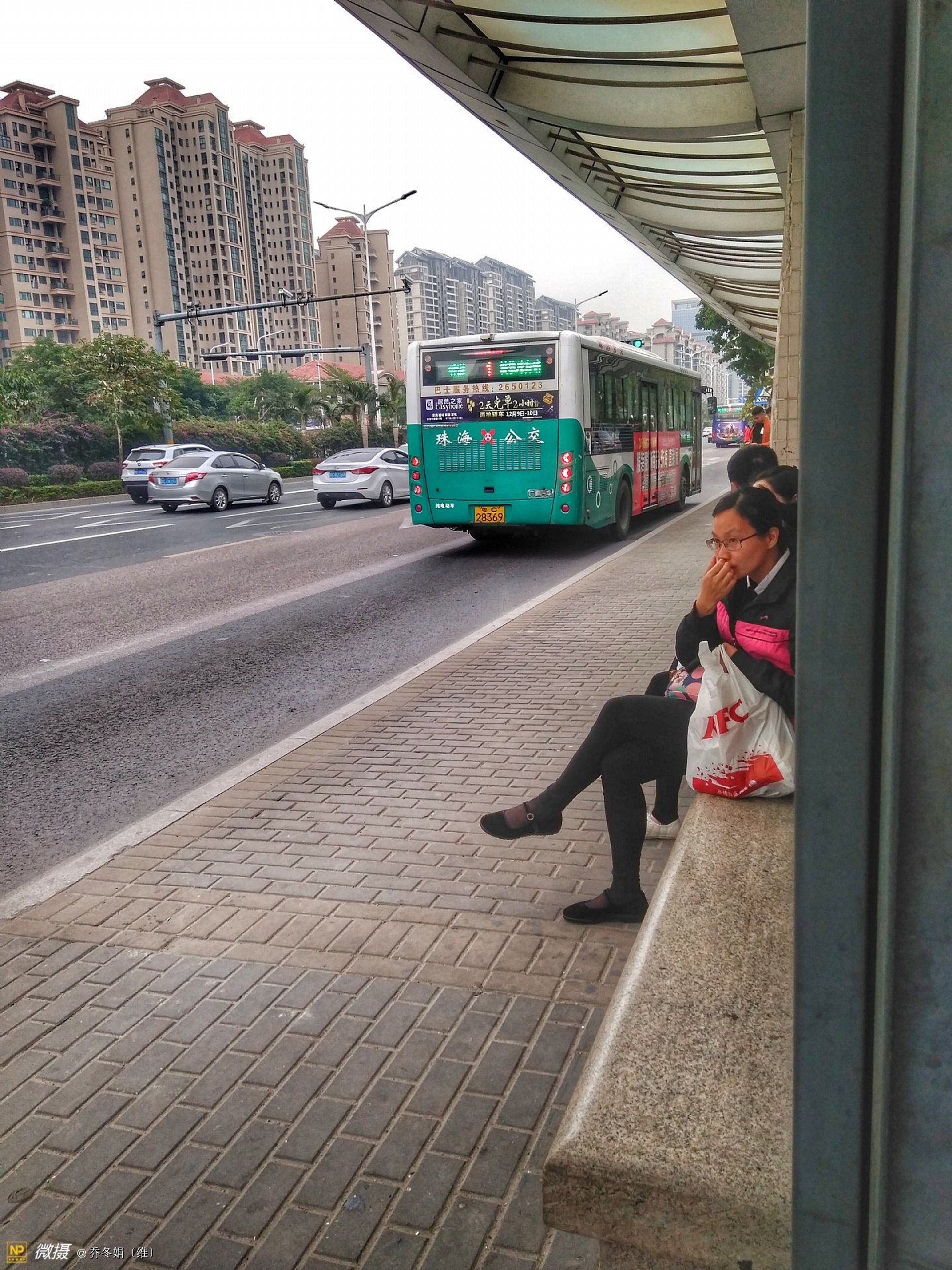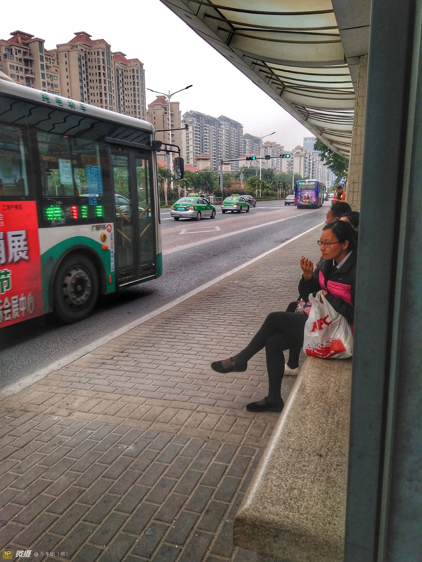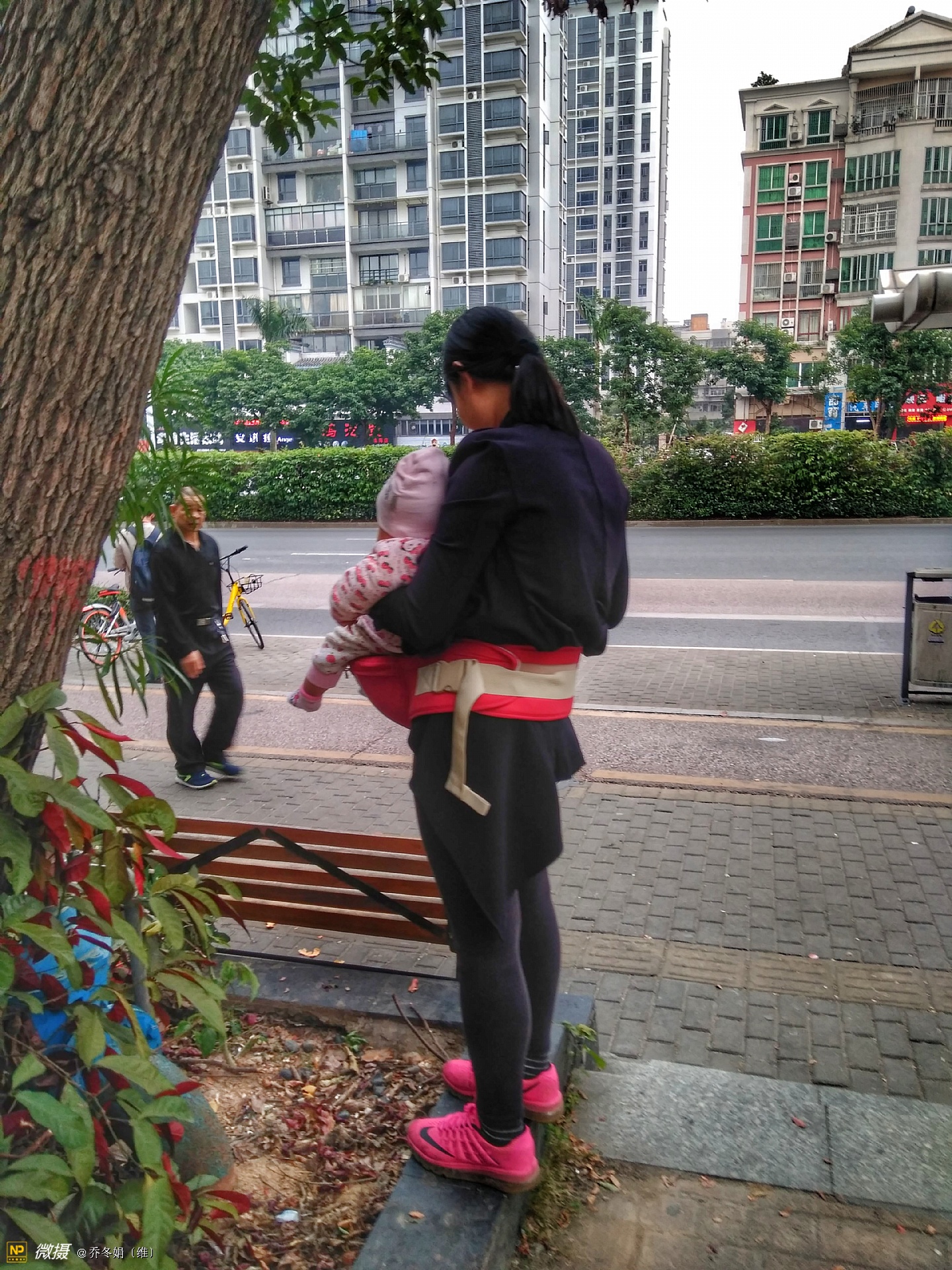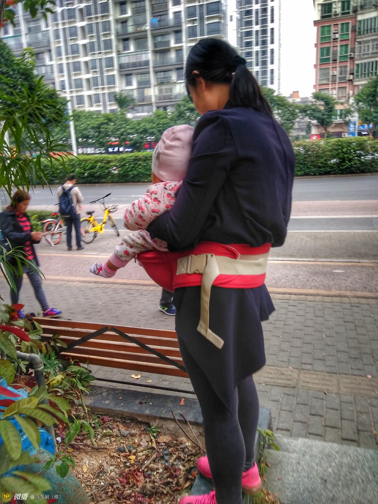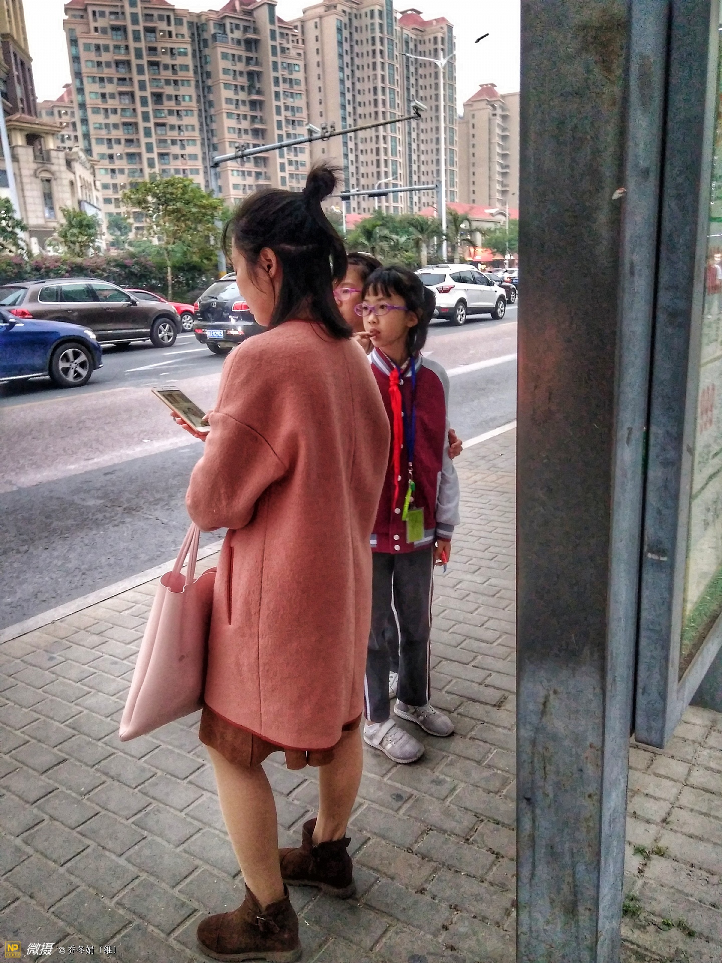 离妈咪不远处还有两个人、也在看手机
