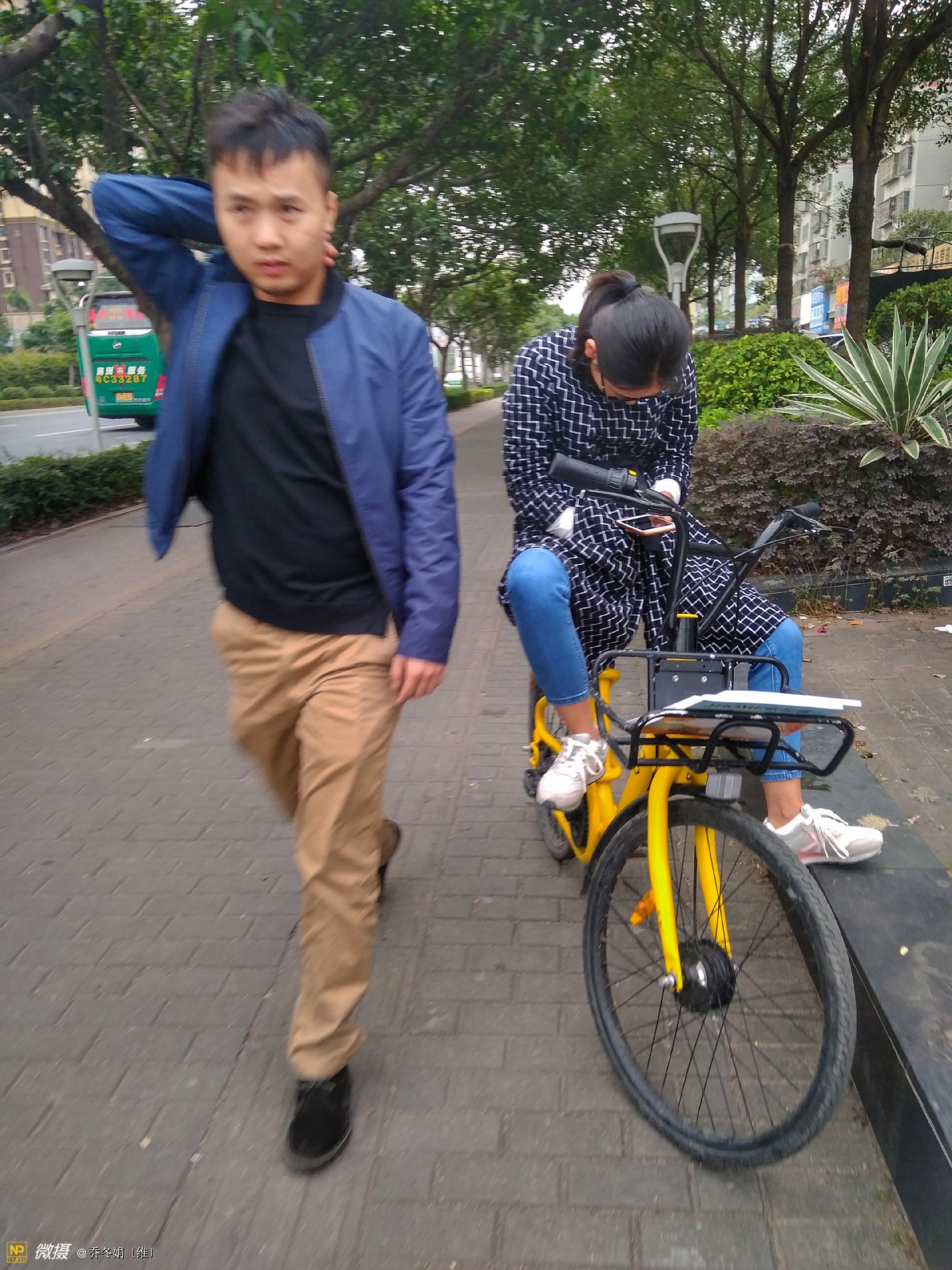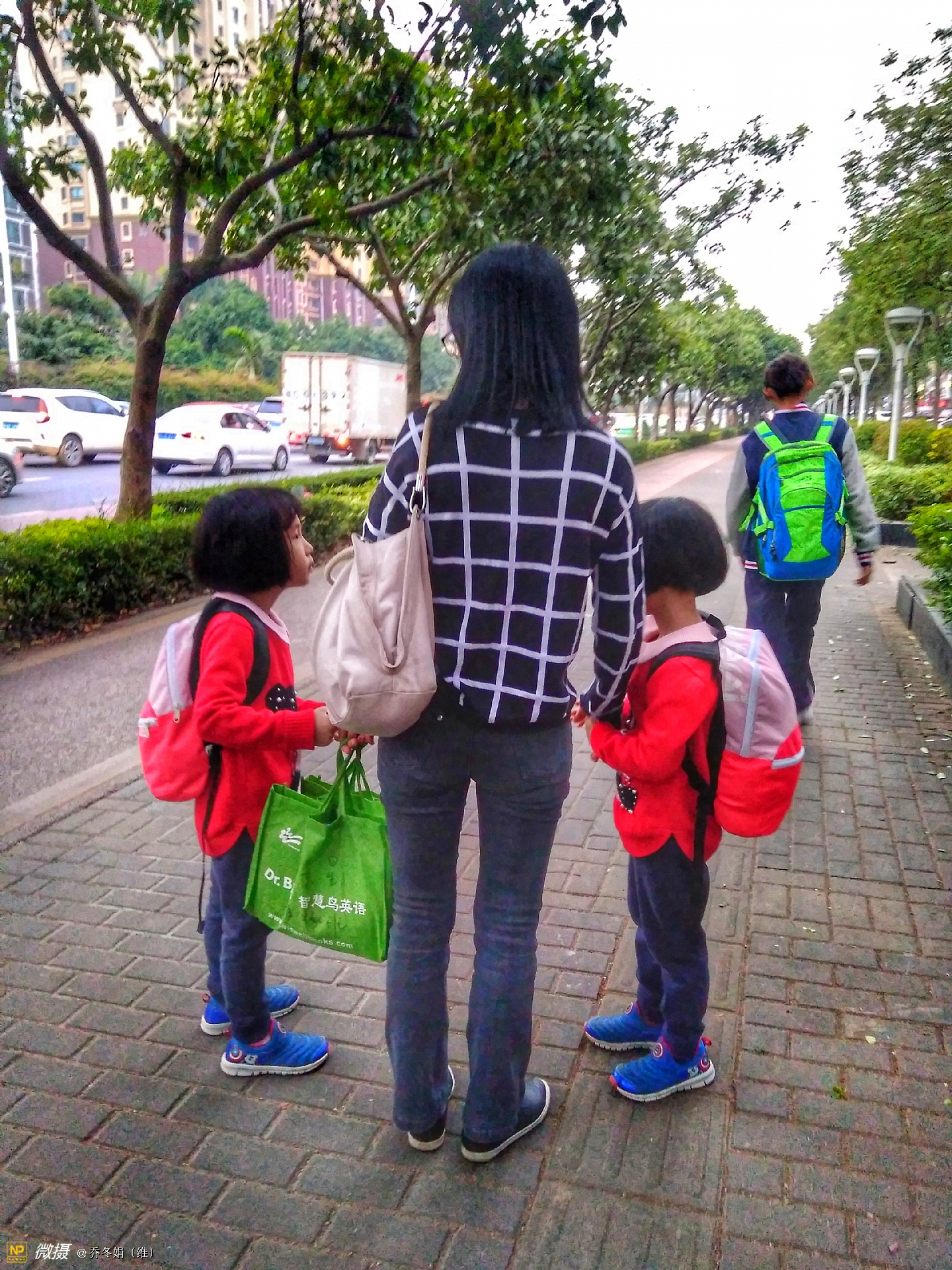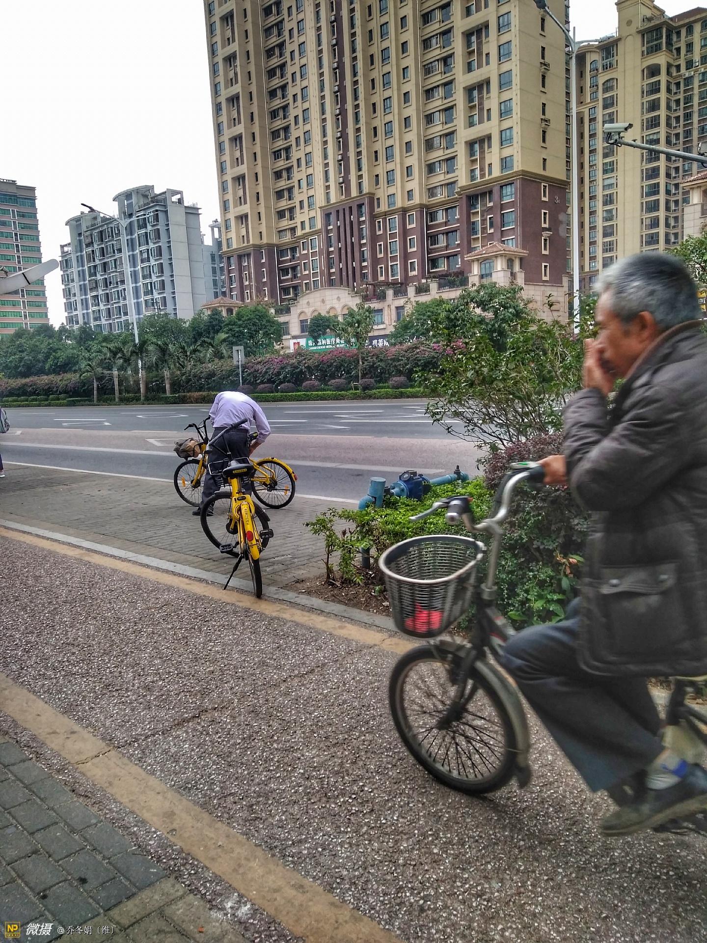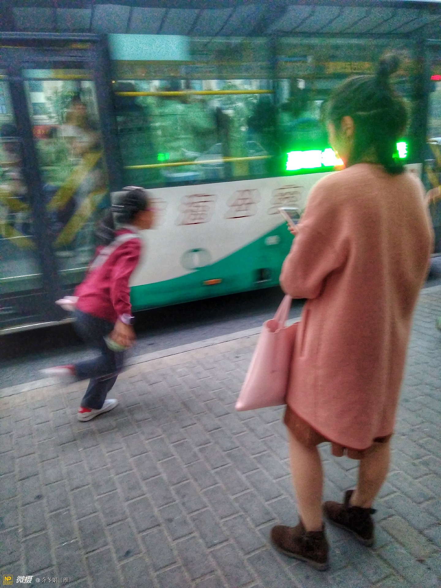 离妈咪不远处还有两个人、也在看手机