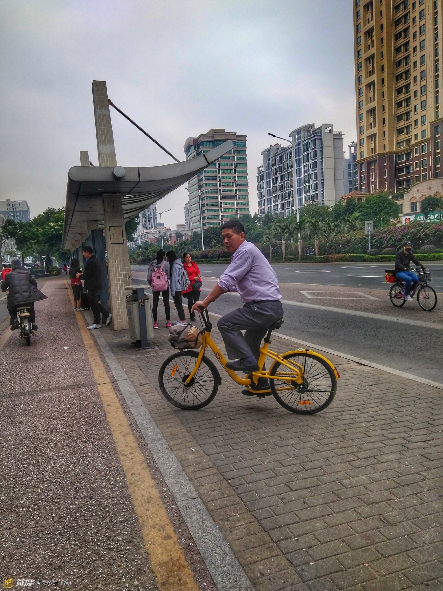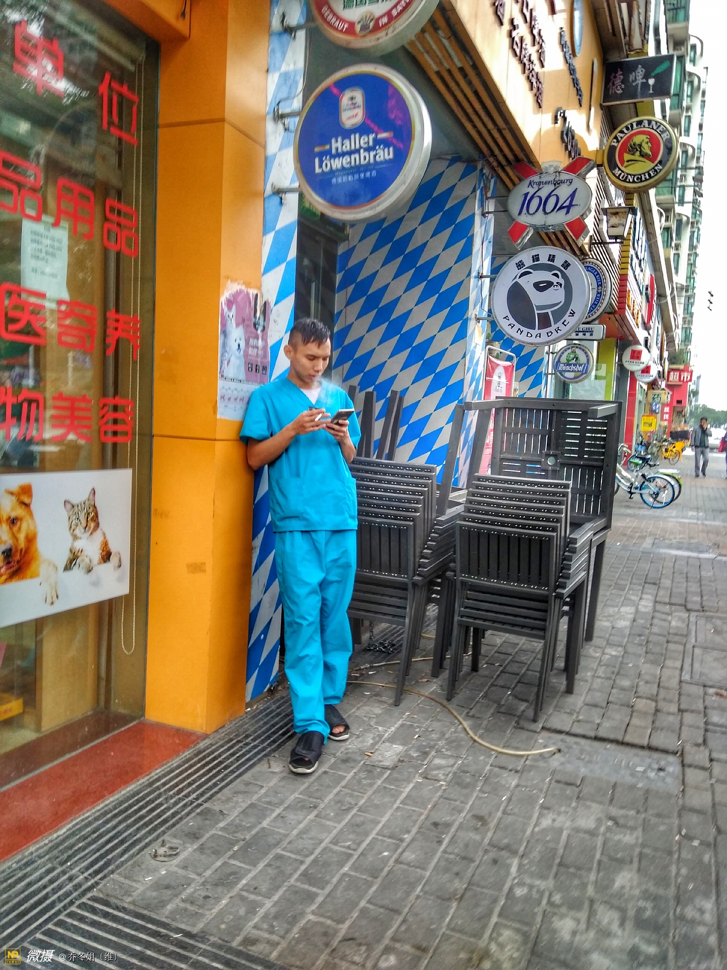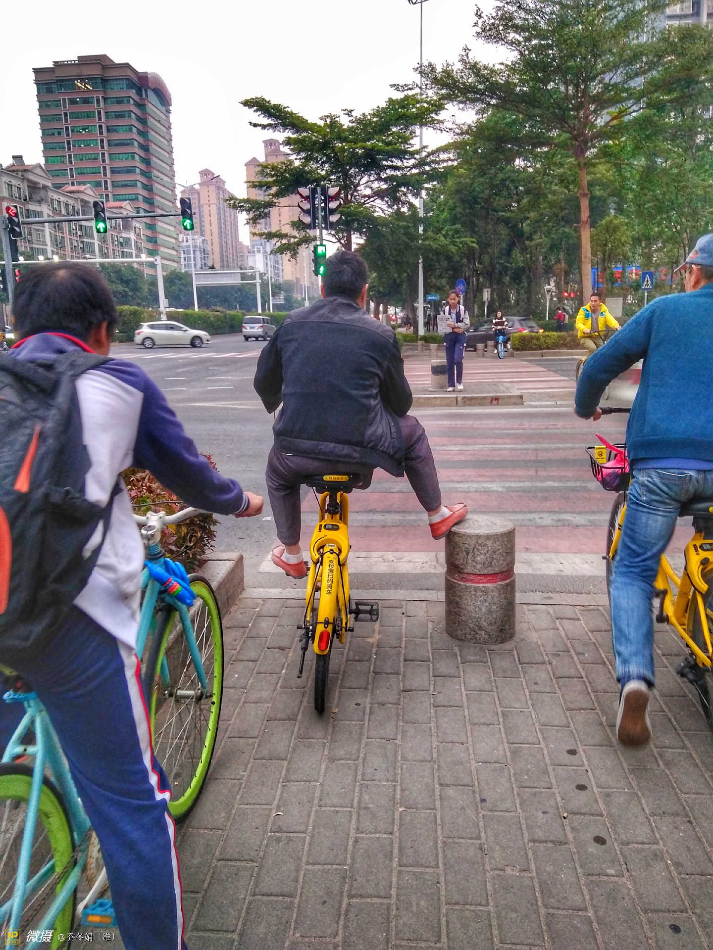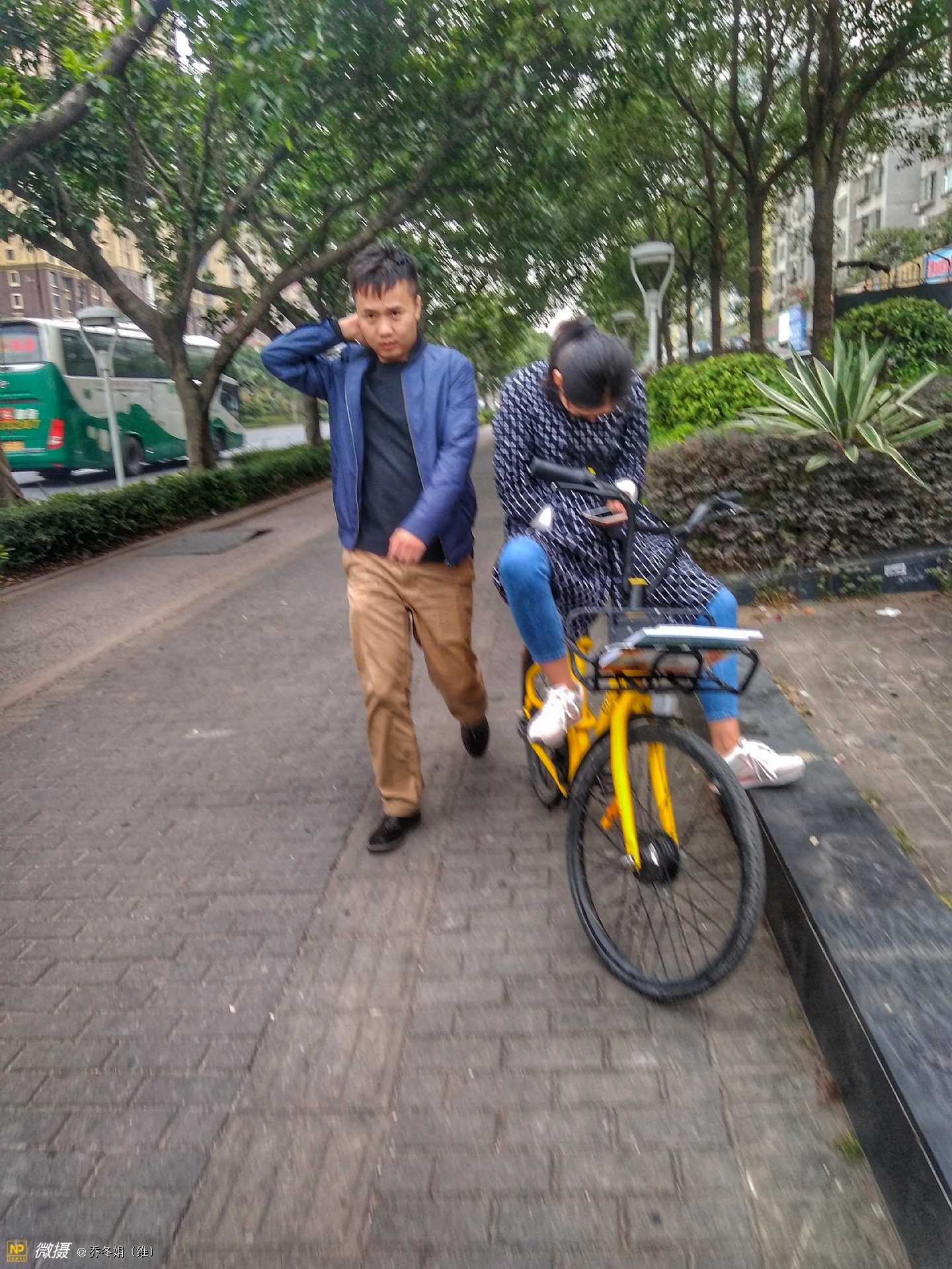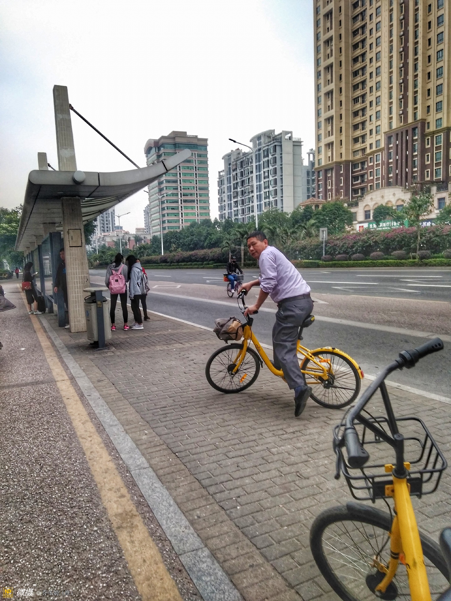离妈咪不远处还有两个人、也在看手机