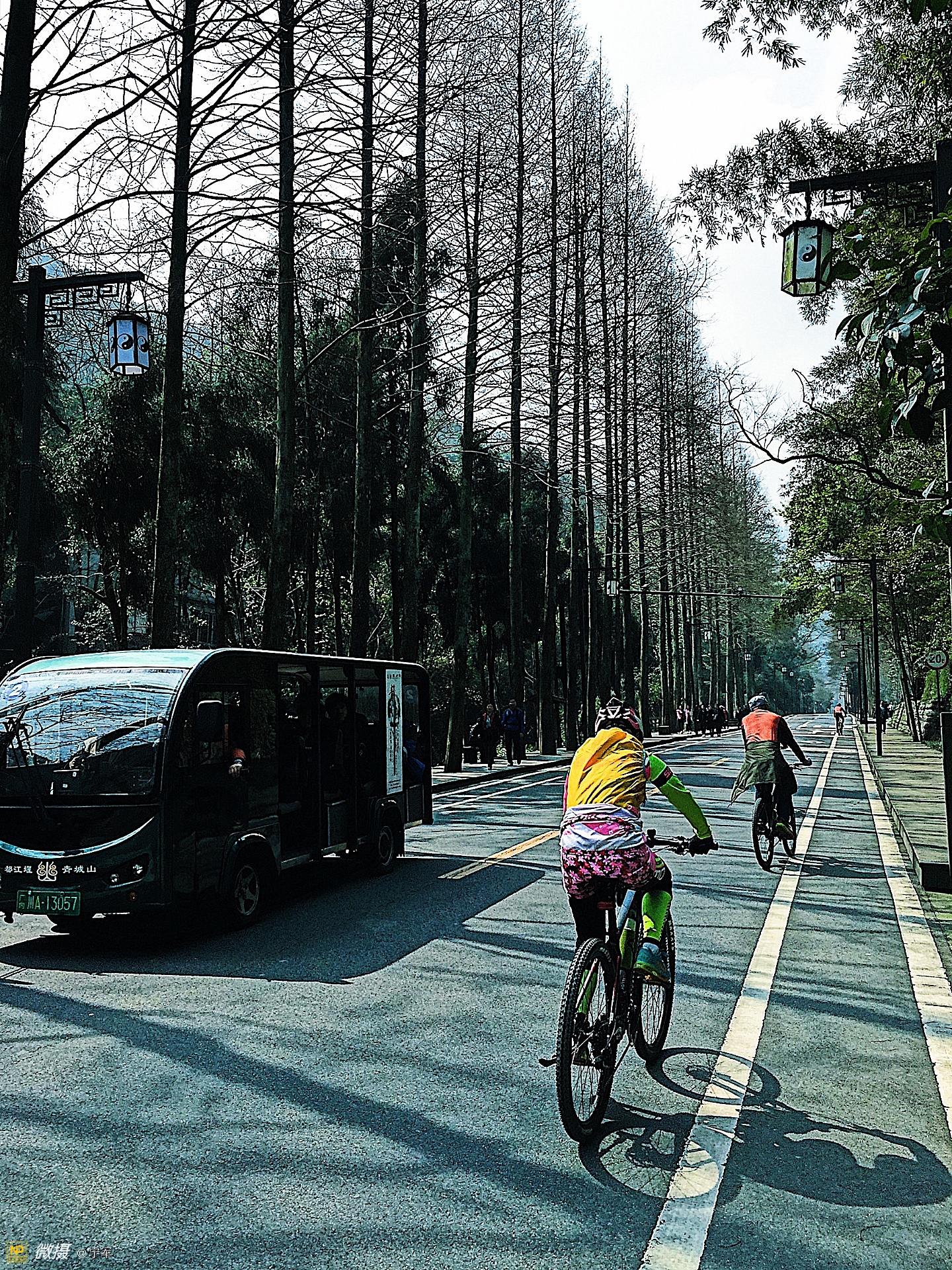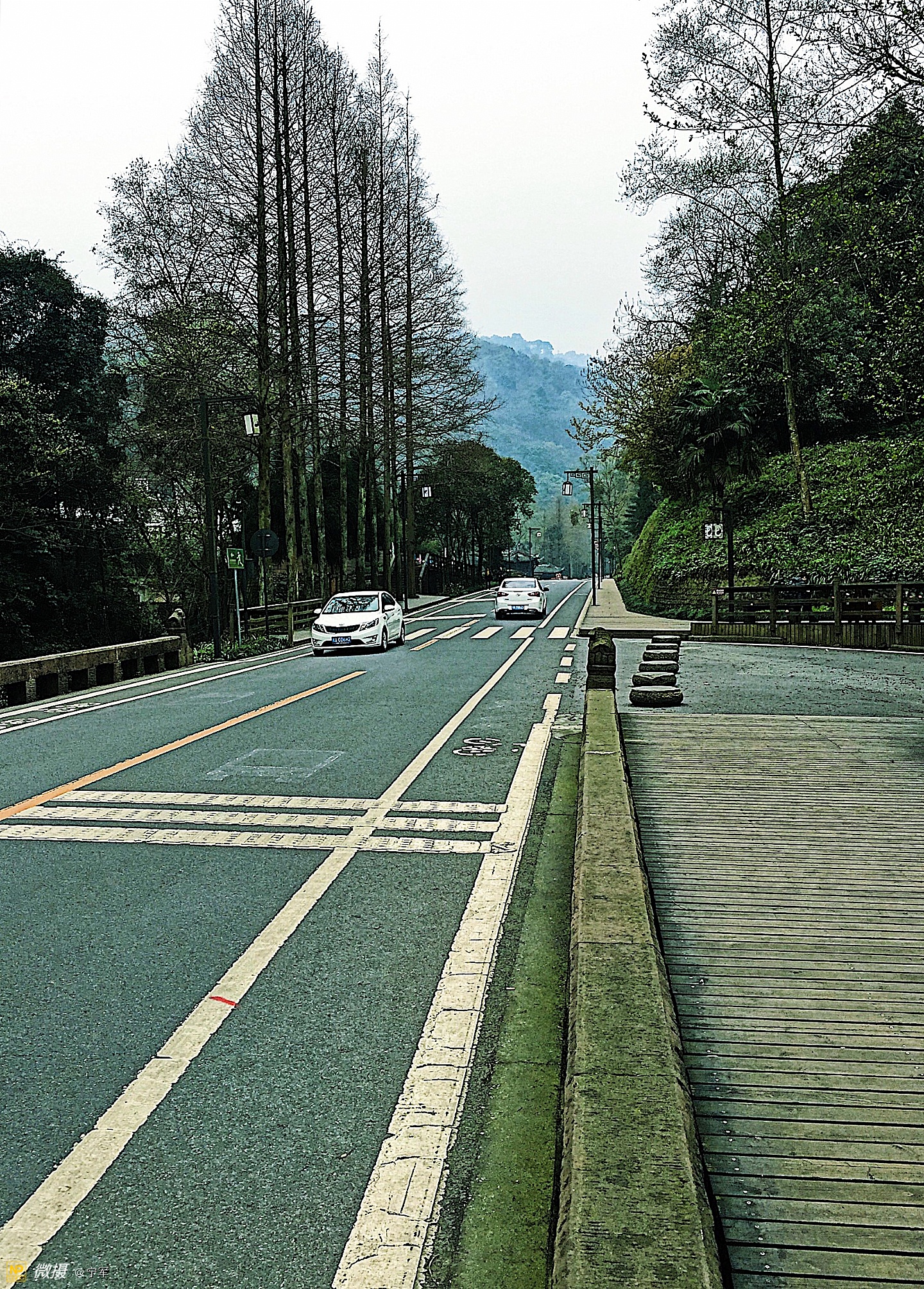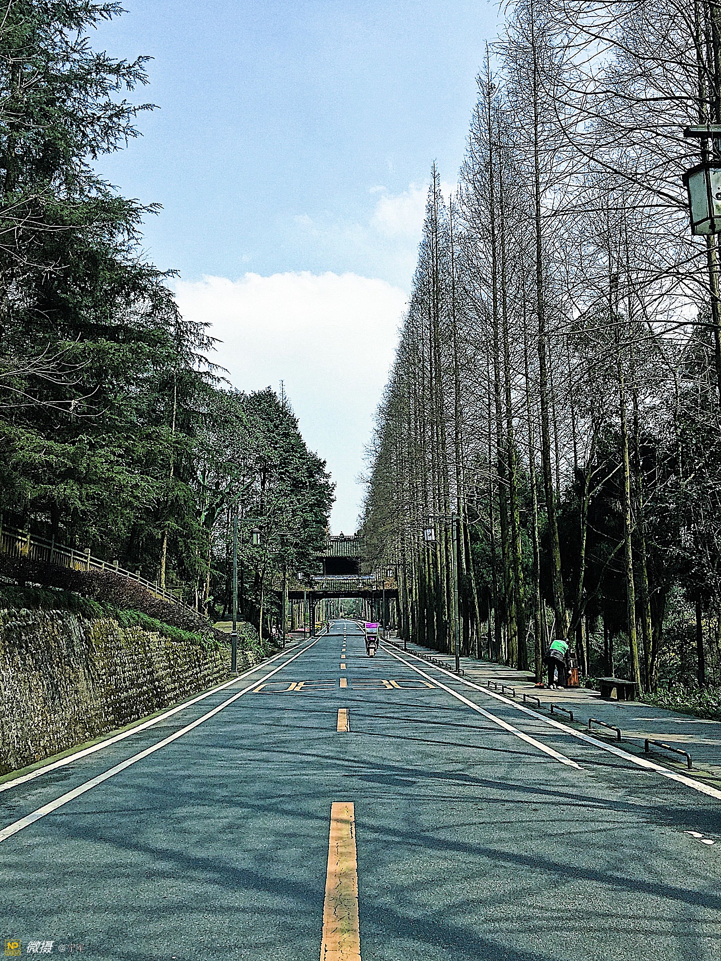 山下距售票处近2公里的路程,有电瓶车可以上去。相比较旅行的愉悦还是步行。