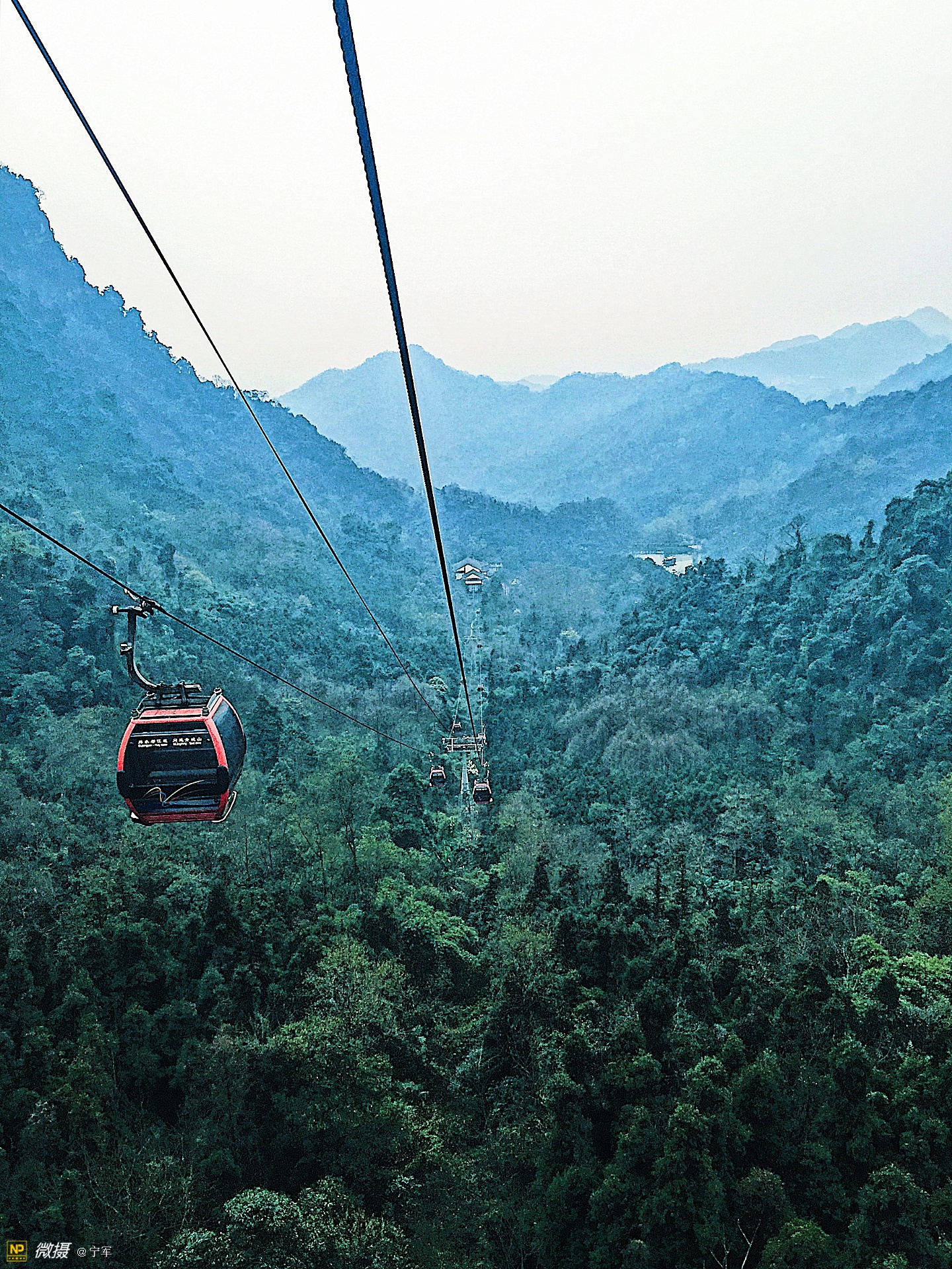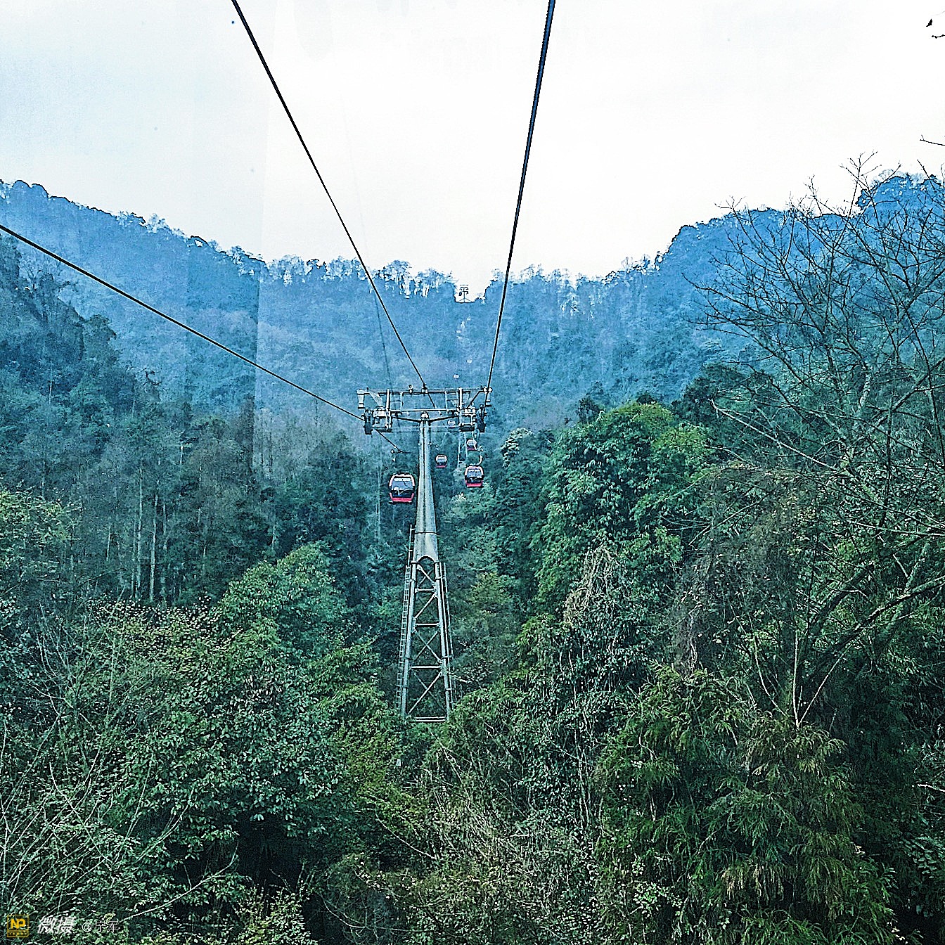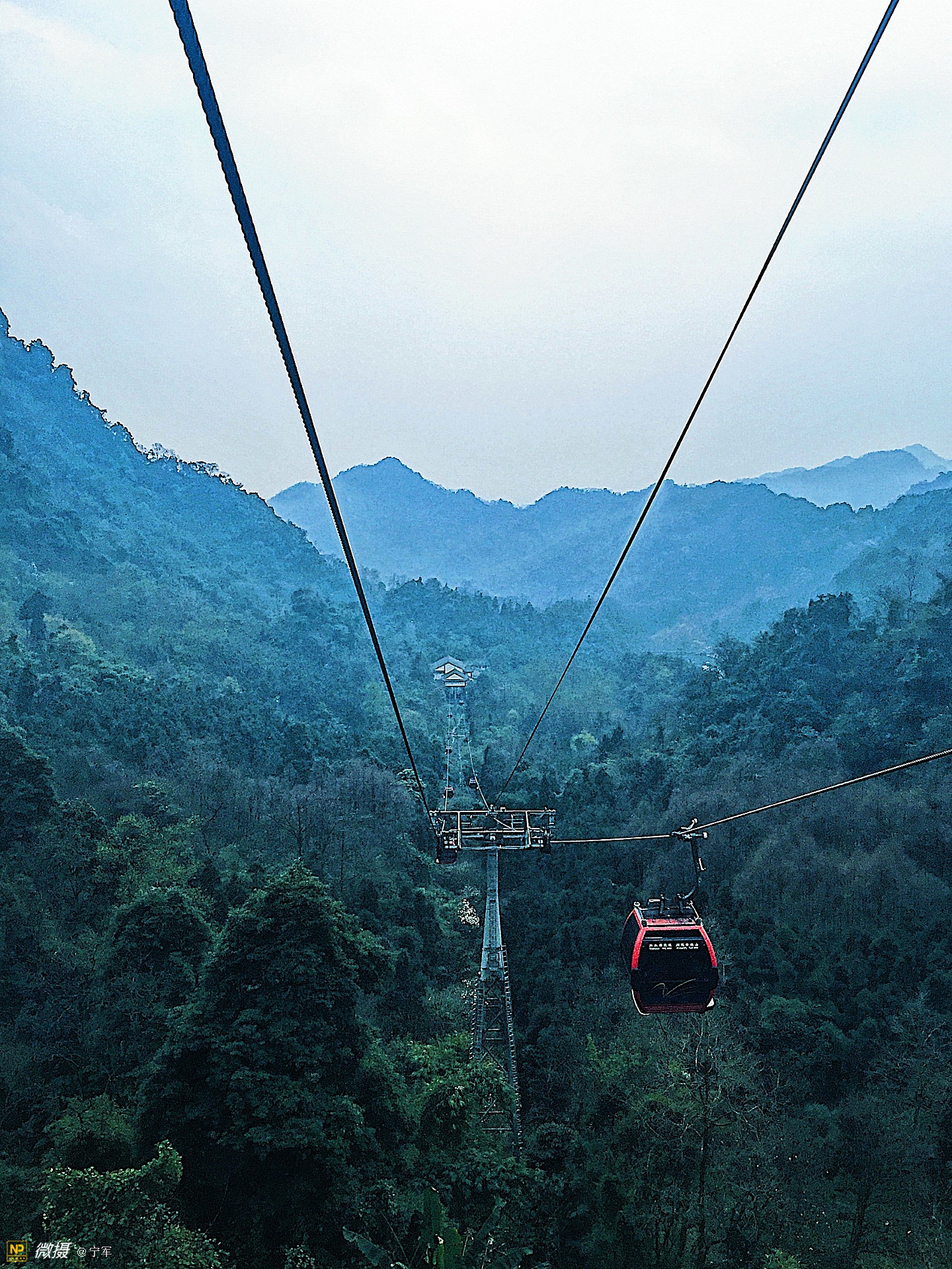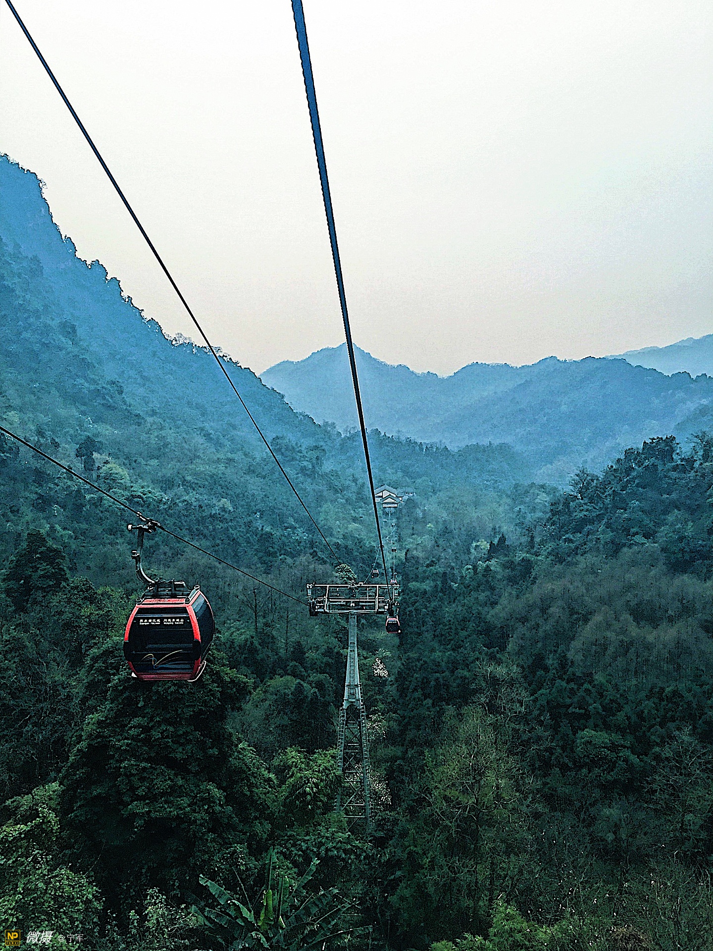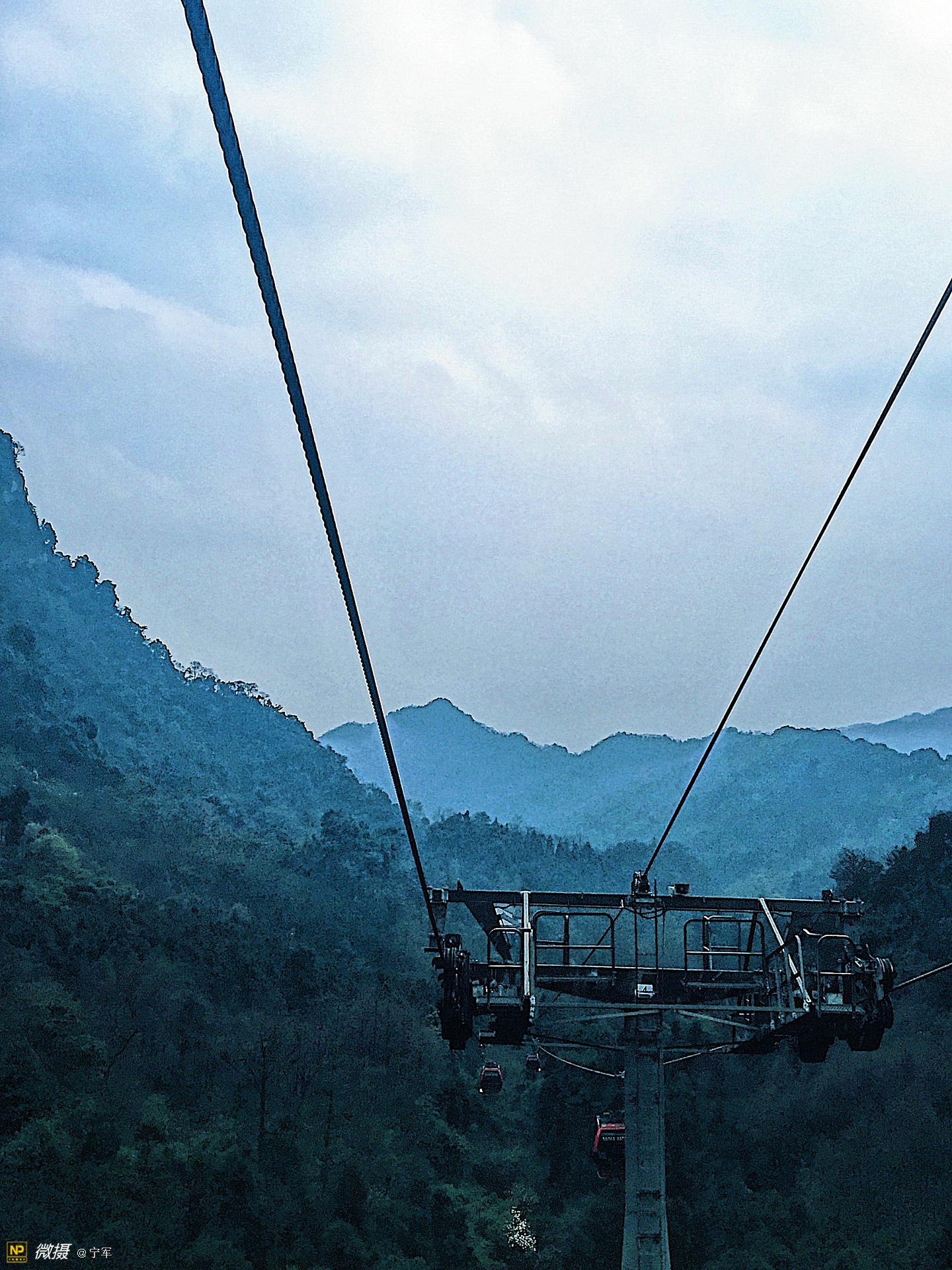 一段缆车上行。