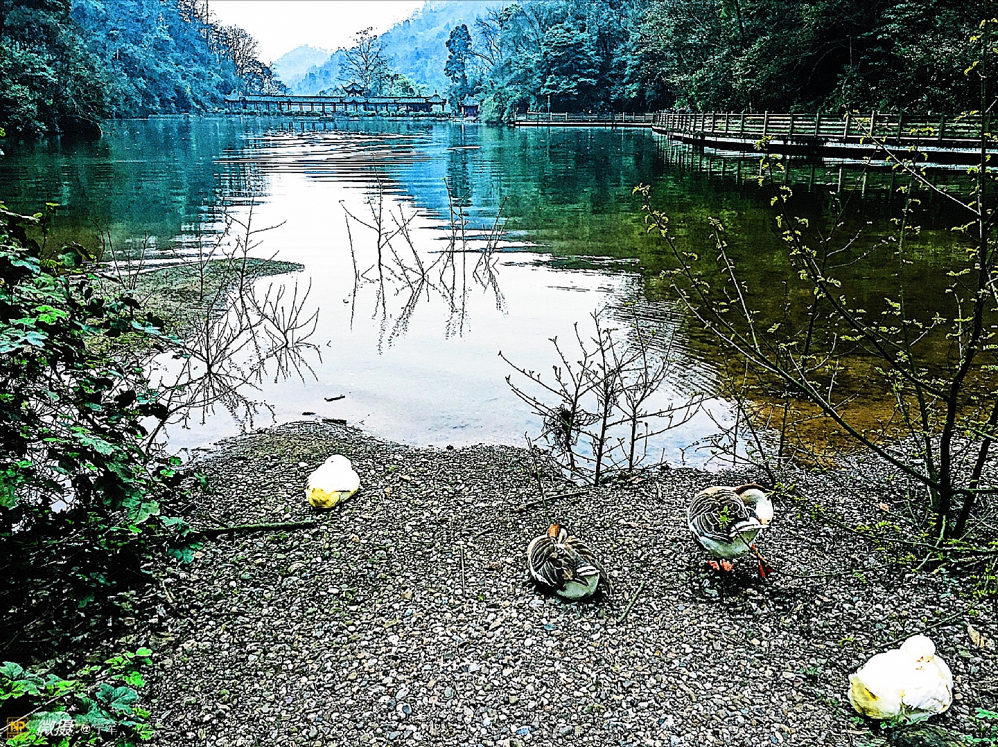 下山偶遇几只可爱的鸳鸯。