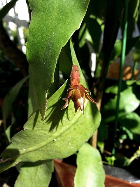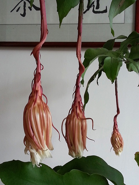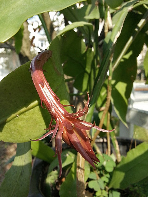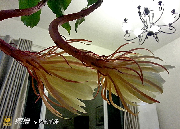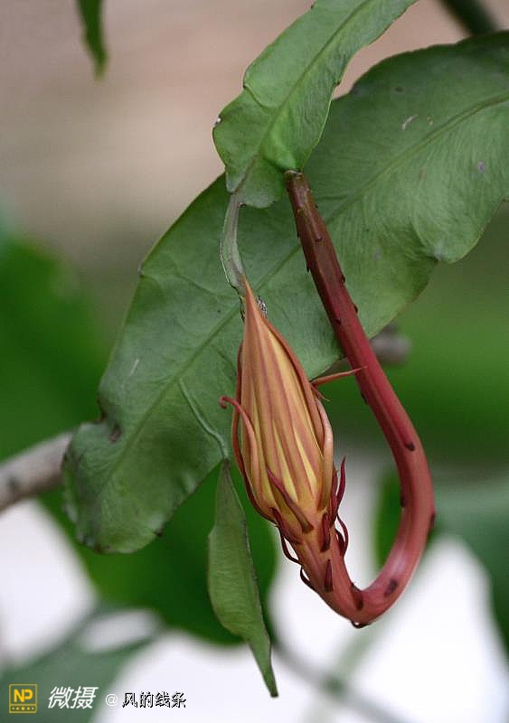 谁能想到昙花的花蕾是长在叶子上的,开始都看不出来。这个图可不是ps的