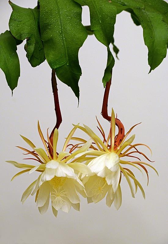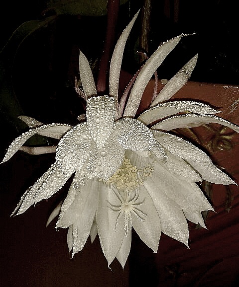 昙花一般在夏季夜晚开花,盛开为白色的花,非常美丽,花败后闭合像灯笼状,很快凋谢、枯萎。花蕾在慢慢的长大