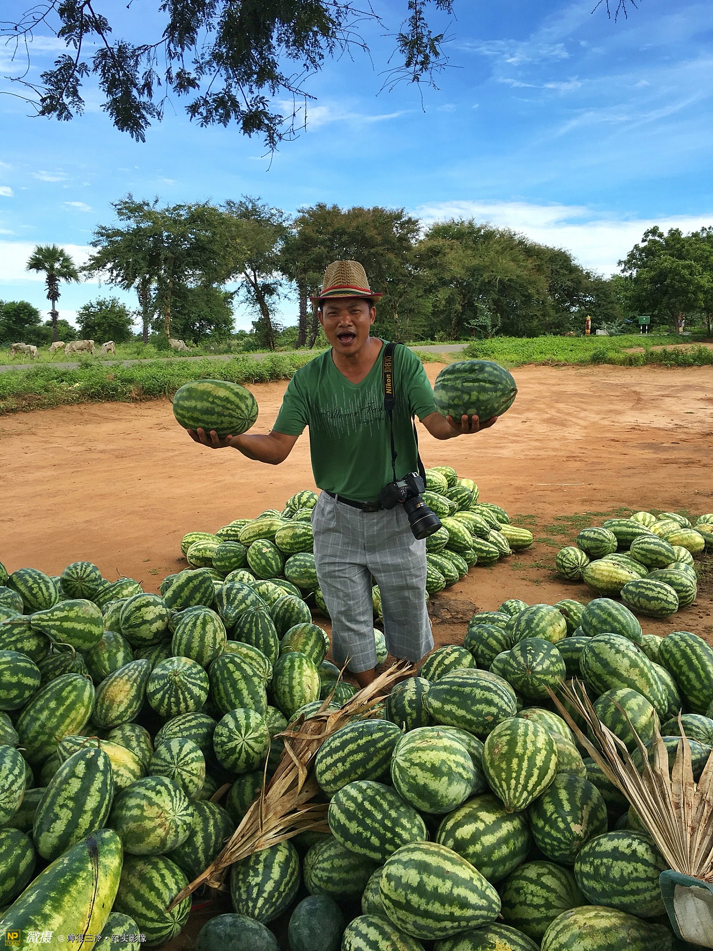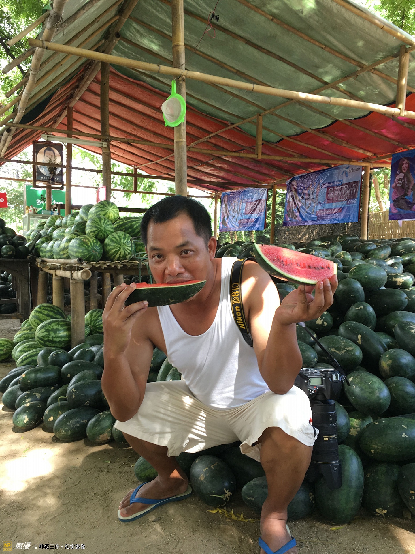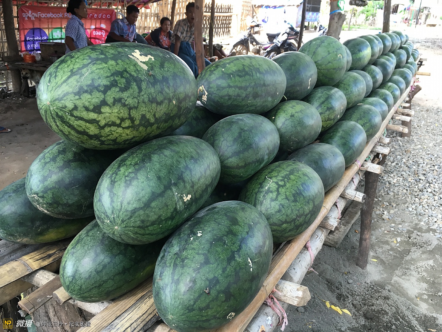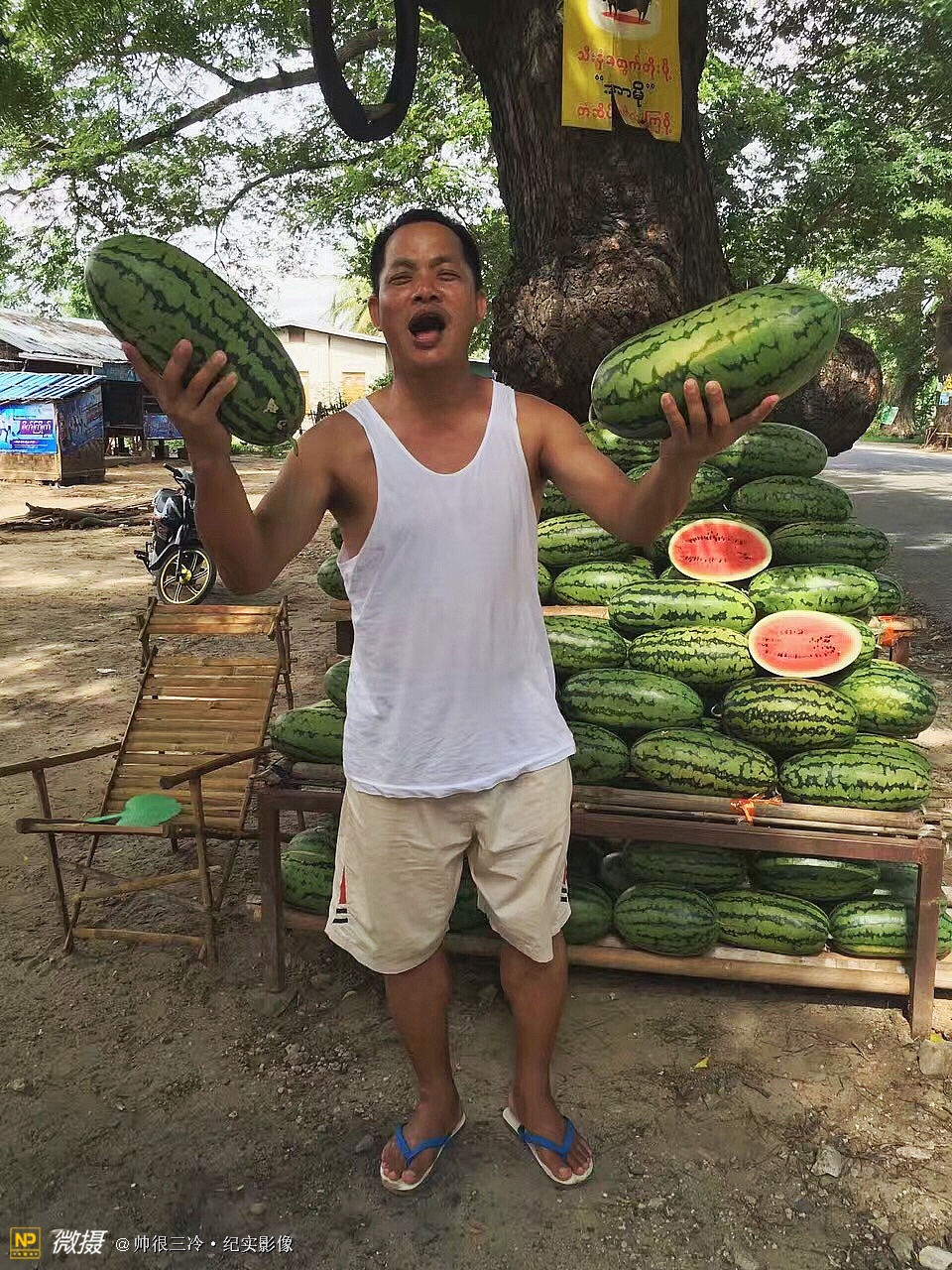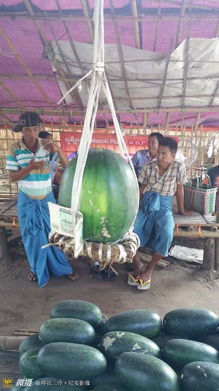 缅甸人总喜欢把西瓜吊着广告路人,1000缅币一个,很甜……