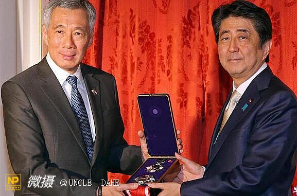 2016年9月28日,新加坡总理李显龙访问日本,傍晚从安倍晋三手中,接过日本政府追授予建国总理李光耀的勋章——“一等桐花大绶章”。安倍在嘉奖词中形容李光耀是“亚洲为现代世界带来的最伟大智者之一”。安倍称,李光耀在世时经常到日本访问,为新日两国的亲密关系奠定“良好基础”。对能够亲手把勋章颁给李光耀的儿子——李显龙总理,安倍感到尤其荣幸和雀跃。外界称这两个对中国有狼子野心的人在一起注定没有什么好事。