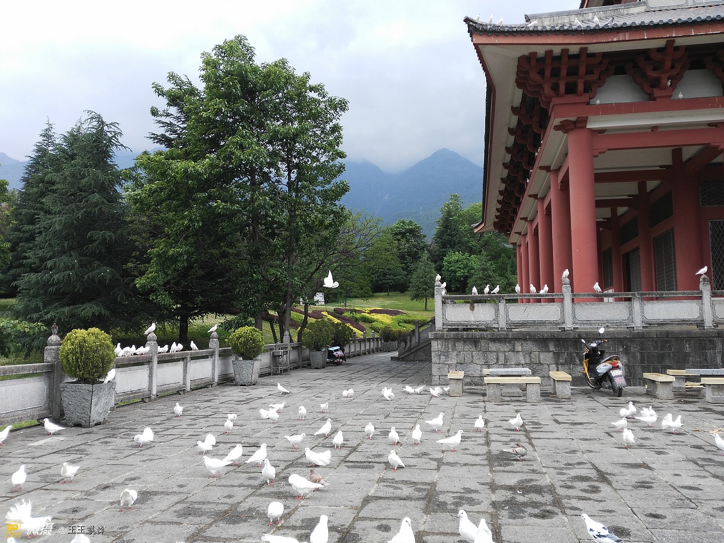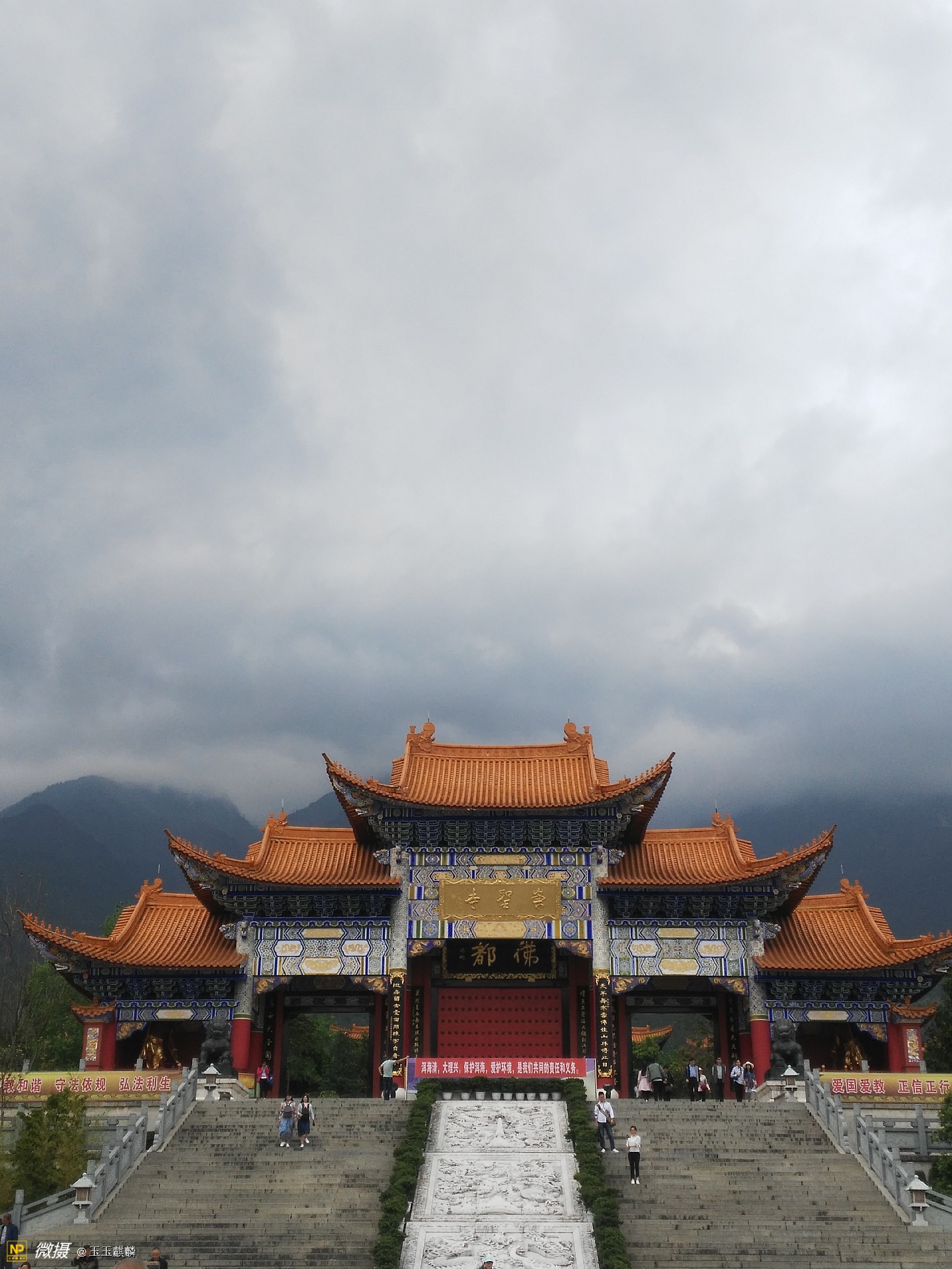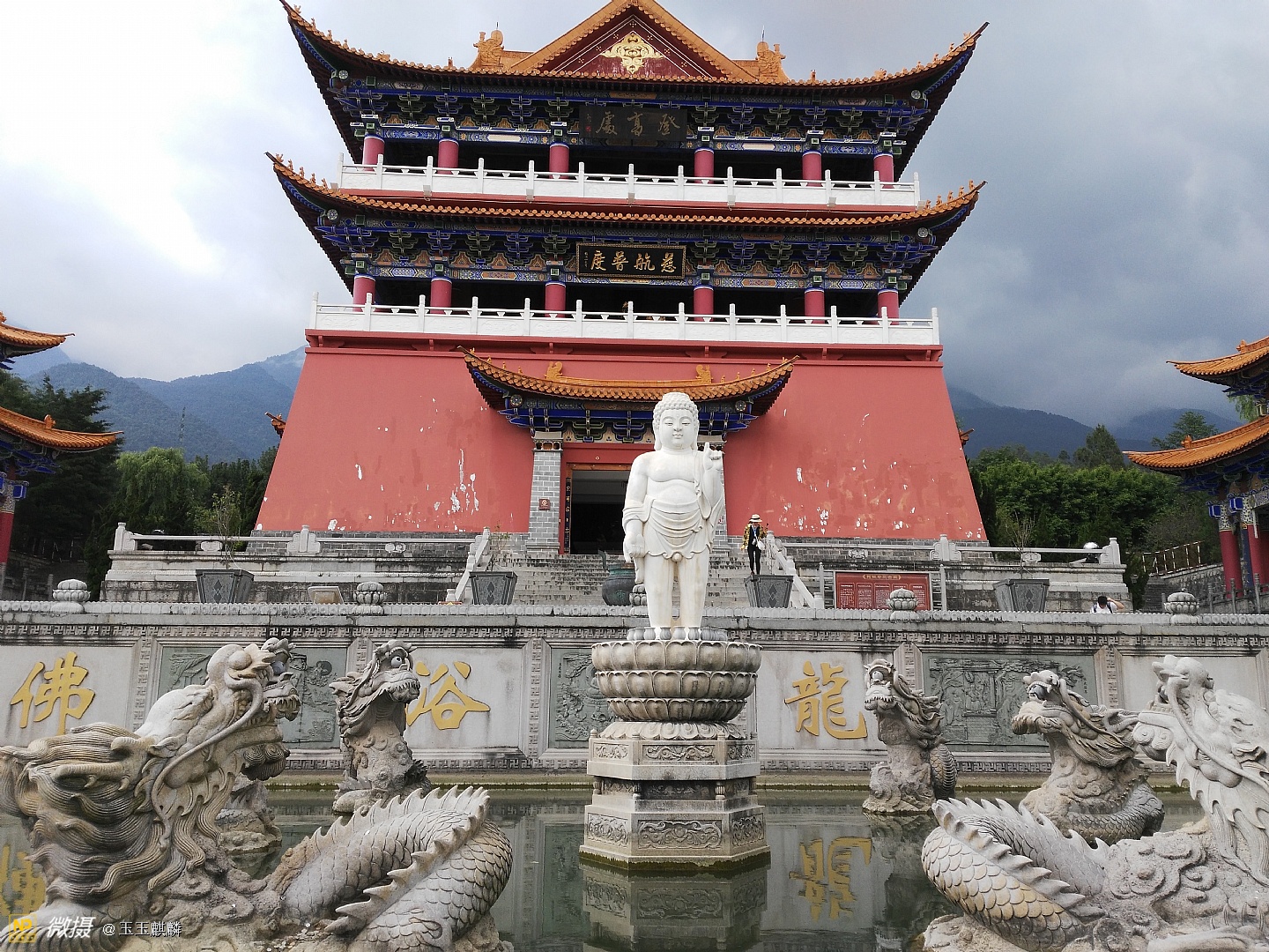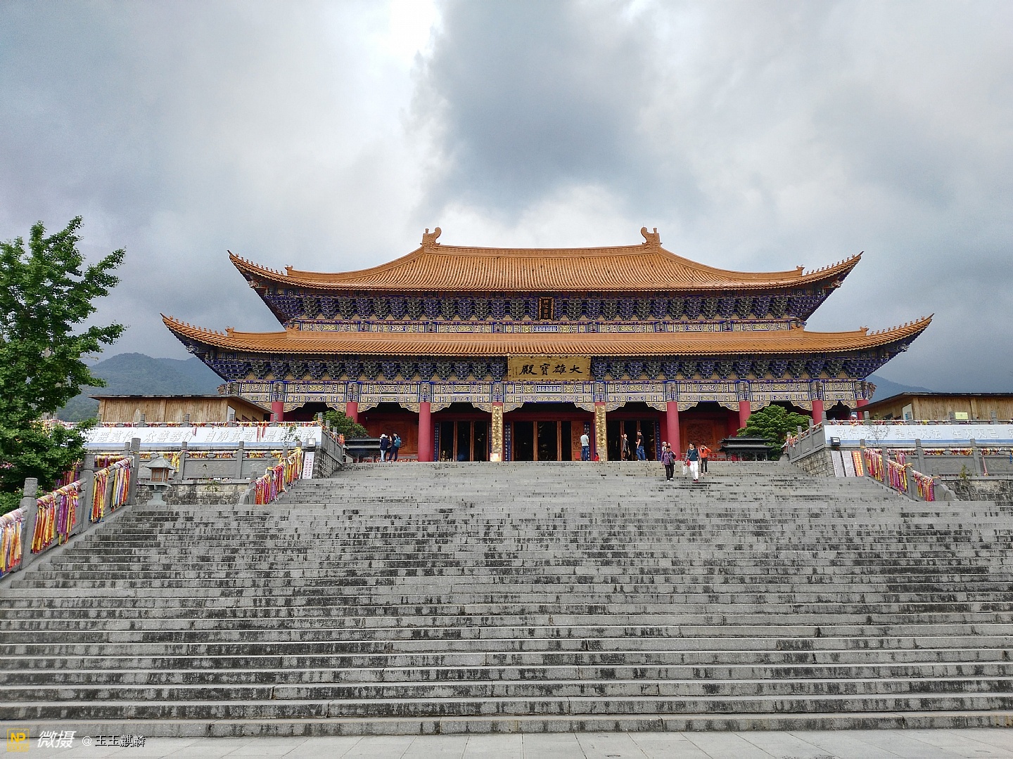 大理崇圣寺三塔位于大理以北1.5千米苍山应乐峰下,背靠苍山,面临洱海,三塔由一大二小三座佛塔组成,大塔叫千寻塔。千寻塔与南北两个小塔的距离都是70米,呈三足鼎立。远远望去,雄浑壮丽,是苍洱胜景之一。