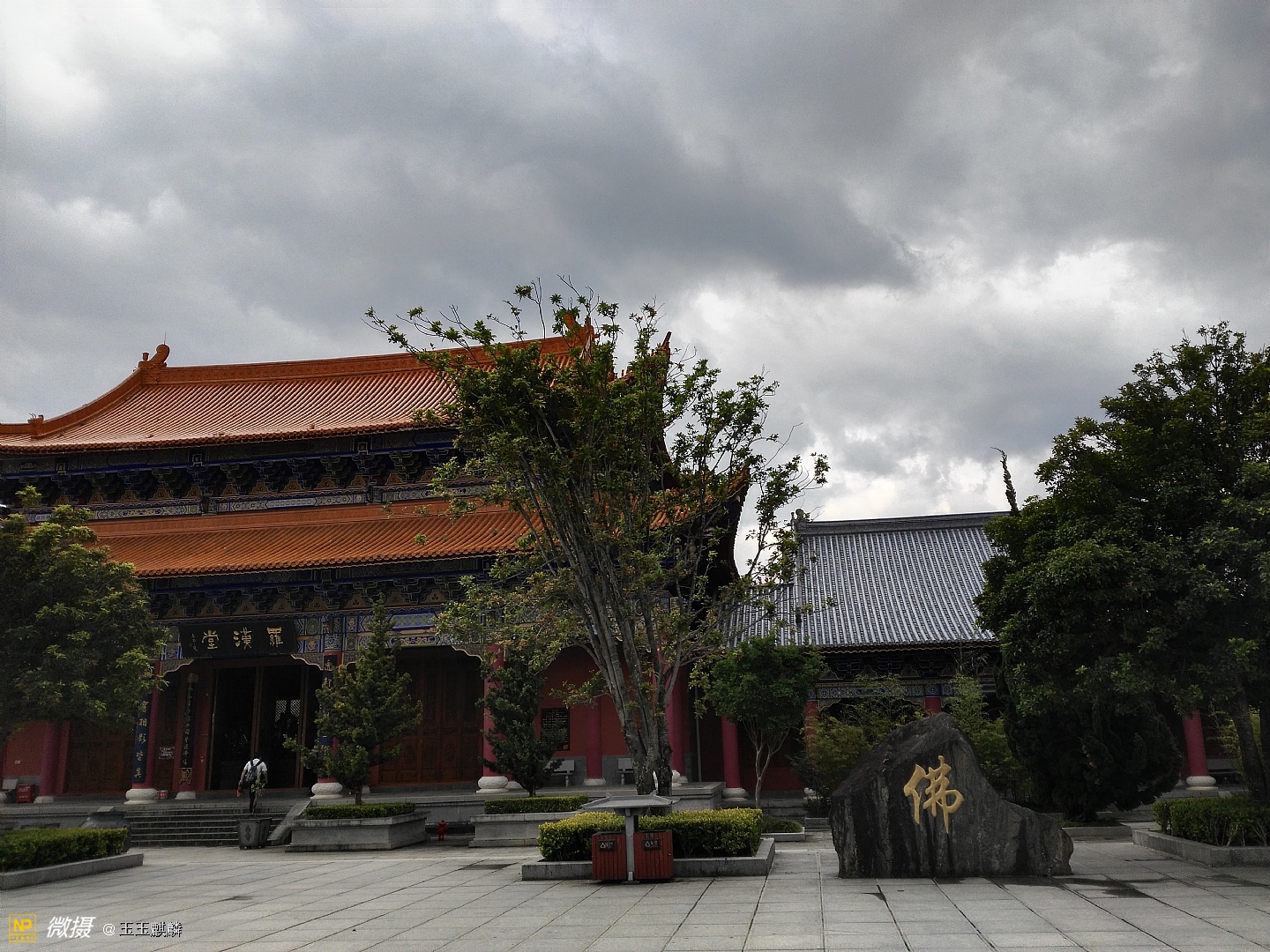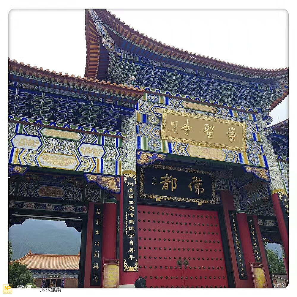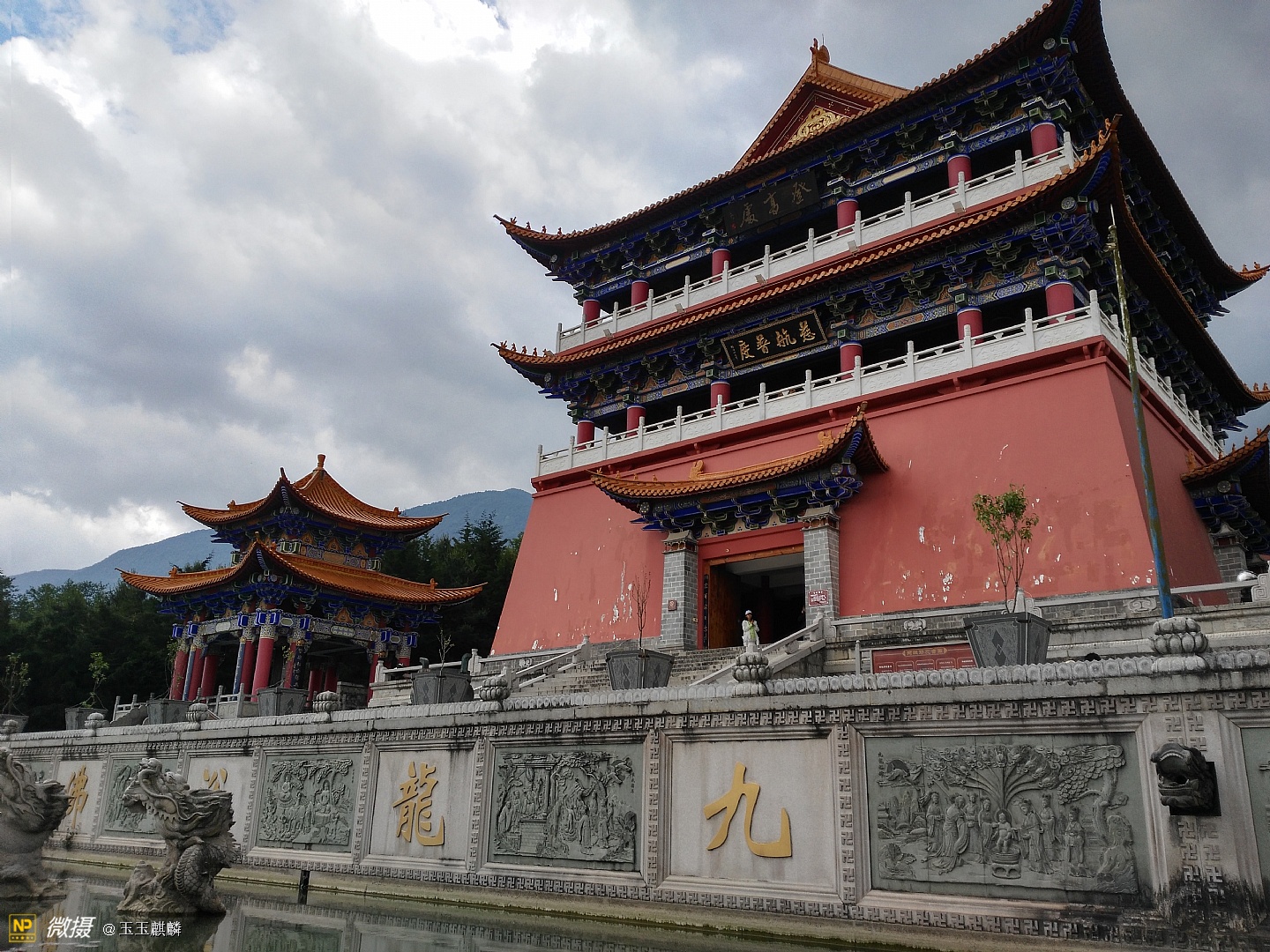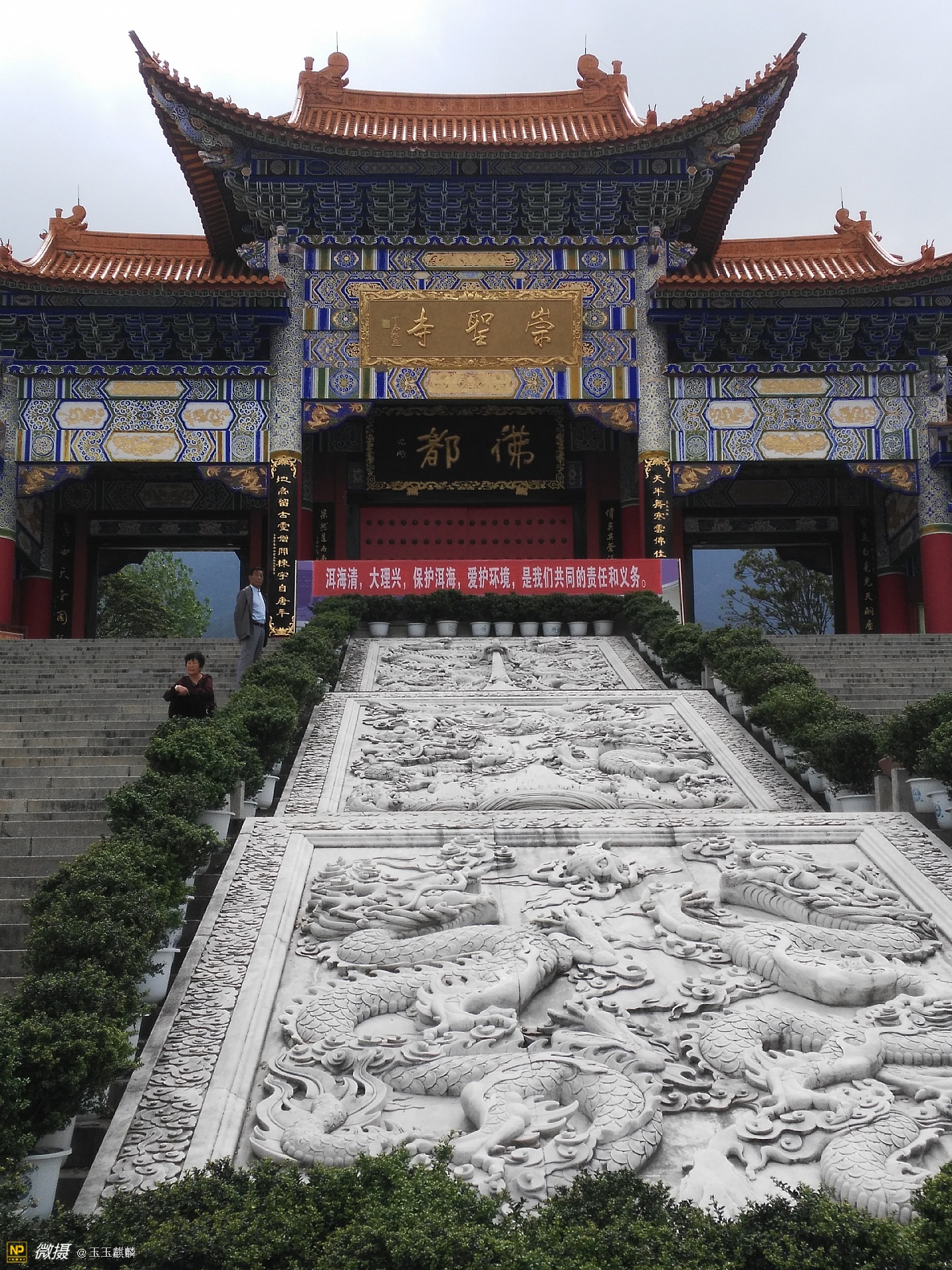 大理崇圣寺三塔位于大理以北1.5千米苍山应乐峰下,背靠苍山,面临洱海,三塔由一大二小三座佛塔组成,大塔叫千寻塔。千寻塔与南北两个小塔的距离都是70米,呈三足鼎立。远远望去,雄浑壮丽,是苍洱胜景之一。