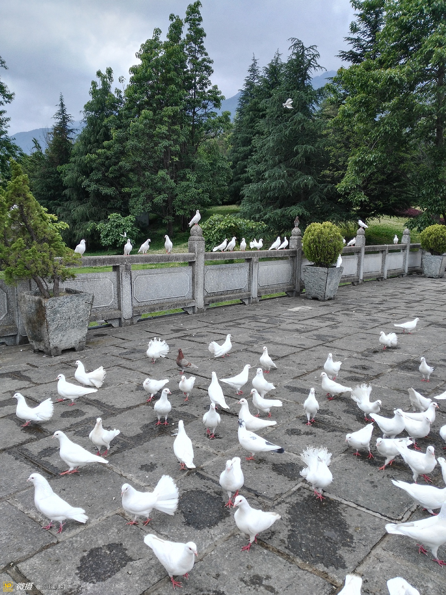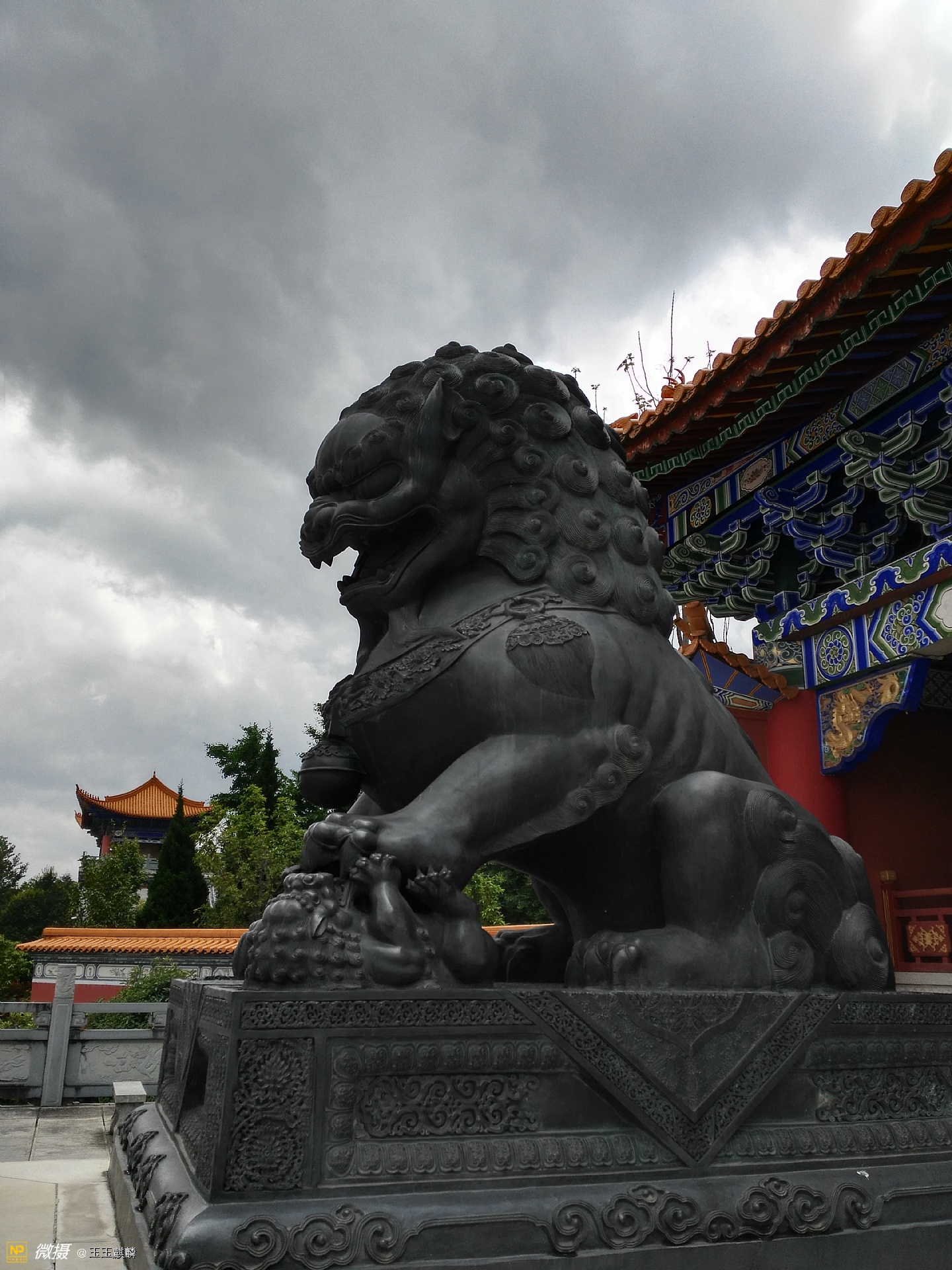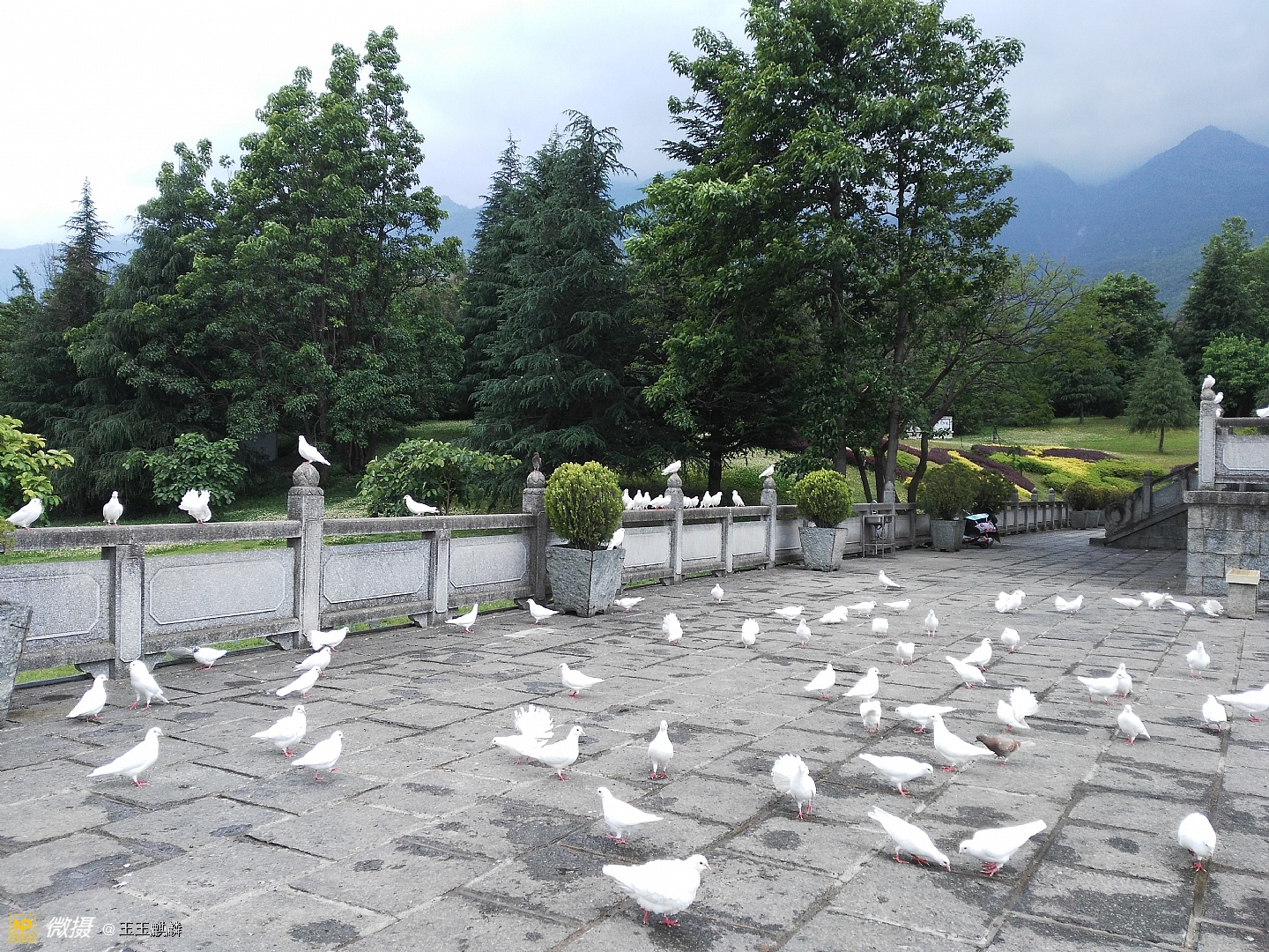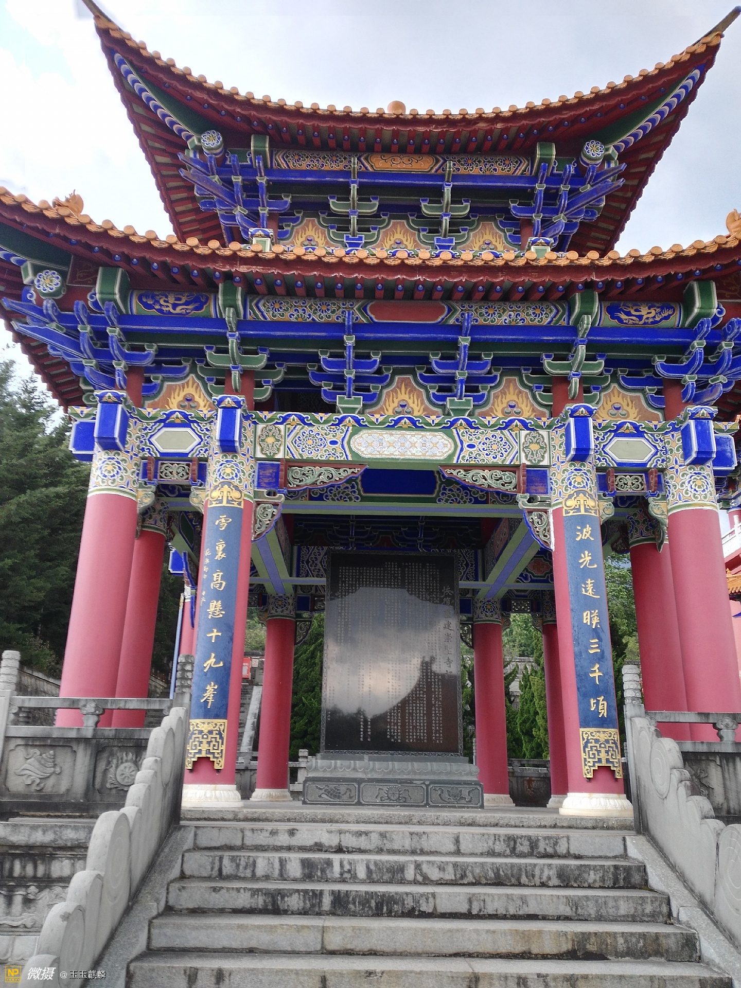 大理崇圣寺三塔位于大理以北1.5千米苍山应乐峰下,背靠苍山,面临洱海,三塔由一大二小三座佛塔组成,大塔叫千寻塔。千寻塔与南北两个小塔的距离都是70米,呈三足鼎立。远远望去,雄浑壮丽,是苍洱胜景之一。