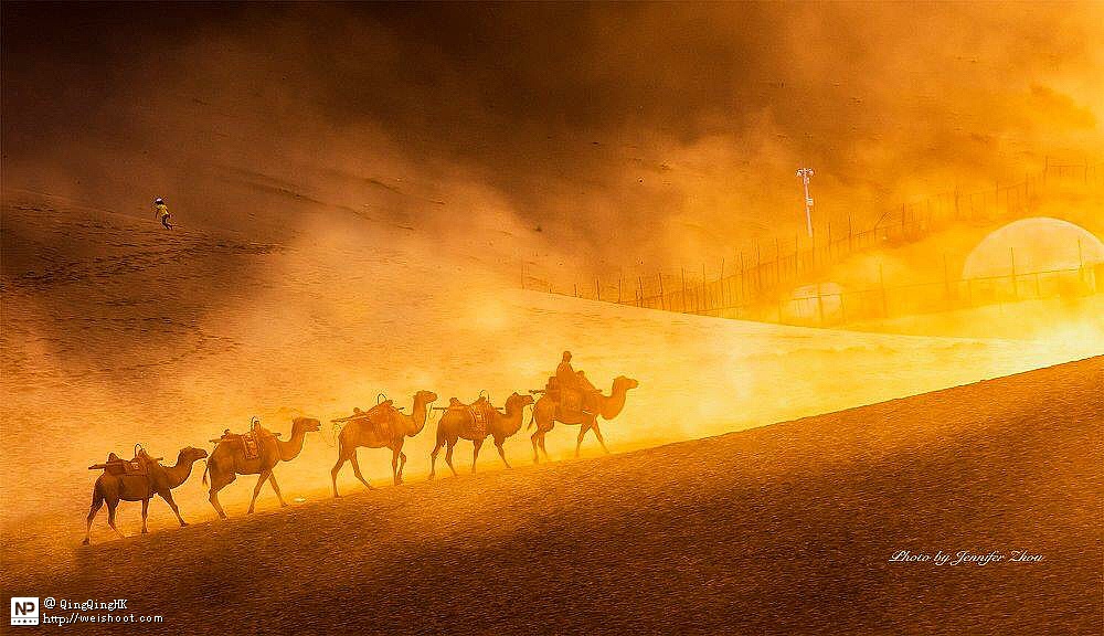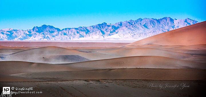 上帝划下的曲線,蒼天締造的神奇。望著斜陽划過嗚沙,岂不美哉,我手中的相機不法表達世界上最淳扑的風情,最純淨的地。