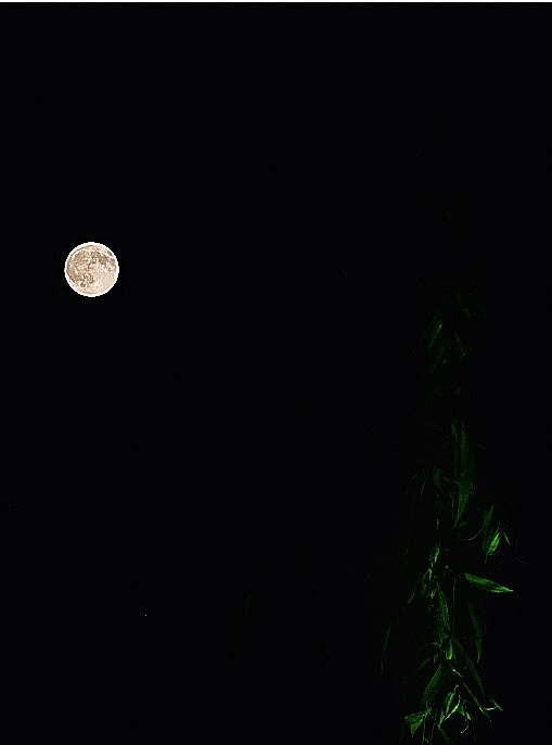 再次(情景再现),这就是今晚的离奇之事。玩完回家,兴奋地把玩电脑想看看拍的结果。准备收拾摊开的书(此书虽身边已二十七年、但没怎么深究过)而下意识瞭了一眼页面内容,这一瞭眼,发现一个十分惊奇的千年奇缘。书恰好翻开在九百年前北宋词人晁端礼的《咏月》上——词中所述就是今晚我看到的一切情景——“晚云收,淡天一片琉璃。烂银盘、来从海底,皓色千里澄辉。莹无尘、素娥淡泞,静可数、丹桂参差。……——”,令人惊叹不已,那一页到底是怎么翻开的?景象如此吻合!……此情此景也应了李白的《把酒问月》中的“今人不见古时月,今月曾经照古人。”