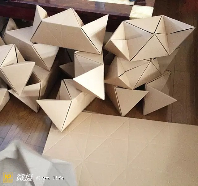 △2015/2016 上海书展 讲座嘉宾梁海声《空间魔术师·梁海声的折纸艺术》用简单形体的思维发散来引导关注,折纸从平面艺术变成了空间艺术,是一堂脑力激荡的启蒙立体几何课。还能透过多人的作品组合起来,才能华丽变身为一座“变形金刚”。
