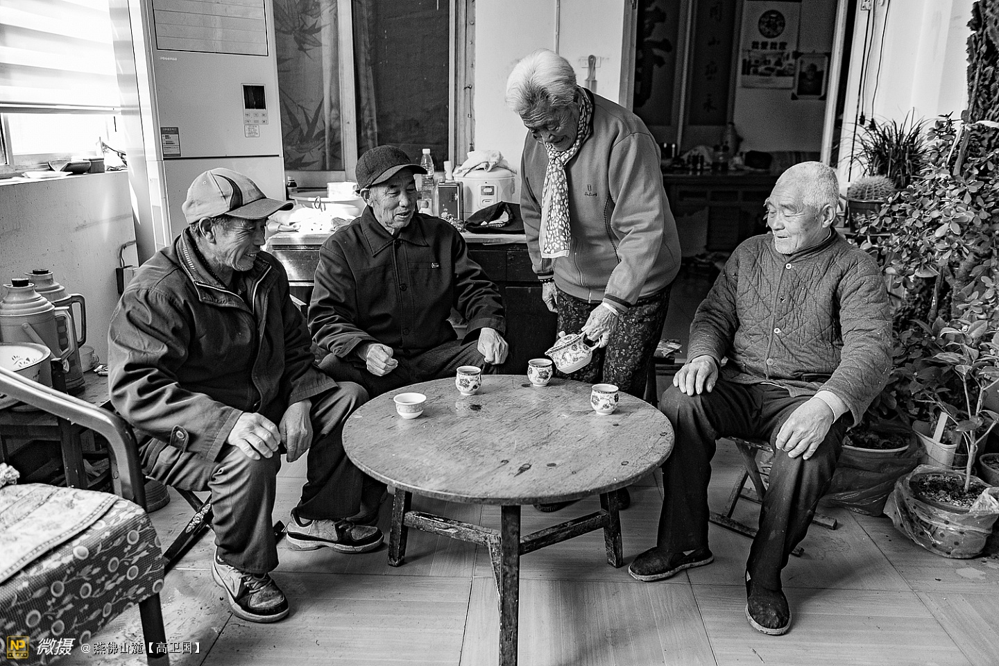 老街坊邻居在一起唠嗑,喝茶