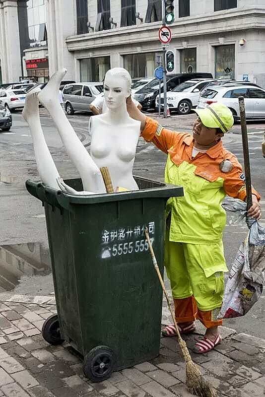 美人变垃圾 王福春:世上没有长生不老的人,也没有一件东西长存。来是自然,走是必然。了解生命,热爱生命的人才幸福。希望有一天,垃圾桶也会下岗。