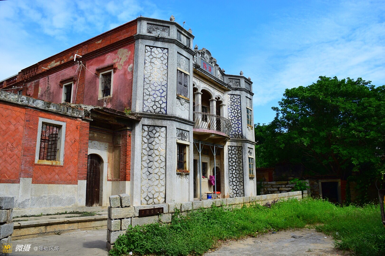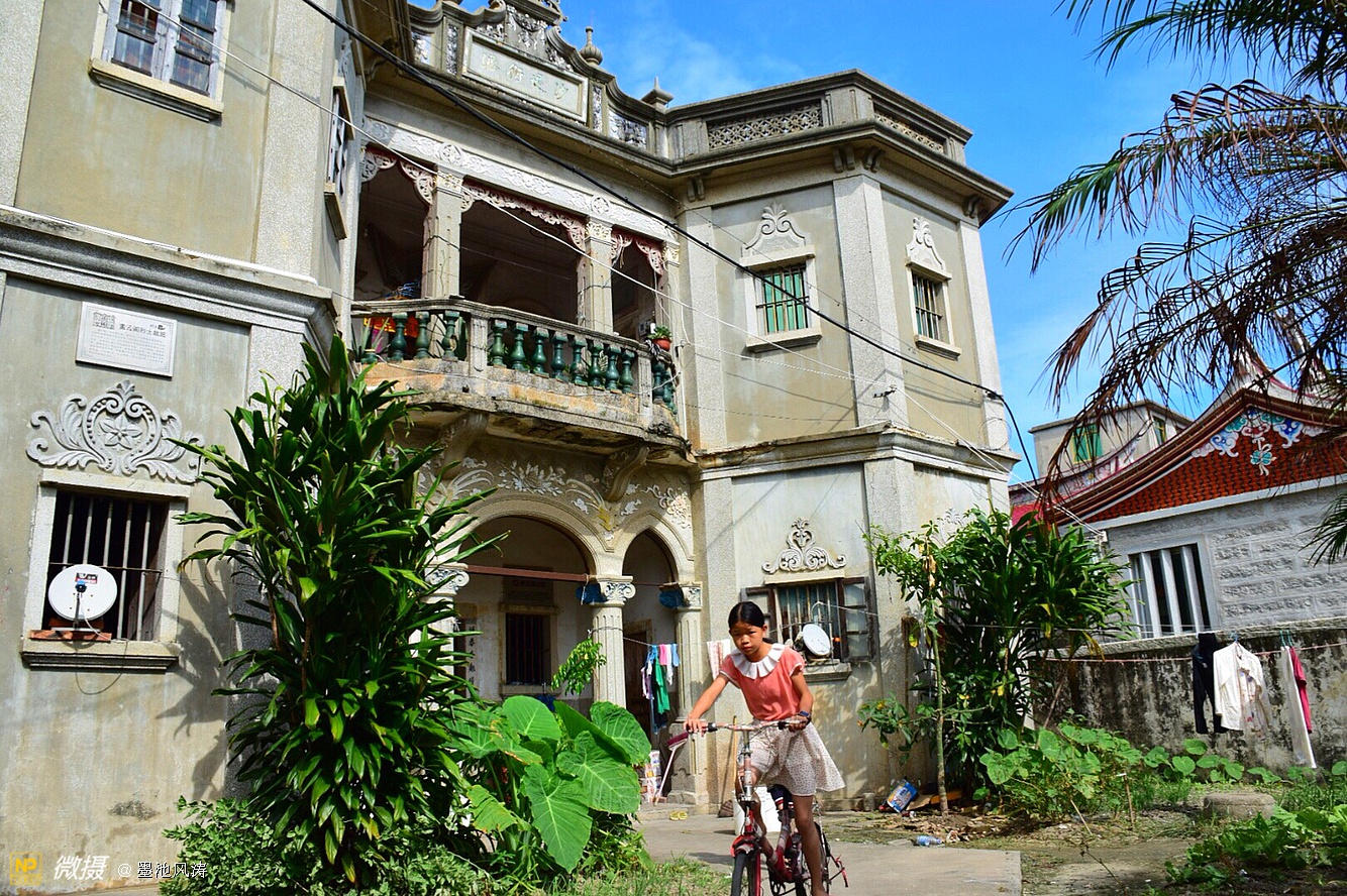 济阳番仔楼,这是一座欧式感十足的番仔楼,立面印刻几何图案统一有序,让人印象深刻,门拱精美,造型独特,而闽南风格的灰塑绘满山墙,犹如一座城。