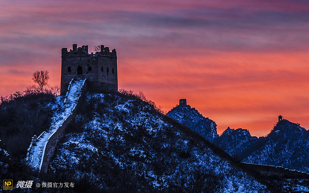 四季金山岭长城国际摄影大赛【金山岭之冬】优秀奖作品:《金山日落》 作者:浩瀚星空_3145
