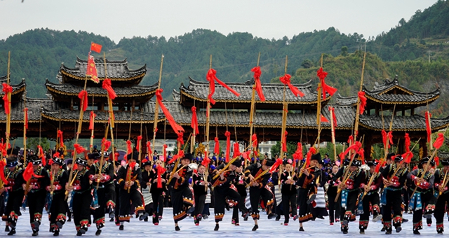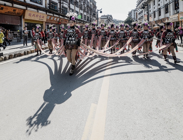 D11、(11月1日)参加一年一度的苗族国家级非物质文化遗产巡游活动,拍摄苗族各支系盛装巡游及展示,拍摄盛大的民族歌舞展演,享受视觉与心灵的饕餮盛宴。巡游的队伍,边歌边舞,你可领会到苗族飞歌的高亢嘹亮,古歌的雄壮苍凉,情歌的声声缠绕。跳铜鼓、吹芦笙、木鼓舞、锦鸡舞……苗家人击掌呼号、双臂舞动,在轻盈变幻的舞步中,传递着对丰收的喜悦,对风调雨顺的期盼。在现场感受雷山苗年的那场盛世狂欢。当日不含午餐,大型活动无法集中,敬请谅解。