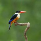 双角犀鸟:世界上“最钟情的鸟” 今年四月初,我和几名鸟友相约去云南盈江拍鸟,经昆明、腾冲飞抵盈江,乘座鸟导接车,行车六小时,终于到达 “洪崩河宾馆”。名为宾馆,实际就是招待所的条件。但为了拍到向往的名鸟,拍鸟人出门拍鸟是不太在意吃住条件的。红崩河与缅甸隔河相望。这次去拍的目标鸟很多:三种犀鸟、长尾阔嘴鸟、黑、白娴等。当然首要“目标鸟”是犀鸟。中国人习惯用鸳鸯表达爱情,实际上鸳鸯只是暂时性配偶,而真正感情专一的鸟类,非犀鸟莫属。它们一旦相爱就相伴一生。一对犀鸟,如果有一只意外死去,另一只绝不会苟且偷生或另觅新欢,它会不停地哀鸣,而且不会再吃任何东西,很快就会着在忧伤中绝食而亡。因此在很多国家,犀鸟都被当作贞节和爱情的象征,被称为“钟情鸟”。双角犀鸟属于犀鸟中的一种,主要栖息于海拔1500米以下的低山和山脚平原常绿阔叶林,尤其喜欢靠近湍急溪流的林中沟谷地带。分布于中国、印度、缅甸、泰国、中南半岛、马来西亚和印度尼西亚,属于国家二级保护动物。双角犀鸟栖息于常绿阔叶林中,繁殖期间常单独活动,非繁殖期则喜成群,常5、6只至数十只结群活动。主要吃各种野果,也食蛇、蜥蜴、大型昆虫、鼠类和谷物。繁殖习性似冠斑犀鸟,主要在树上觅食,有时也到地上觅食。双角犀鸟的大嘴看起来很笨重,实际上它既是工具又是武器,使用起来却非常灵巧,可以轻松自如地采摘浆果,轻而易举地剥开坚果,还能得心应手地捕捉鼠类和昆虫。双角犀鸟是中国所产犀鸟中体形最大的一种,体长119~128厘米,翼展146~160厘米,重量2.15~4千克。双角犀鸟最显著的特点在于它们头上的“盔甲”,盔突的上面微凹,前缘形成两个角状突起,如同犀牛鼻子上的大角,又好像古代武士的头盔,非常威武,因此得名双角犀鸟。双角犀鸟体羽主要为黑白两色。上体及胸皆黑色。翅黑色,飞羽基部和先端白色。有趣的是雄鸟眼睛内的虹膜为深红色,雌鸟的却是白色,在它们的眼睛上还生有粗长的睫毛,这是其他鸟类所少见的。 每到果实成熟的季节,犀鸟群大多固定在一个地点取食,直到食物吃尽才更换新的取食地点。它们也常常成群飞行,一个接一个地前后鱼贯前进。飞翔时速度不快,姿态也很奇特,头、颈伸得很直,双翅平展,作几次上下鼓动后,便靠滑翔前进,然后再鼓动几下翅膀,如此反复进行,如同摇撸一般。由于翼下的覆羽未能掩蔽飞羽的基部,所以在飞行时飞羽之间会发出很大的声响。它在鸣叫时,颈部垂直向上,嘴指向天空,发出粗厉、响亮的叫声。日落时,便飞到为密集的叶簇所遮蔽的大树顶上过夜。每年的3-6月是双角犀鸟的繁殖期,巢大多是选择森林中的菩提树等高大乔木上的天然树洞,对其进行加工和修整而成。这种树洞又大又宽,离地面也很高。每窝产卵通常为2枚,少数为1枚或3枚。雌鸟承担孵卵,孵化期大约为31天,雏鸟为晚成性。雌鸟在孵卵期间用自己吃剩下的食物残渣和粪便混合后堆积在洞口,将洞口封闭缩小,同时雄鸟也在外面用它的大嘴衔泥,并混合果实、种子和木屑将洞口封闭,仅留一个小孔让雌鸟嘴端能够伸出,颇有点“金屋藏娇”的意味。雌鸟在洞中孵卵、育雏,既安全,又舒适,不怕风吹日晒,还有利于保护雏鸟免遭蛇既安全,又舒适,不怕风吹日晒,还有利于保护雏鸟免遭蛇类、猴类和猛禽等的威胁和侵害。雌鸟和雏鸟排便时,把肛门对准洞口,直接喷射出去,雌鸟还不时地用嘴将洞内的污物清除出洞口,以保持洞内的清洁。雌鸟在雏鸟孵出后还要进行一次彻底的换羽,这时几乎没有飞翔的能力,换羽之后,便将洞口的封闭物啄破,与长大的雏鸟一起飞出来。整个孵卵、育雏期间的食物,全由雄鸟供给。为了使“娇妻爱子”们都能得到充足的食物,雄鸟必须一次又一次地飞到外面觅食。这时,雄鸟还会将自己砂胃中的一层壁膜脱落下来,吐出体外,形成一个薄囊,它就用这个薄囊临时贮存觅到的浆果、坚果等食物,带回巢中。如果雌鸟没有伸出嘴来迎候,雄鸟便用嘴轻轻地敲打树干,通知雌鸟取食。因此,到繁殖期结束的时候雌鸟和雏鸟都长得很肥胖,而雄鸟却累得精疲力尽,瘦骨嶙峋。 在红崩河拍鸟住了十几天。走后不久,后续鸟友传来消息,一只雄鸟,为捕食累死在了路边,好心的村民掩埋了辛勤的雄鸟,饥饿难耐的雌鸟,啄破洞口,弃巢而去。巢中的小生命无“父母”照料一定也“腰折”于树的巢穴内。真是令人心酸,自然界的生物生存是多么不易呀!我们不要伤害野生动物,人人自觉保护可爱的生灵不受伤害,保护生态环境不受破坏,保护我们美丽的家园,是我们每个公民应尽的责任和义务!