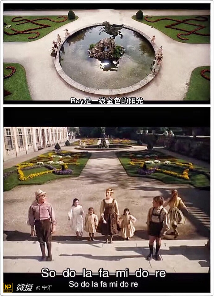 米拉贝尔花园和米拉贝尔宫殿(Mirabell Gardens and Mirabell Palace):玛丽亚和孩子们唱'Do-Re-Mi'的地方.这座17世纪的宫殿旁还有一座飞马雕像喷泉(Pegasus)以及通往玫瑰山的台阶。它们都是电影场景的一部分。电影中孩子们演唱《Do-Re-Mi》的时候,镜头画面出现萨尔斯堡的多个地点,而结束前的最长最多的镜头是玛丽亚和孩子们围着花园里的喷泉边唱边跳。