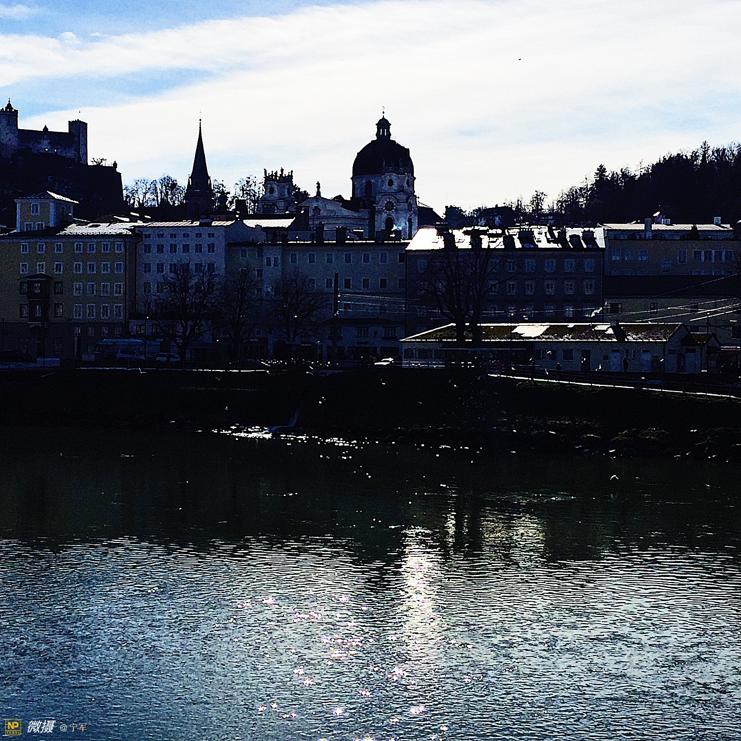 夜晚到达奥地利的旅游城市萨尔茨堡。