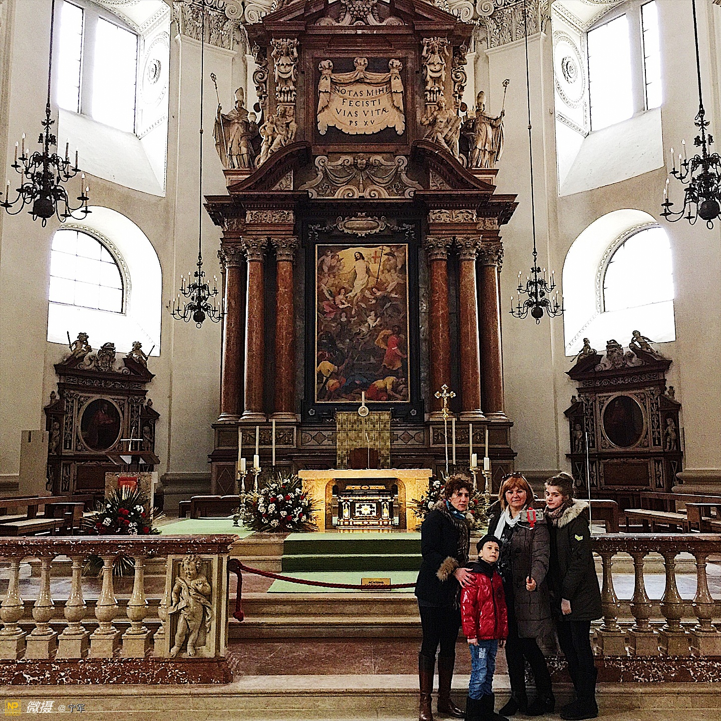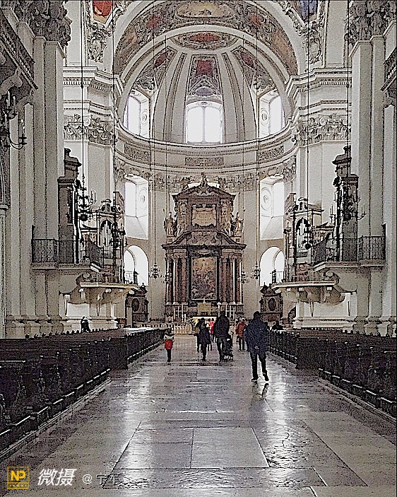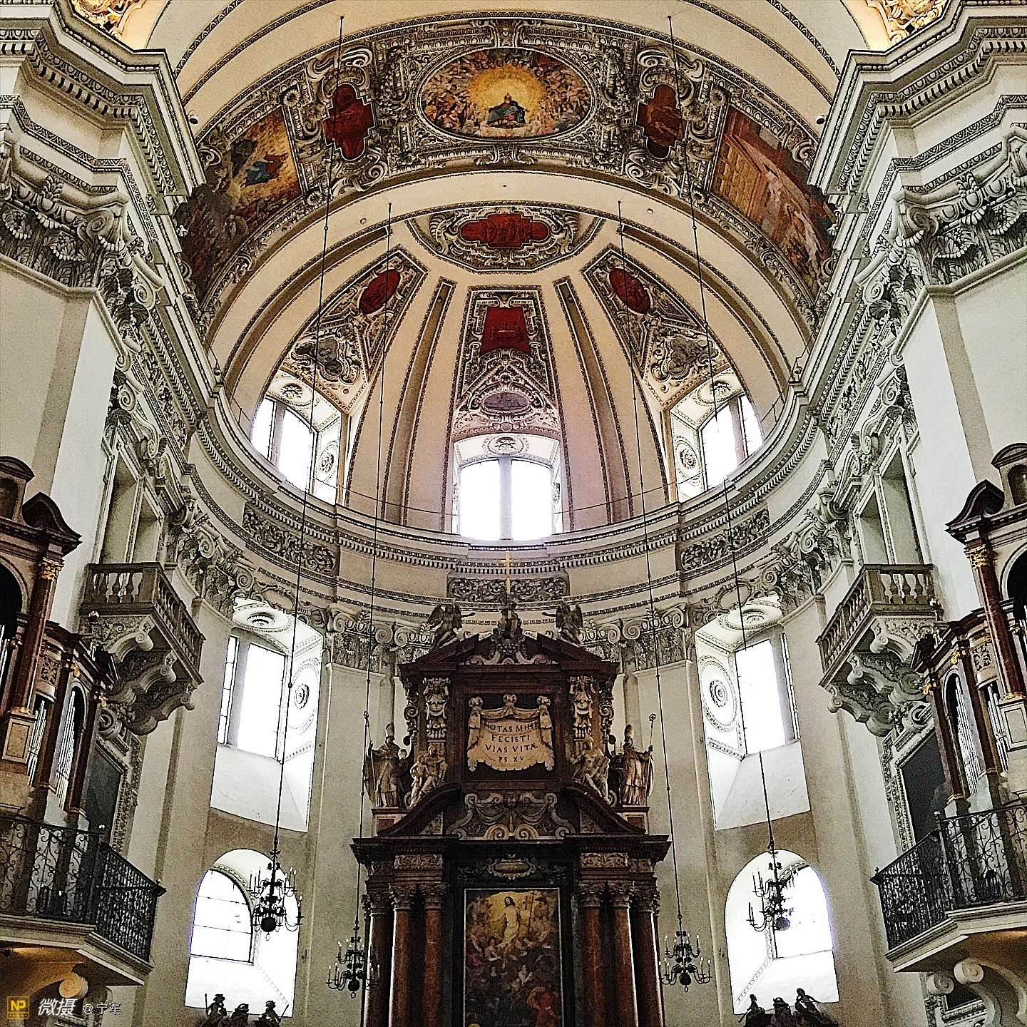 萨尔茨堡大教堂(Salzberg Dom)教堂尖顶密布是萨尔斯堡这座宗教气息浓重的山城的一大特色。而最具代表性的应属萨尔斯堡大教堂,是大主教教堂。意大利的素拉雷(Solari)按照梵蒂冈圣彼得大教堂的风格设计,但规模小了很多。花了十四年的光阴,到一六二八年才完工。这座文艺复兴式与巴洛克式混合的大教堂是中古以来政教不分时代“神权”与“王权”的象征。从这座教堂可以想见昔日萨尔斯堡城市虽然不大,但掌握着食盐的开采和贸易,用积累的大量财富大兴土木,气象不凡。教堂内提供中文简介。 电影中玛丽亚带孩子们出游时经过这里。