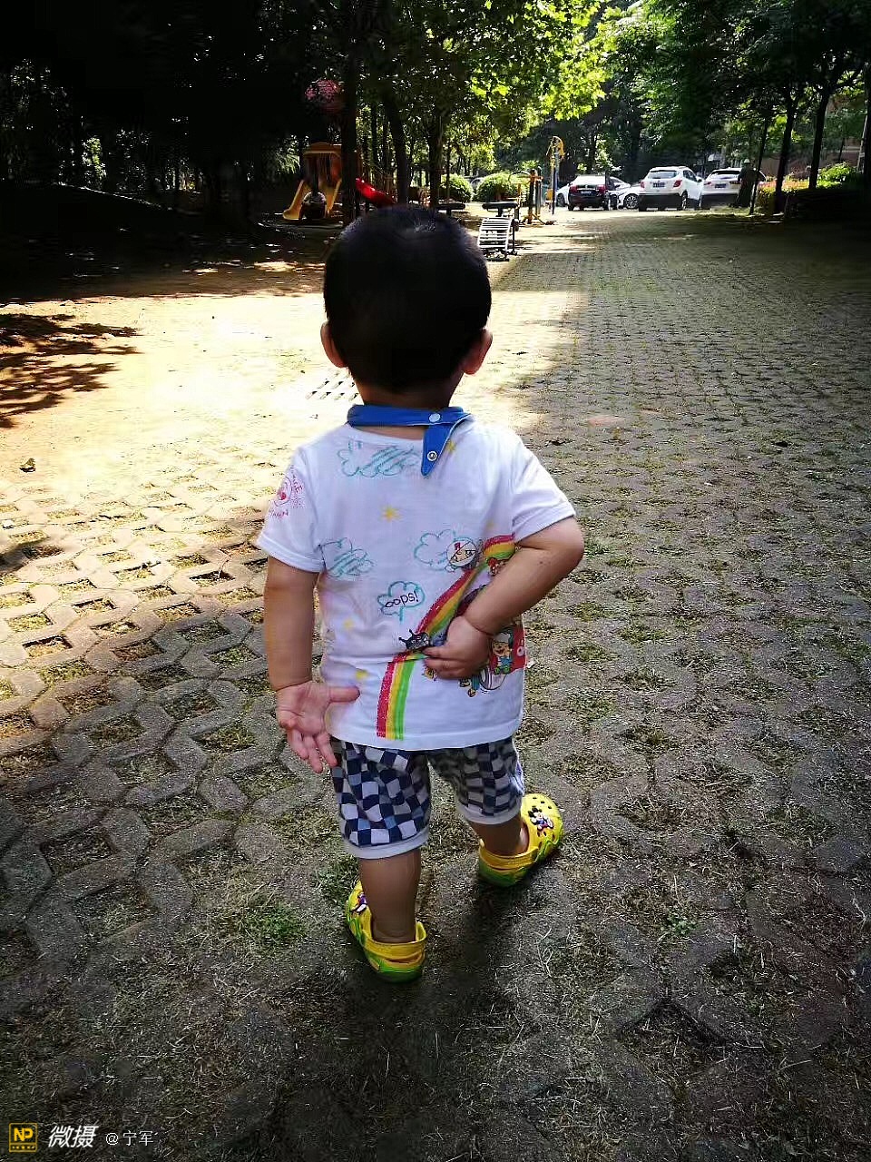这位是我老同学的孙子—老同学写的标题是—边遛弯,边思考。哈哈哈哈哈…