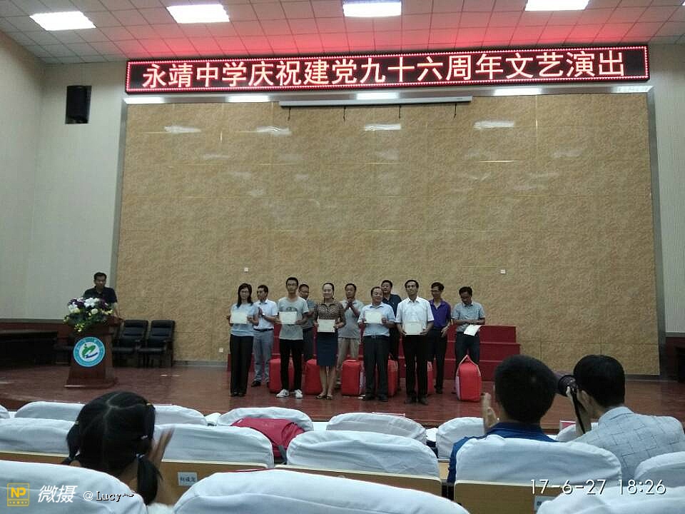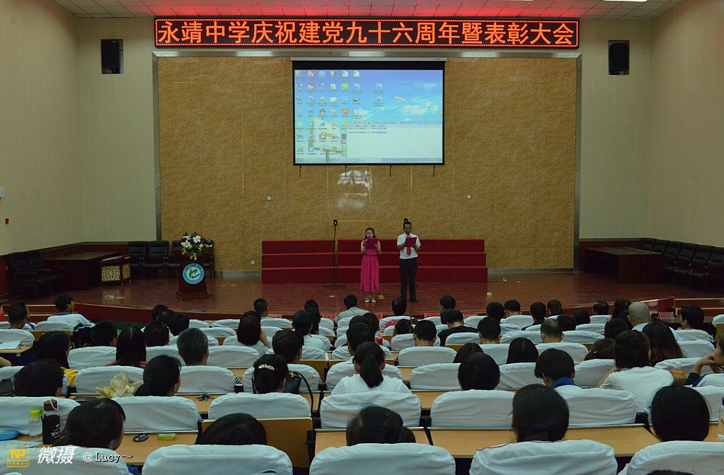 2017年6月27日下午,永靖中学全体党员、部分教师及部分学生在多功能大厅隆重召开“庆祝建党九十六周年暨表彰大会!