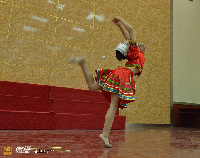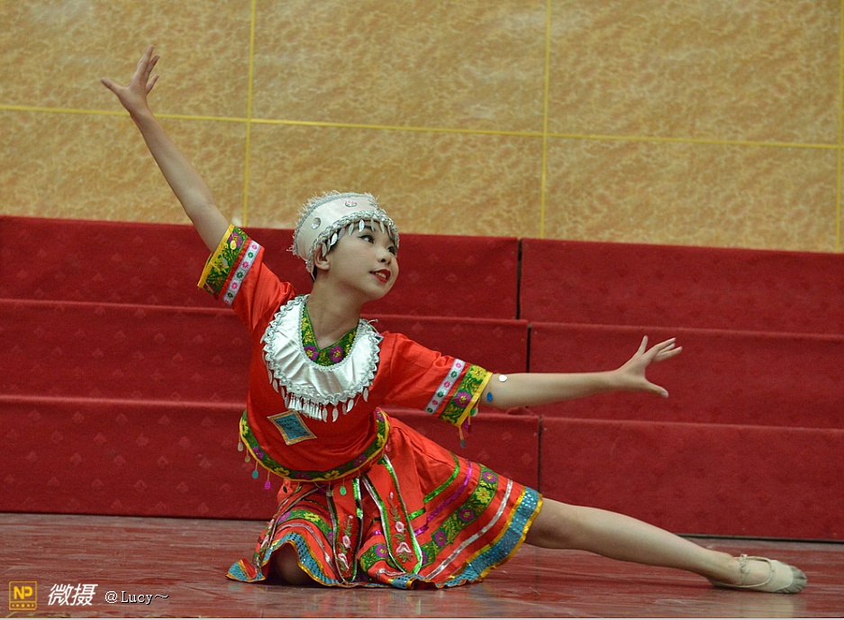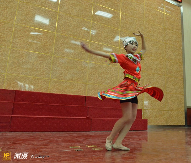高一(17)班才女罗琪同学表演苗族舞蹈《银铃》!从中体现了重点班学生的精神风貌和多才多艺的素养!