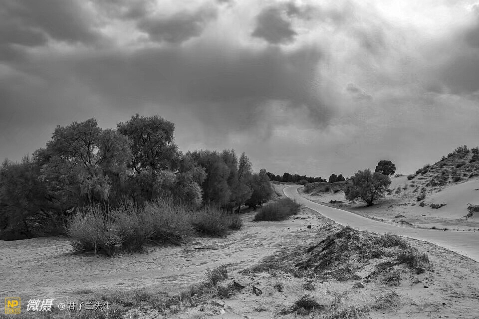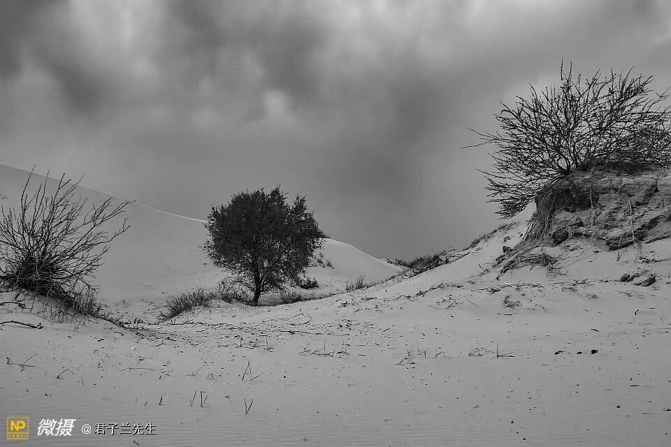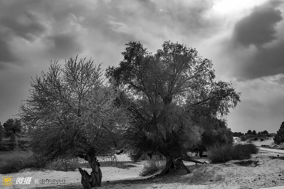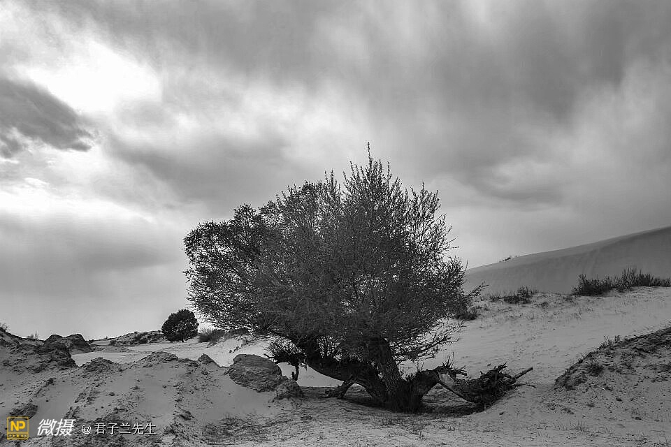 偶遇的杨柳在浩瀚的沙海中,显得那样的顽强与孤独。树干上的块块疤痕,记载着它经历过的风霜雨雪,生命的力量赋予它无限的生机。