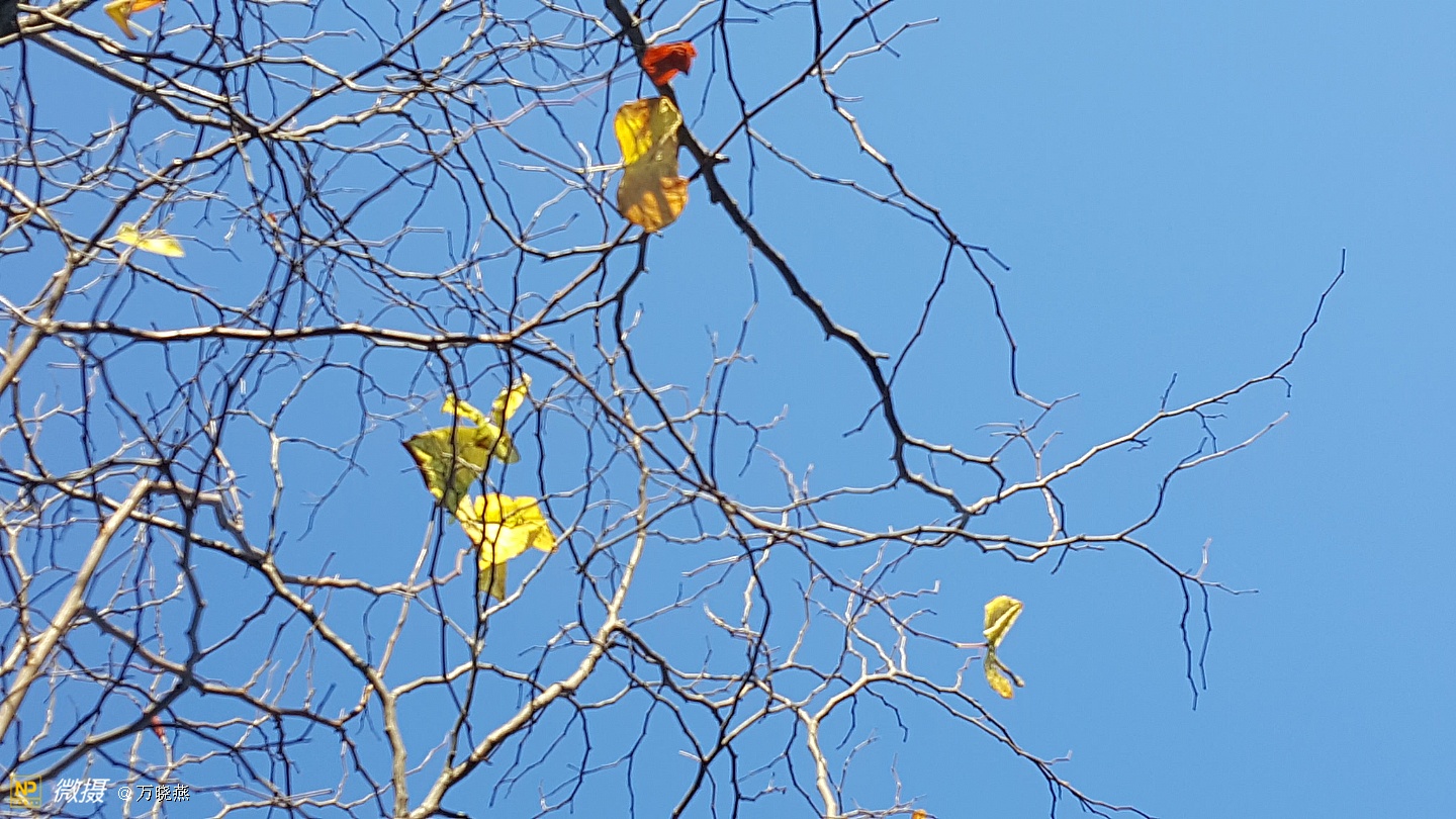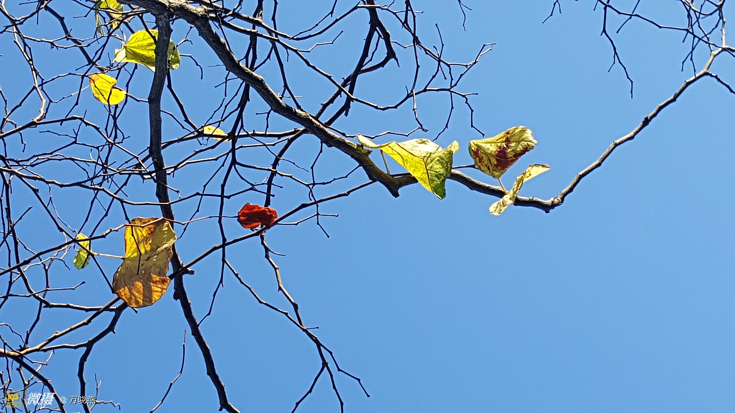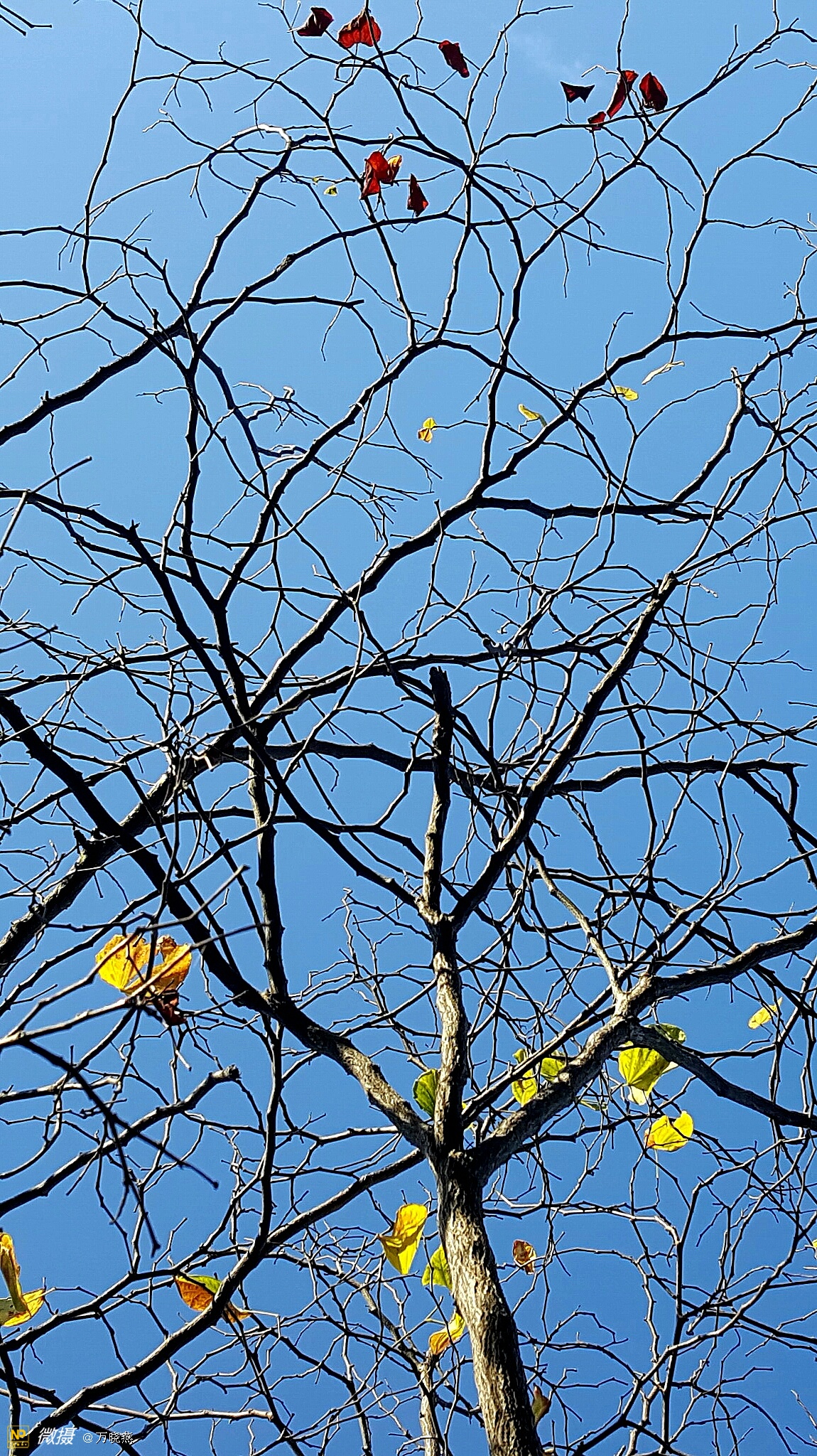 宣立在深秋的季节里,心情非常矛盾,一面是风景,一面是感伤。 红的,绿的,大的,老的,小的,嫩的曾几时还看到它们舒怀吟唱,叽叽咋咋聊了个没完....倒计不过数日,这颗树已奄奄一息, 好般凄凉,人生的悲情再次重演,终成绝唱。......惜子当下,来年又是一年!