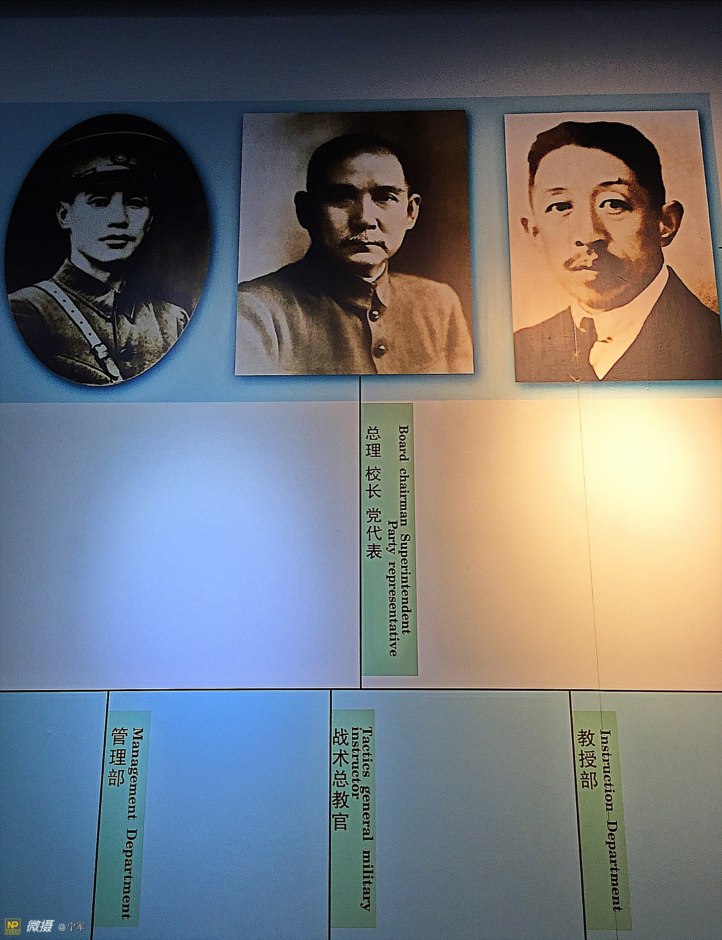 军校成立后,以蒋介石为校长,廖仲恺为国民党党代表。随后,任李济深、邓演达为教练部正、副主任,王柏龄、叶剑英为教授部正、副主任;戴季陶(后为周恩来)、周恩来为政治部正、副主任,何应钦为总教官。此外还有熊雄、恽代英、萧楚女、聂荣臻、张秋人等共产党人担任教官及各方面负责工作。