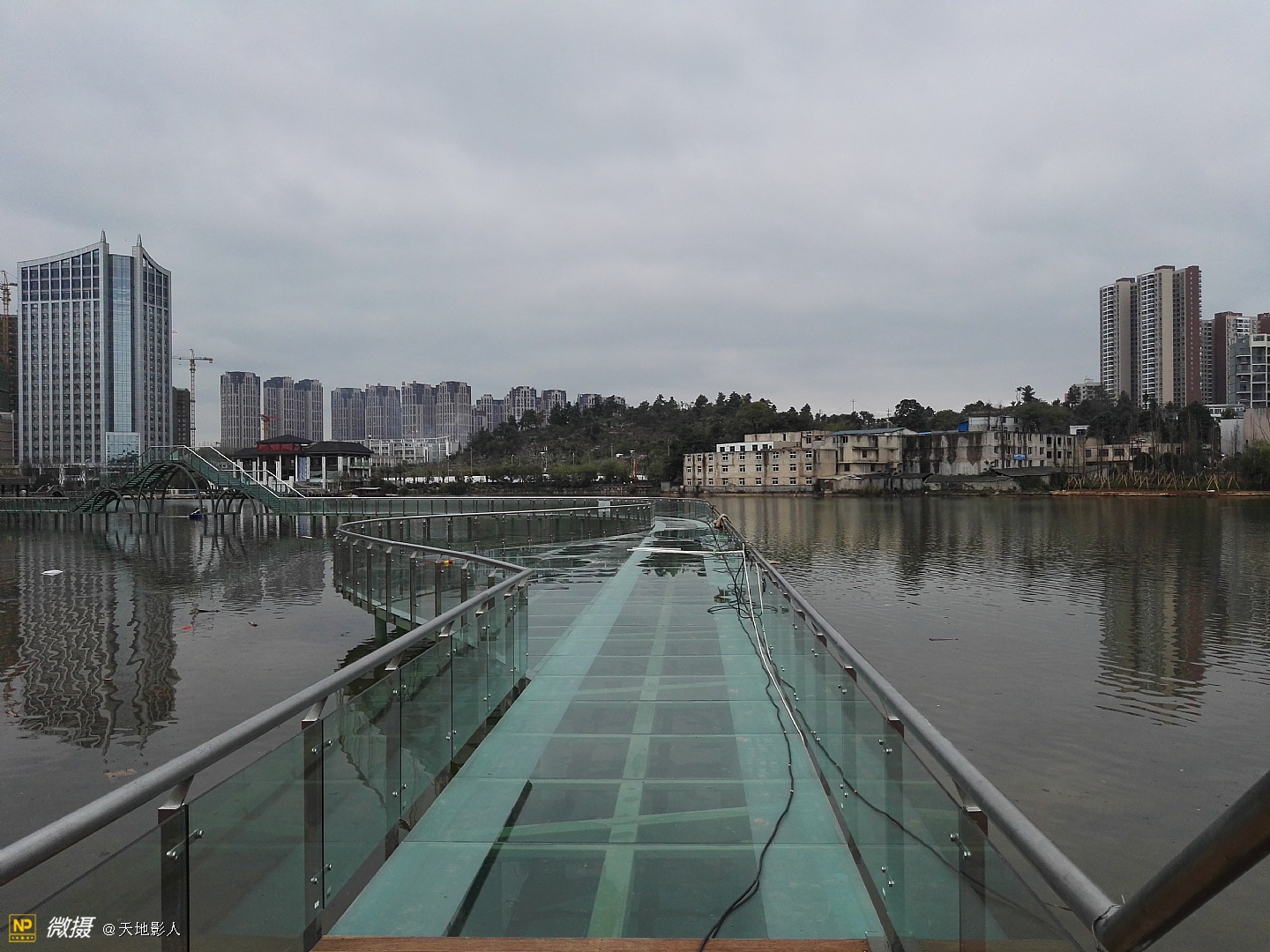 正在建设中的白云南湖公园,在南湖上架起了约300米的玻璃栈桥,供游人体验水上漂的感觉。